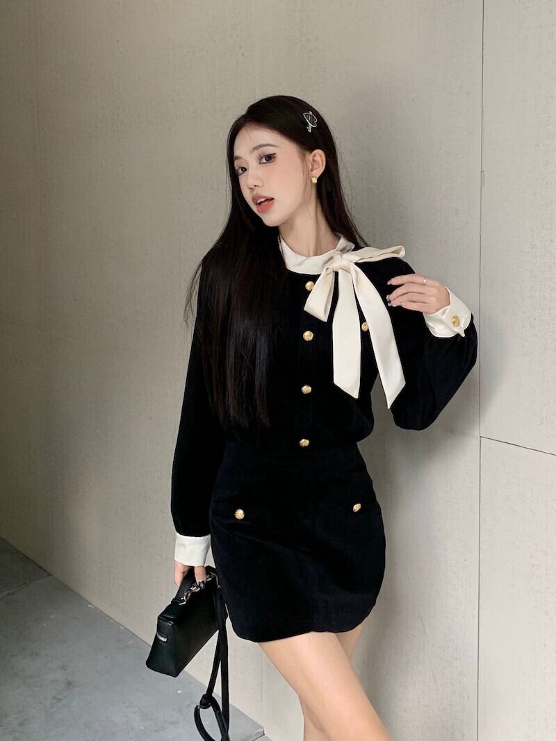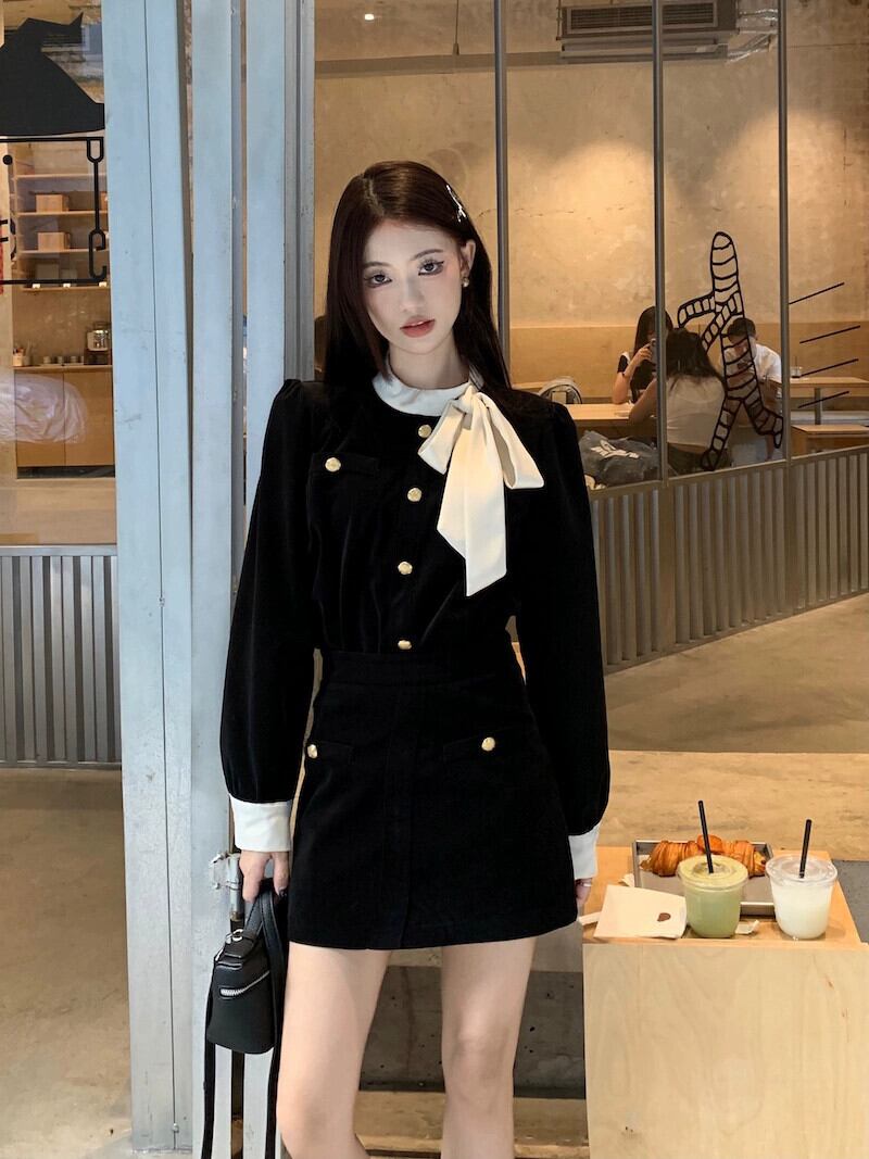 Xiaoxiangfeng ベルベットシャツ女性の 2024 年秋の新作フレンチシックで美しい蝶ネクタイ長袖トップ ロング リボン オータム 秋物 8571636130535891