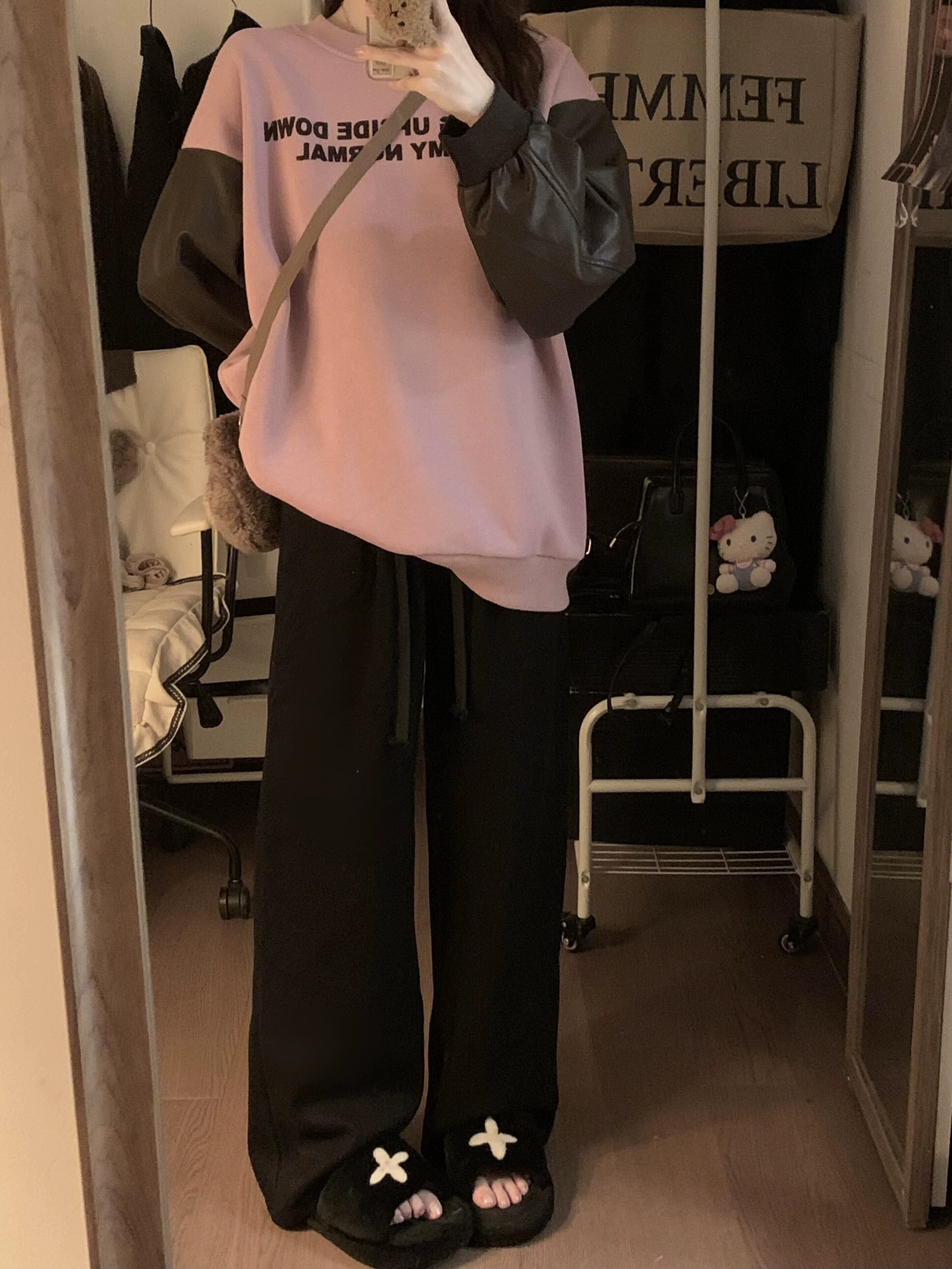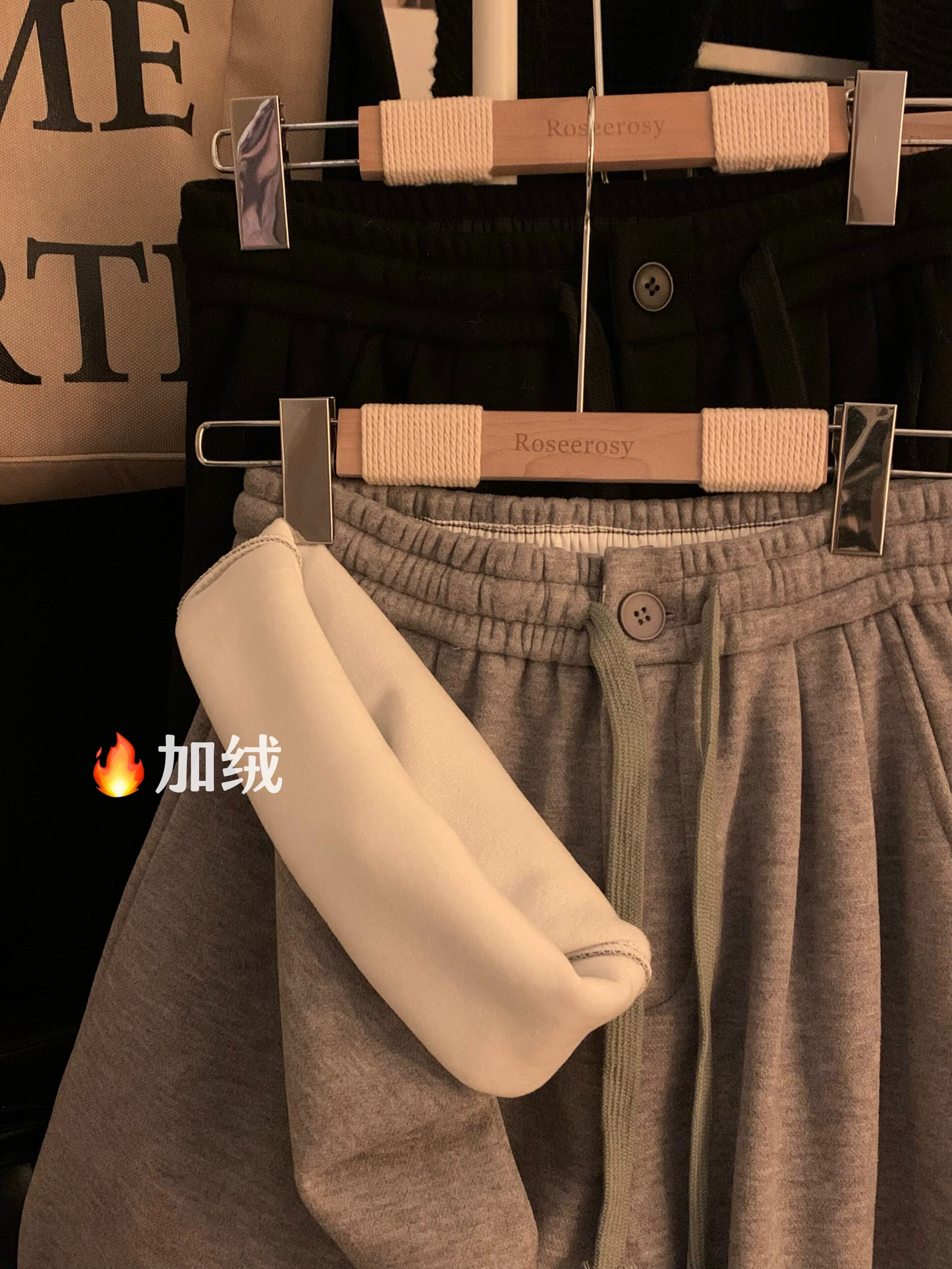 グレーワイドレッグパンツ女性の冬のベルベット肥厚フロアレングスパンツ 2024 新しいハイウエスト多用途カジュアルストレートパンツ ウィンター 冬物 8571640537045214