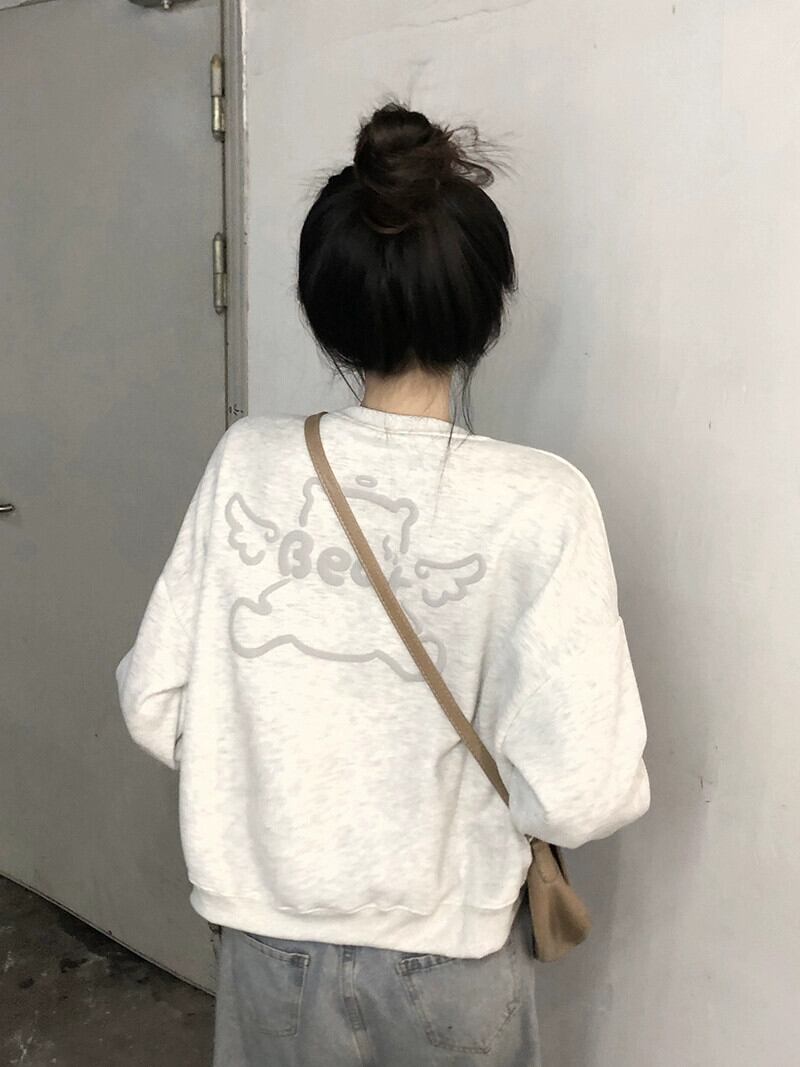 フォームベアスウェットシャツの女性の秋と冬プラスベルベットと厚みのある2024新しい甘い年齢を減らす学生ショートトップ 大人ガーリー スウィート キュート カジュアル オータム 秋物 ウィンター 冬物 8571641604635713