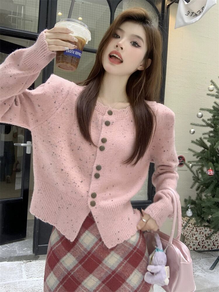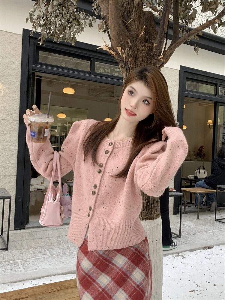 ピンクのセータージャケットの女性の秋冬 2024 新しいフレンチスタイルのハイエンドの超素敵なショートニットカーディガン オータム 秋物 ウィンター 冬物 8571675626112718