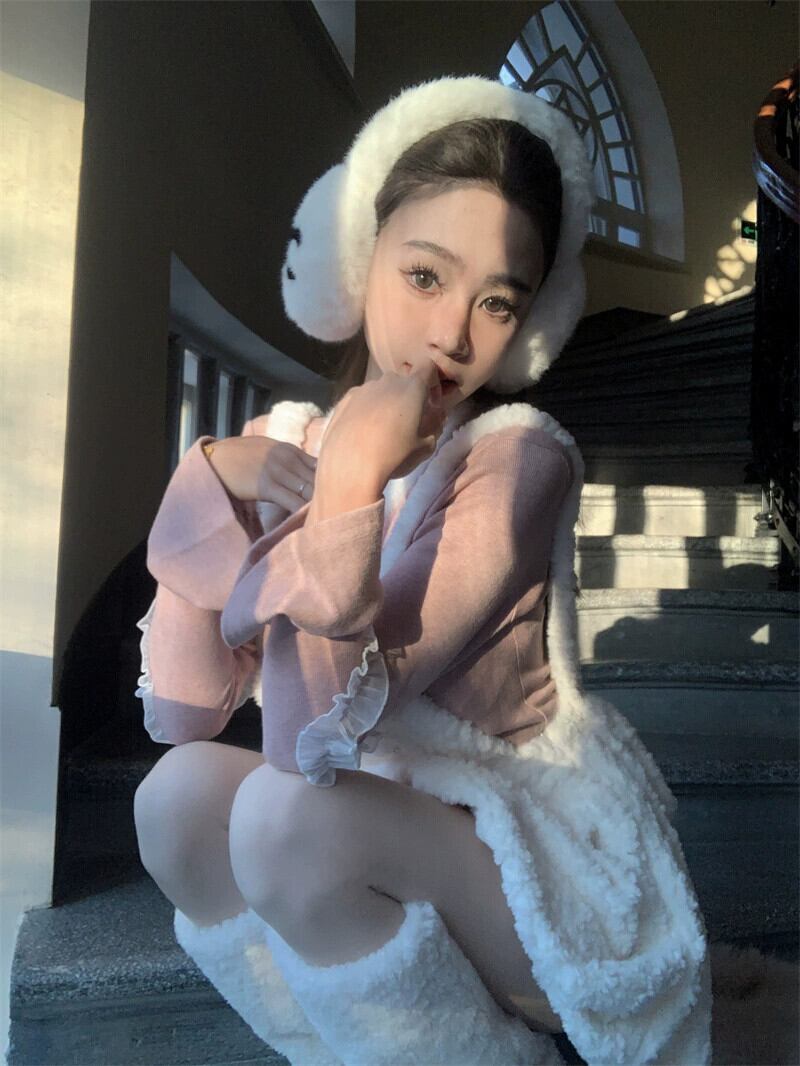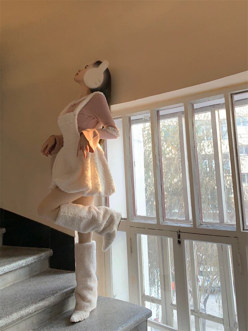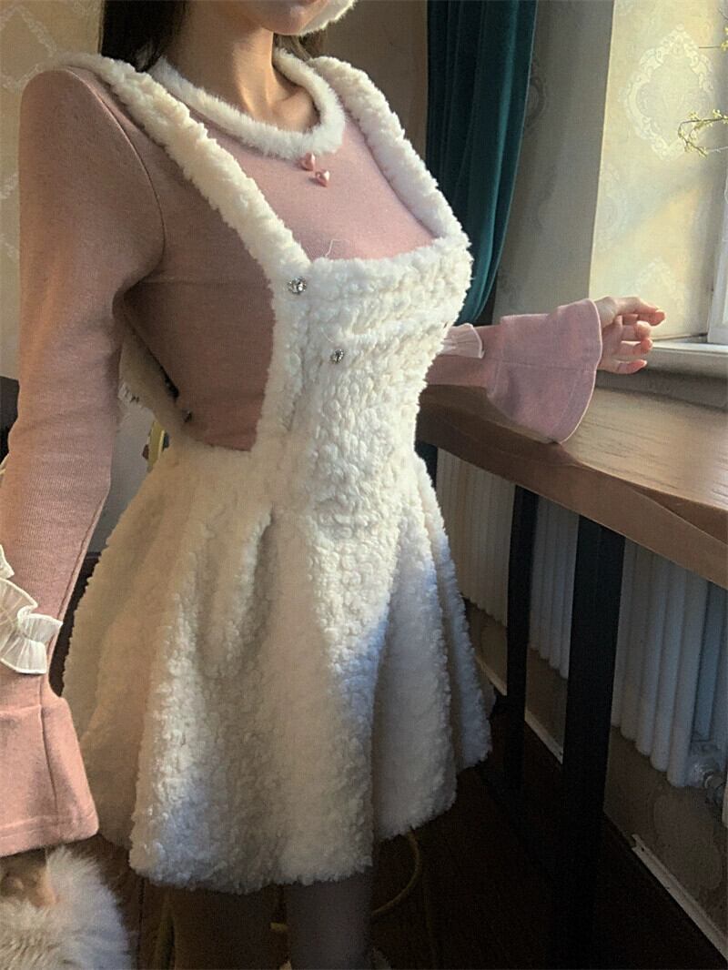 ホワイトラムウールサスペンダードレスの女性の秋と冬 2024 新しいスタイル小柄な甘いウエスト芽ショートスカート 大人ガーリー スウィート キュート カジュアル オータム 秋物 ウィンター 冬物 8571651298087145