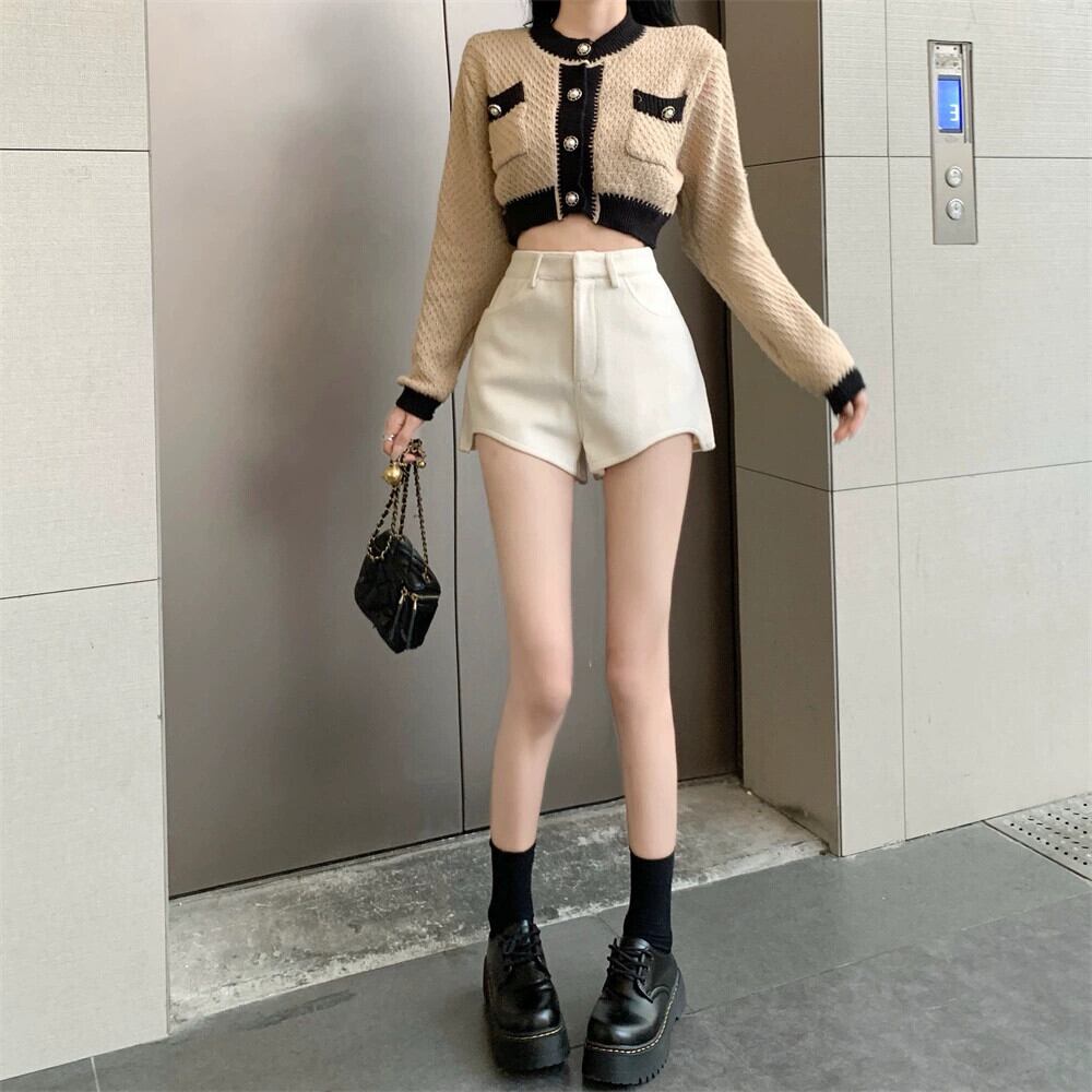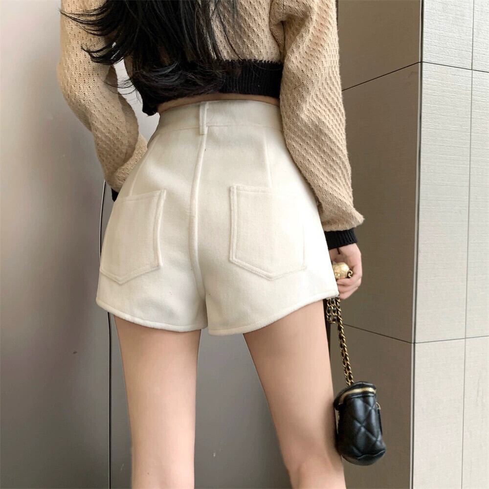 ホワイトショーツ女性の秋冬アウターブーツパンツ2024インターネットセレブホットガール不規則なウエストAラインパンツ オータム 秋物 ウィンター 冬物 ブルマー 8571628565410528