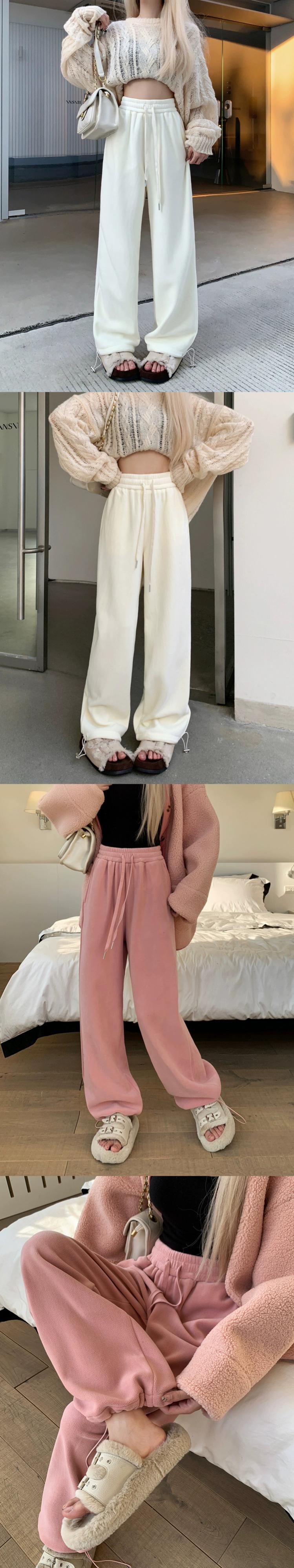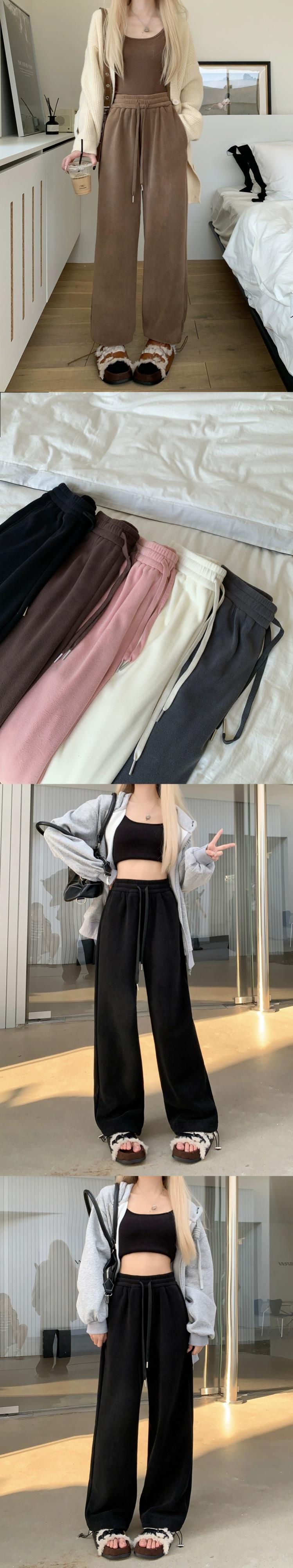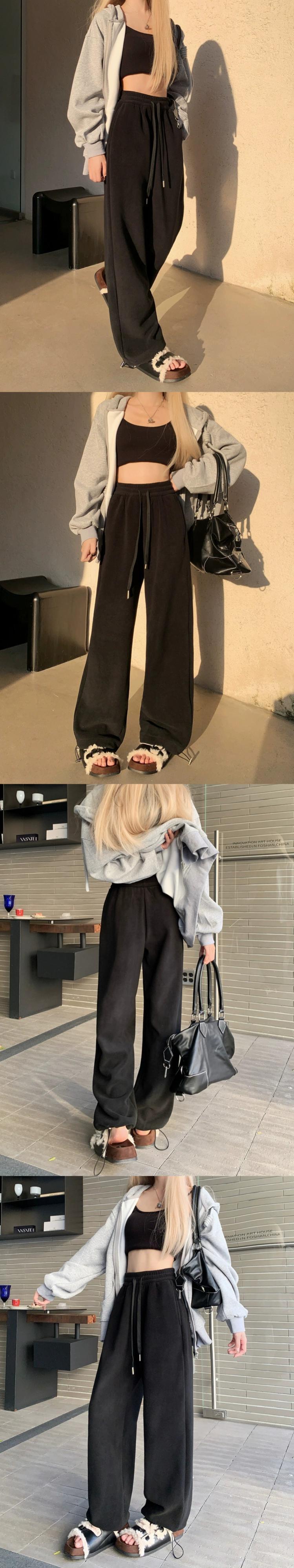 カーキワイドレッグパンツの女性の冬のベルベット肥厚スウェットパンツ 2024 新しいハイウエストルーズカジュアルフロアレングスパンツ ウィンター 冬物 8571688940288568