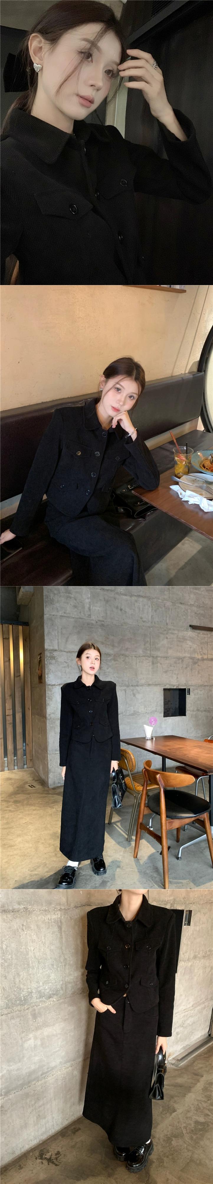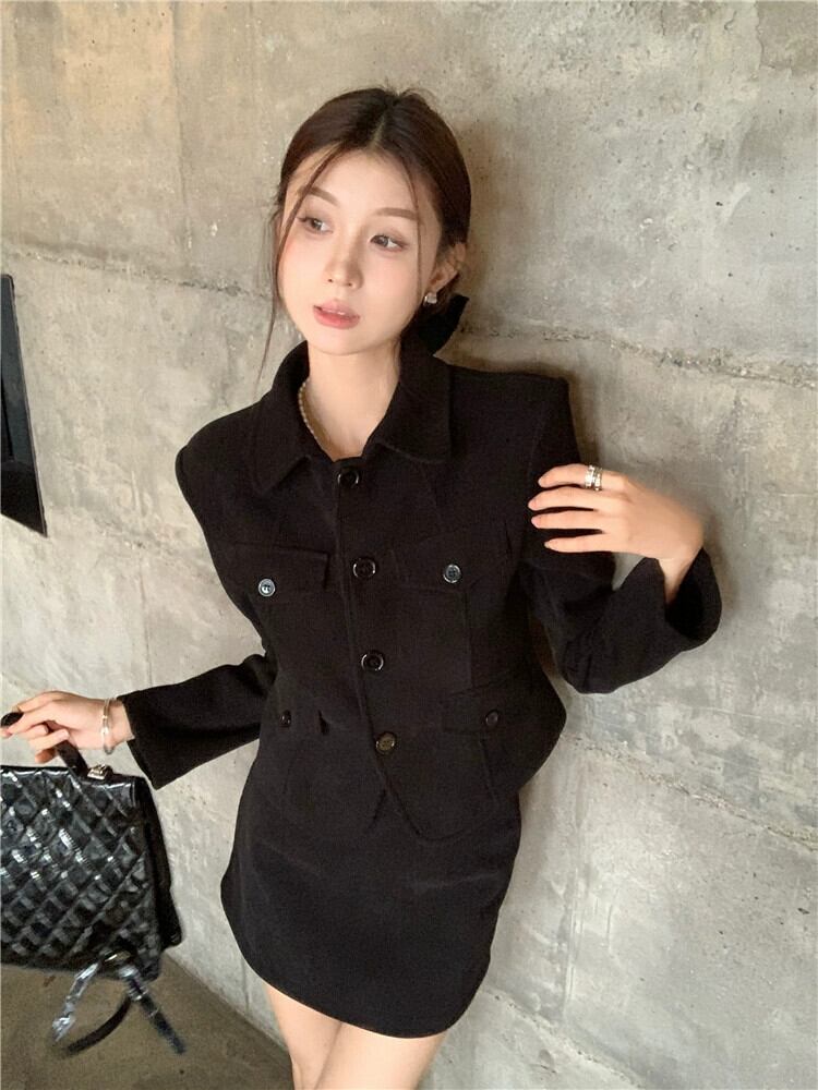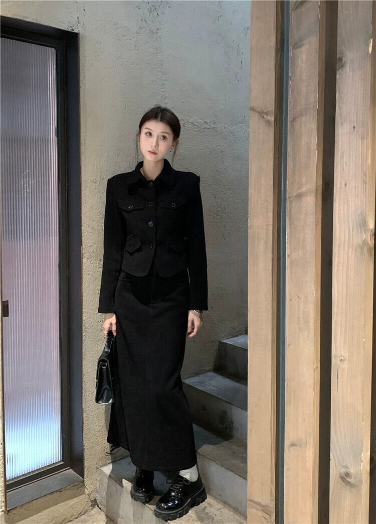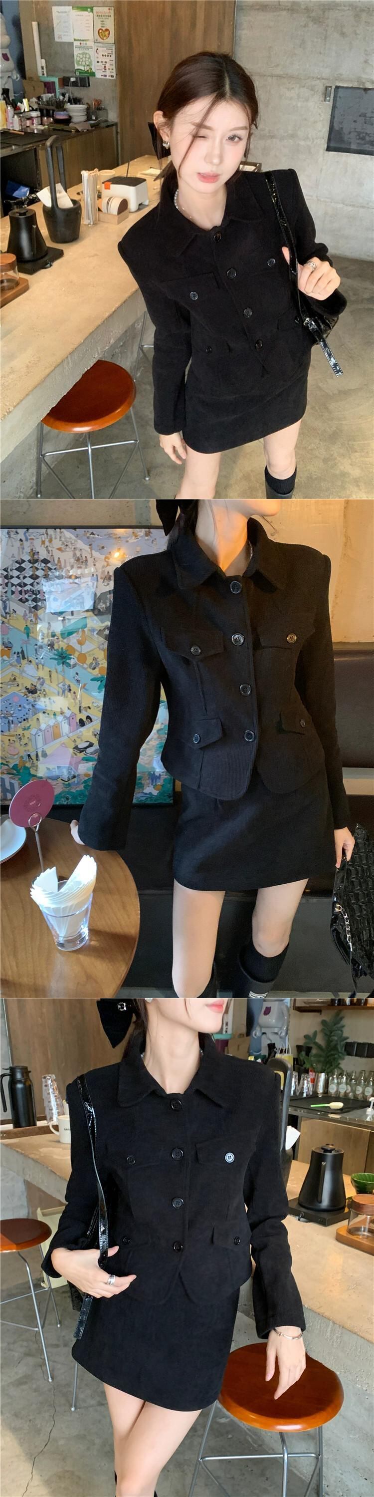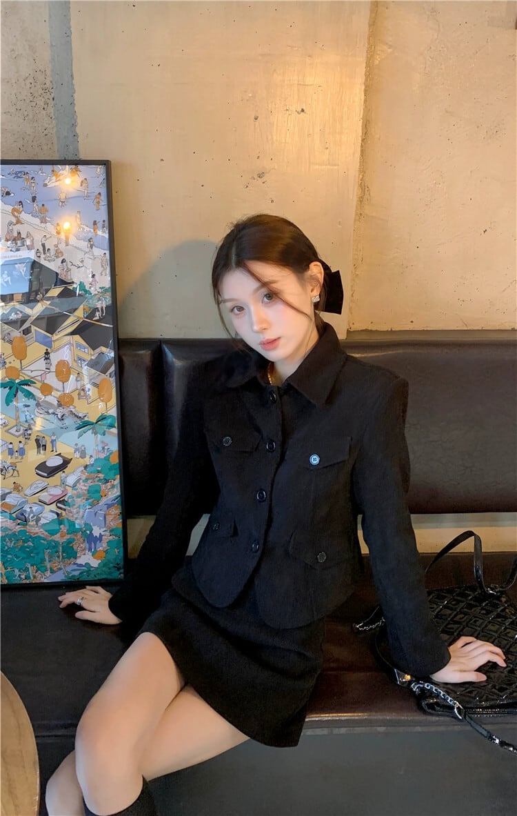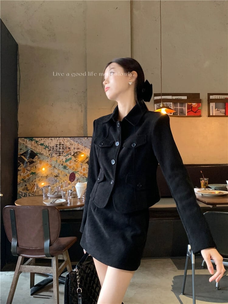 ブラックラペルスーツジャケット女性の秋と冬ベルベット肥厚2024スタイルショートスーツ小人今年人気 オータム 秋物 ウィンター 冬物 8571651846488476