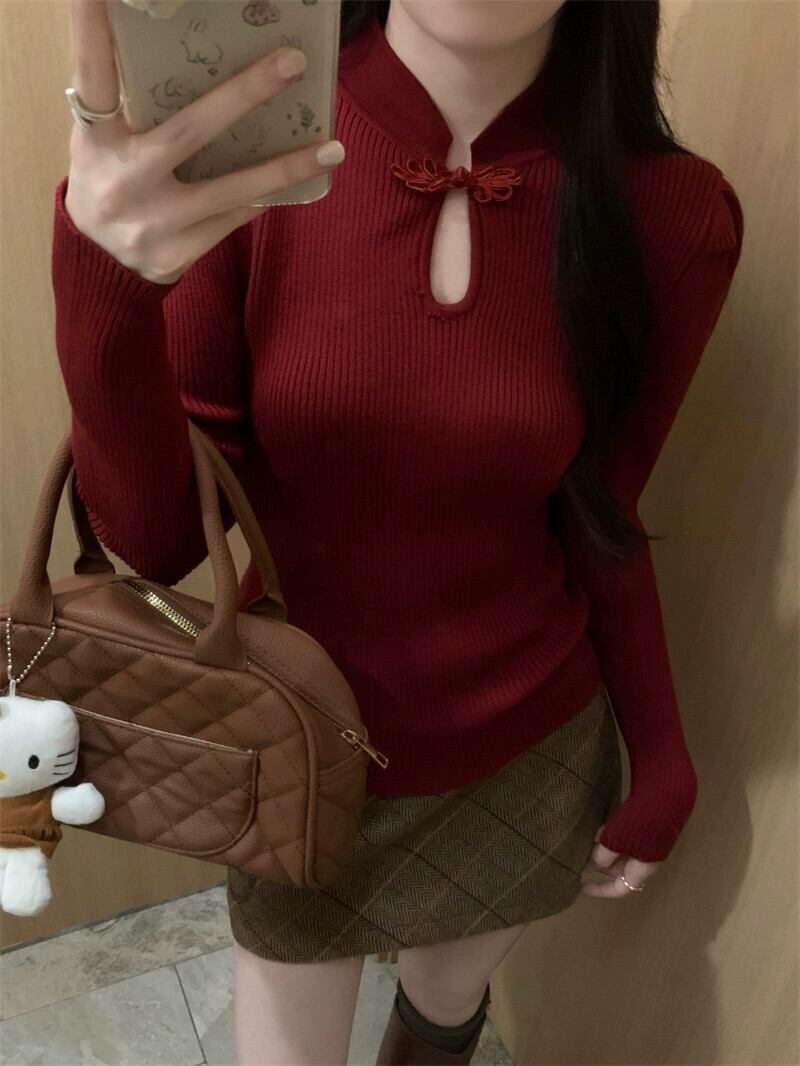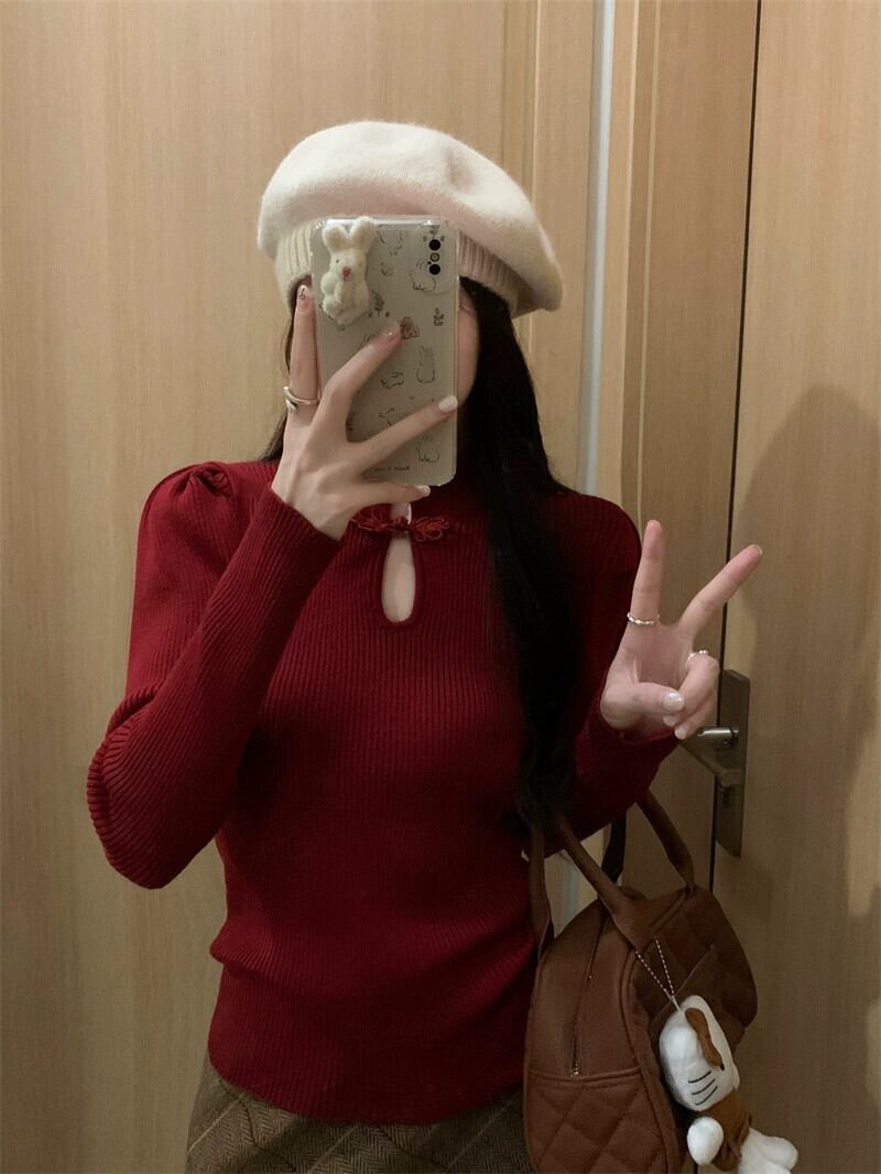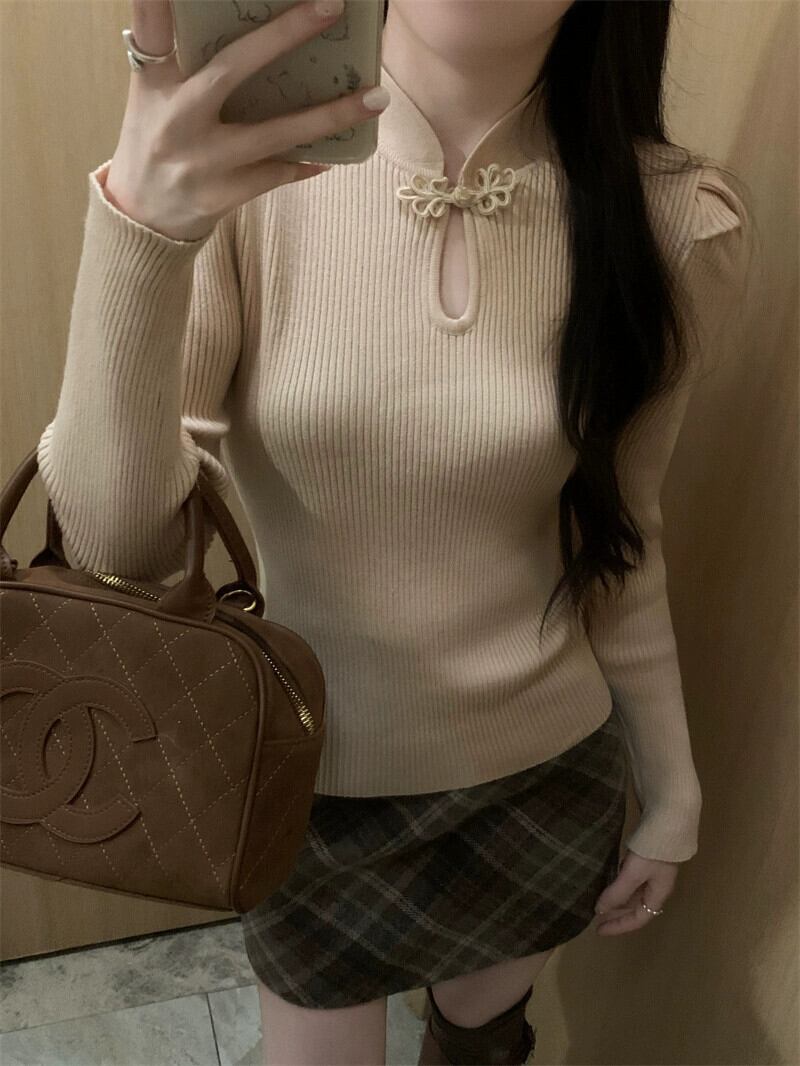 中国風の国民風ニットセーター女性秋と冬のインナー重ね着セーター 2024 新しいハイエンドと超素敵なトップ オータム 秋物 ウィンター 冬物 8571696756019978