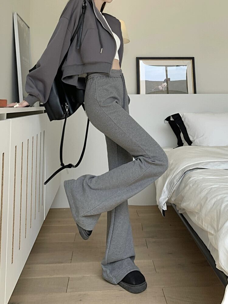 黒マイクロフレアパンツ女性冬ベルベット肥厚スポーツパンツ 2024 新しいハイウエストカジュアルフロアレングスパンツ レッド ブラック ウィンター 冬物 8571659984499818