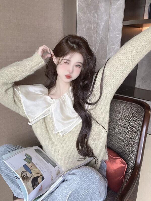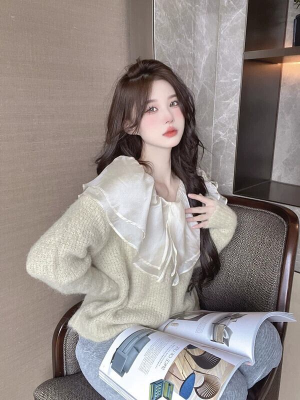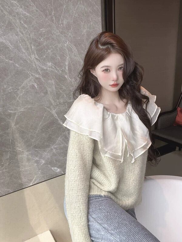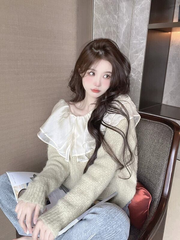 フリルグリーンセーターレディース2024秋冬新作スタイル優しいスタイル高級感超格好良いインナーセーター オータム 秋物 ウィンター 冬物 8571652114563432