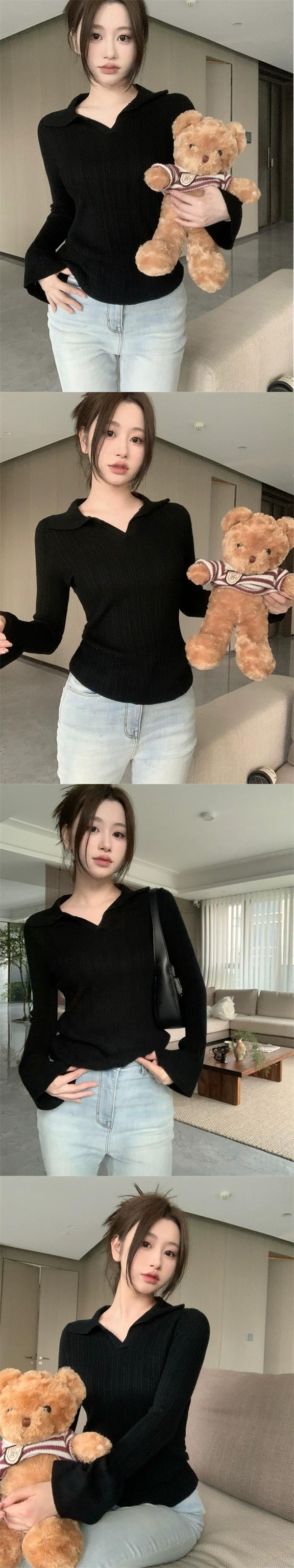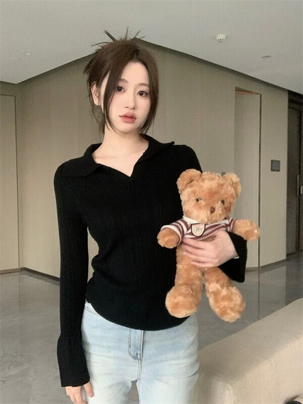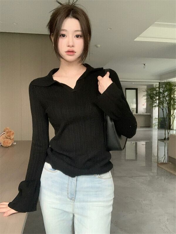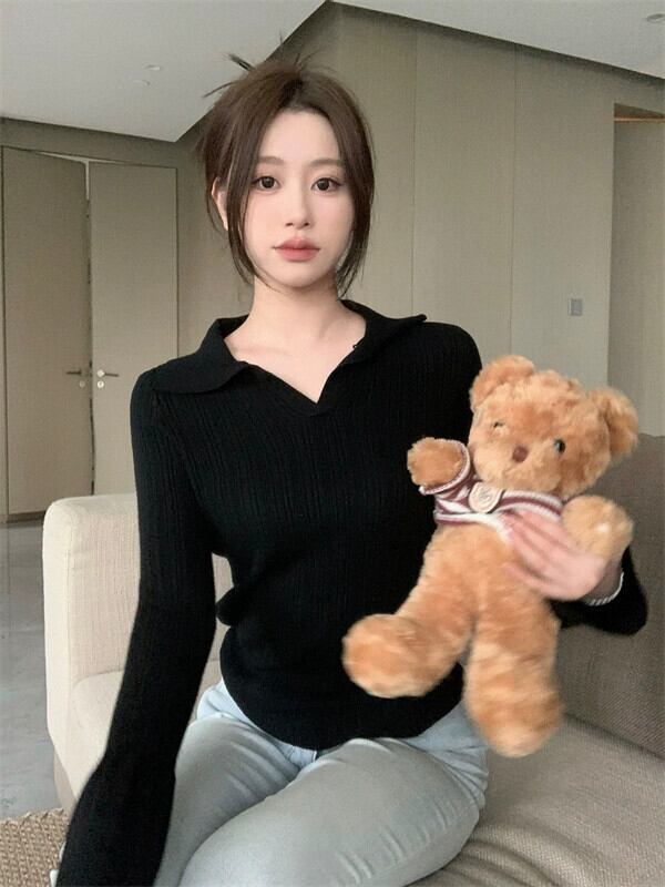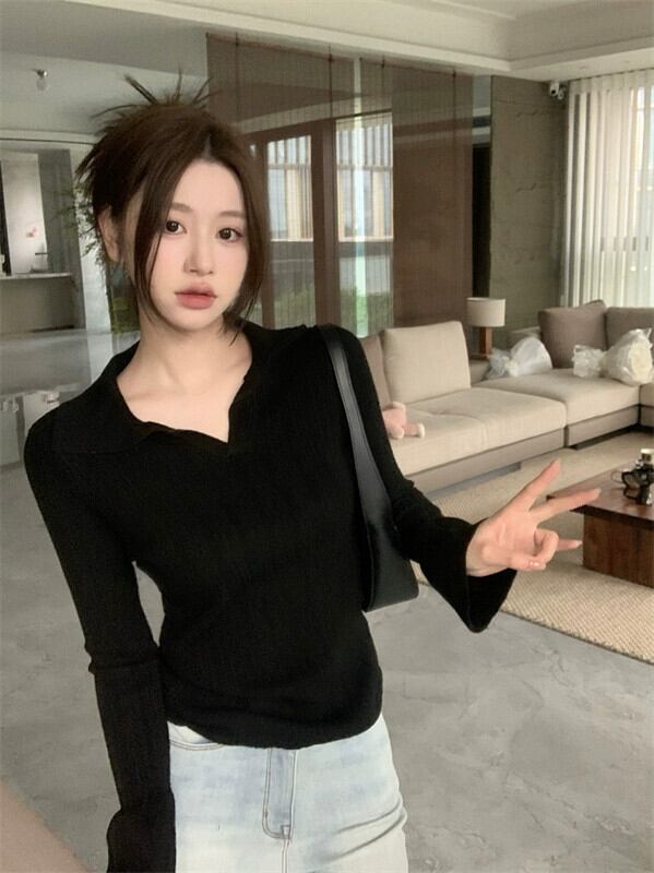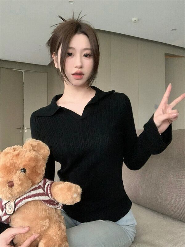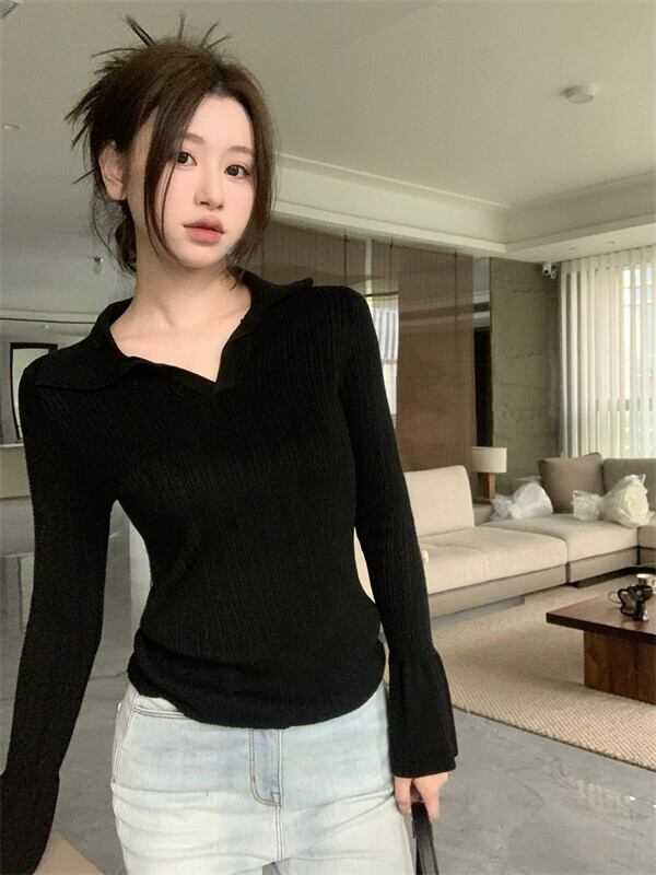黒ニット底シャツ女性の秋と冬のインナーセーター 2024 新しいスリムフィット長袖トップ小人 ロング ブラック オータム 秋物 ウィンター 冬物 8571642492834446
