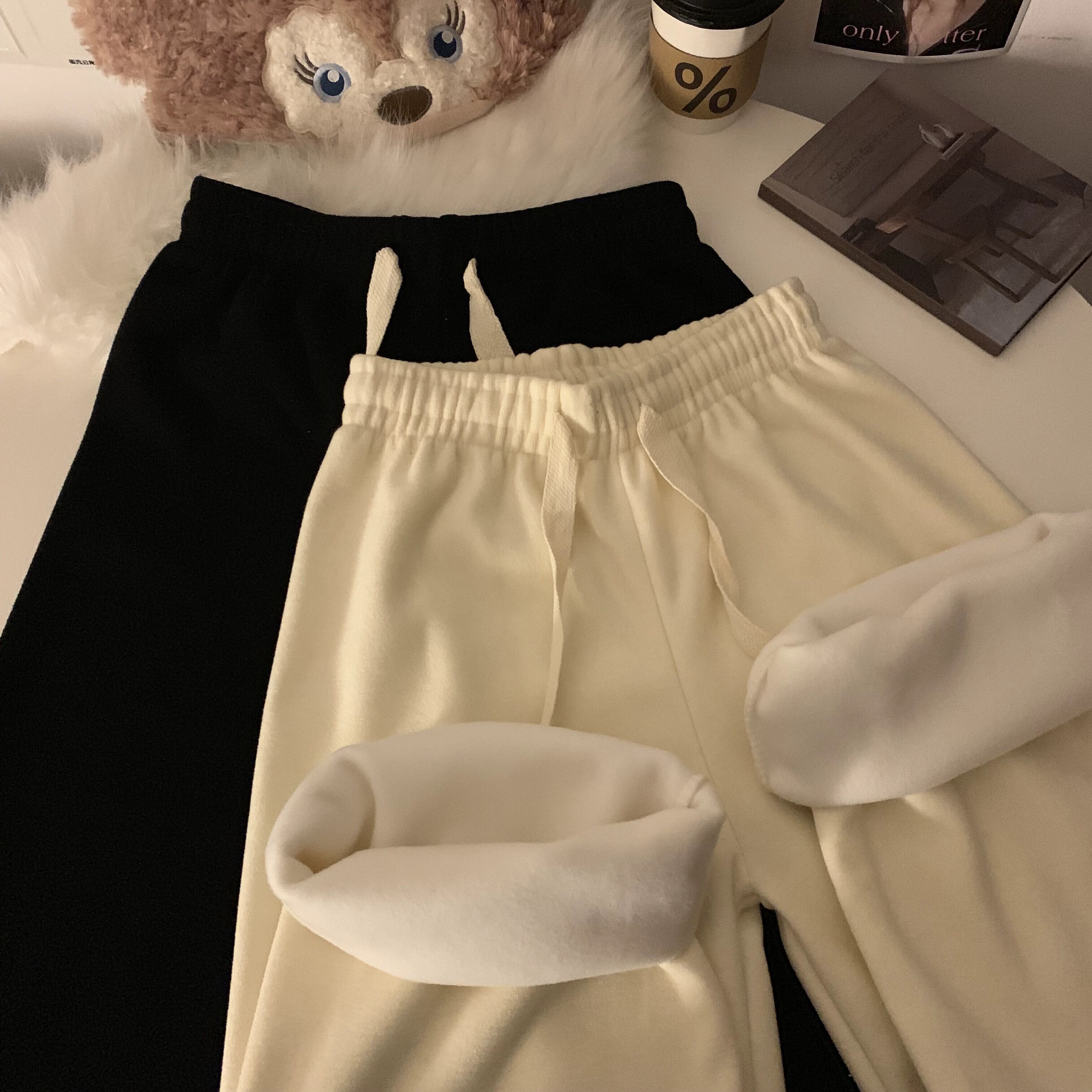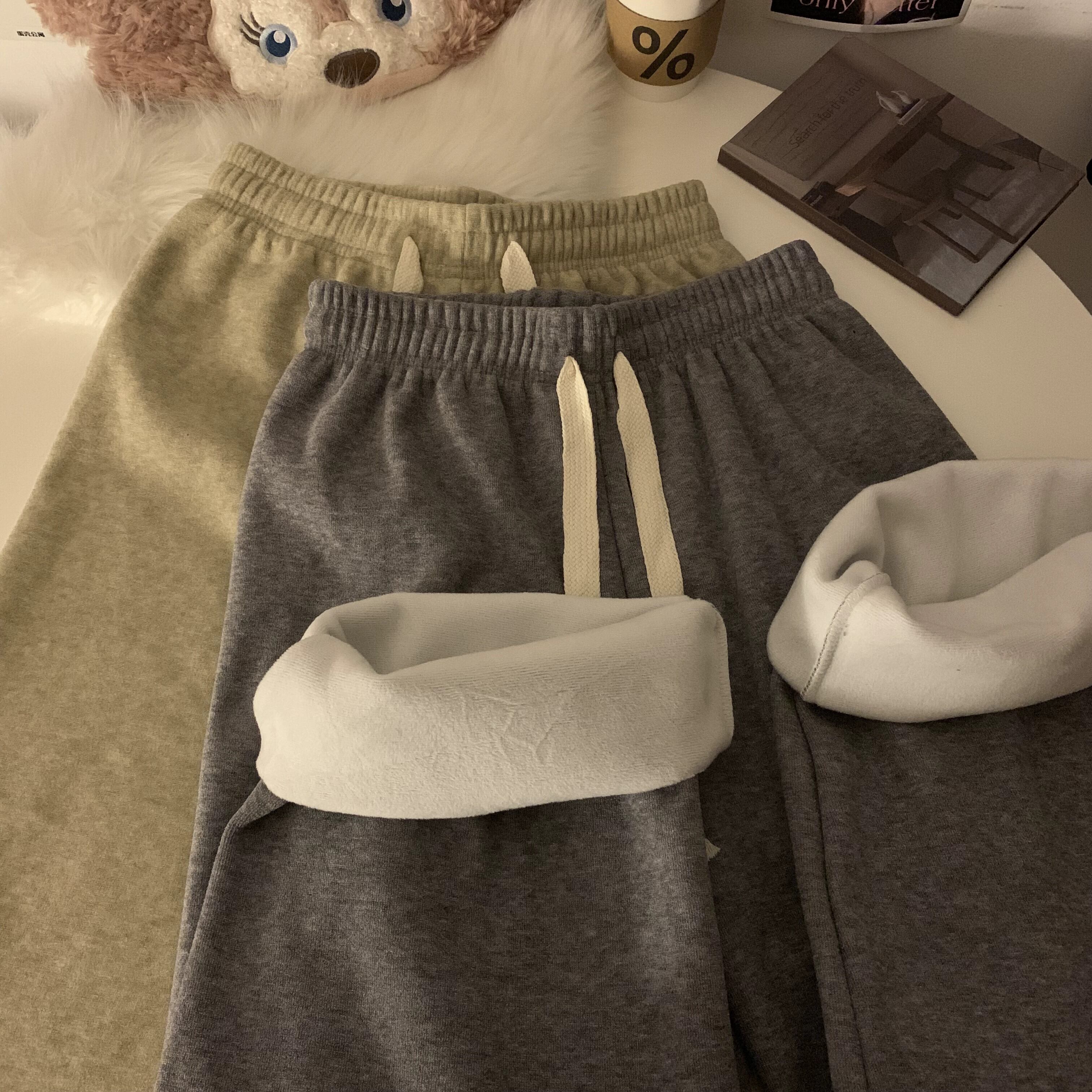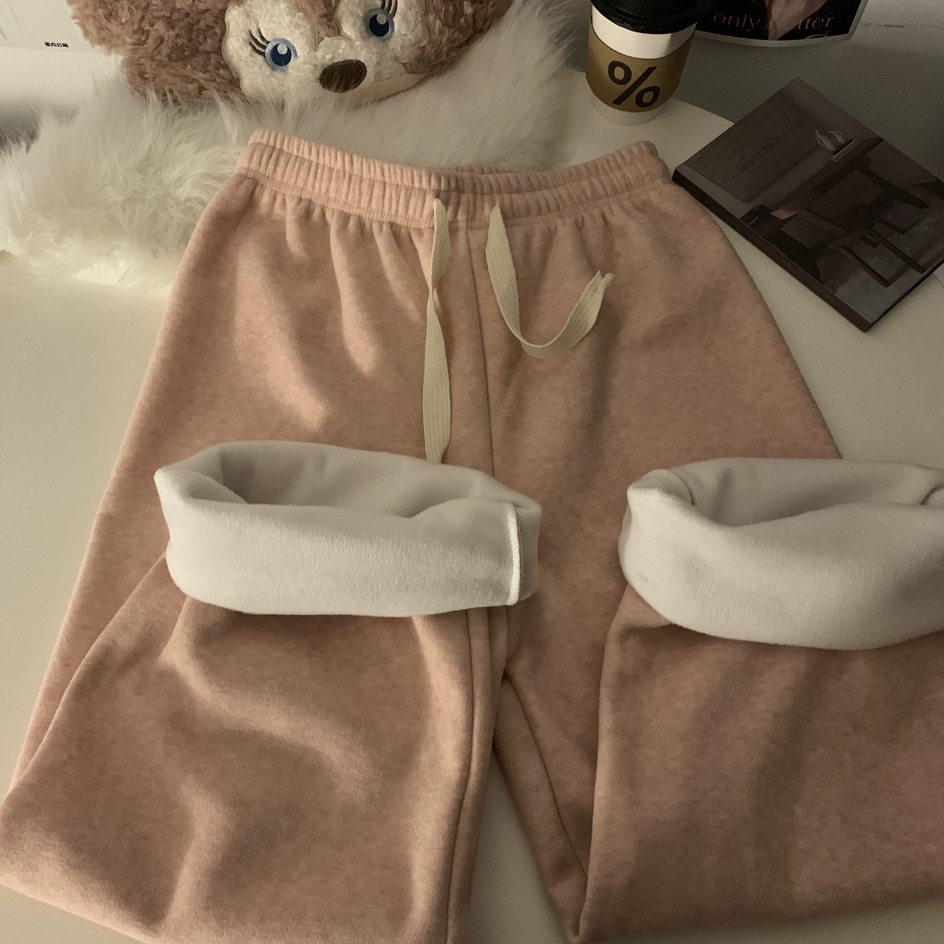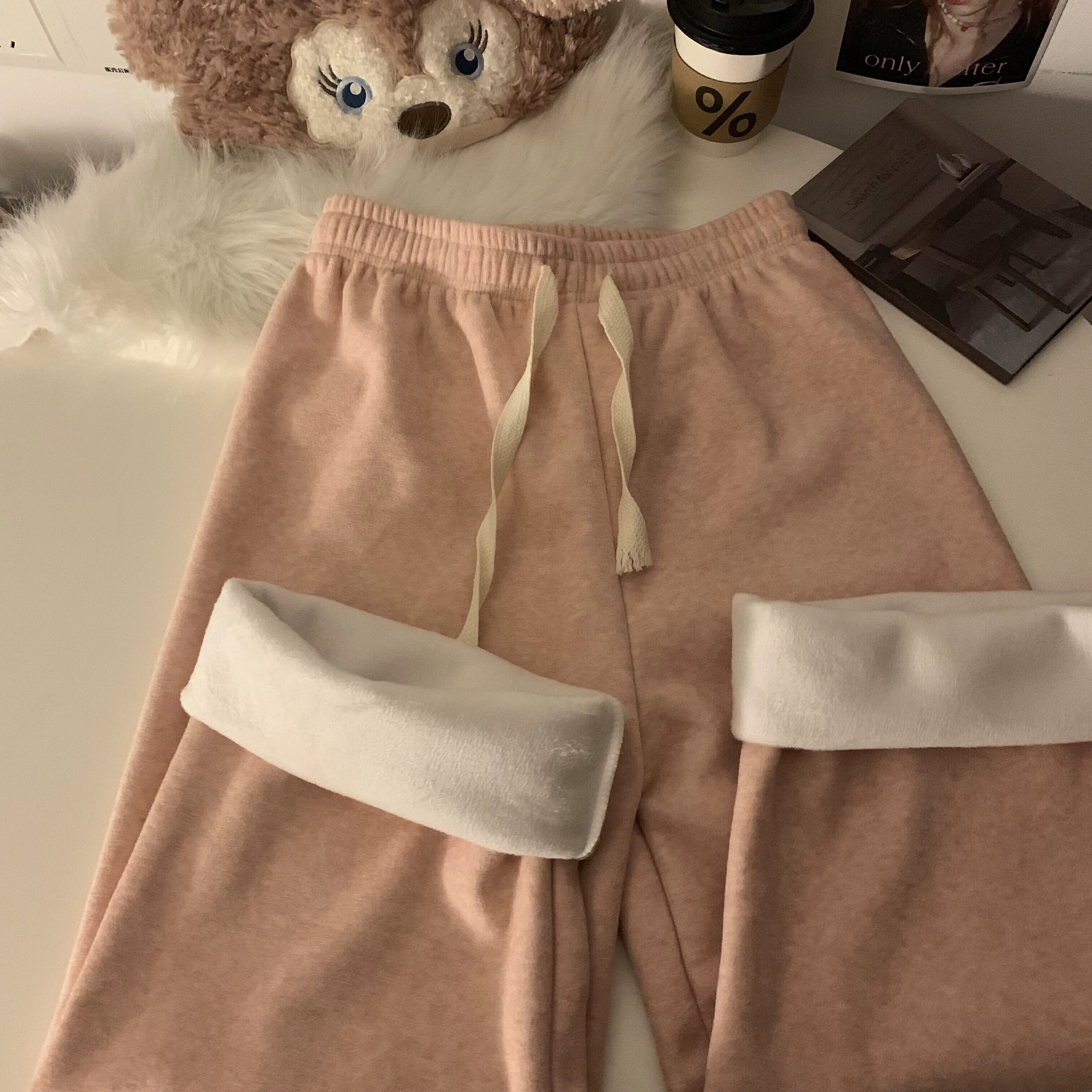 ピンクのワイドレッグパンツの女性の秋と冬のベルベット肥厚タオルパンツ 2024 新しいハイウエストストレートカジュアルフロアレングスパンツ オータム 秋物 ウィンター 冬物 857169440333389