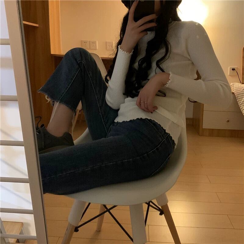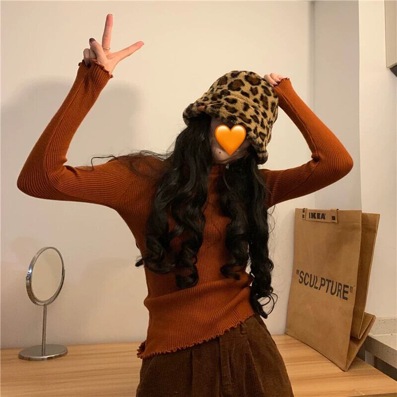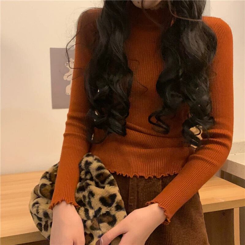 ハーフタートルネックニットボトシャツ女性の秋と冬キャラメルカラーセーター 2024 新しいスタイル超素敵な菌エッジインナートップ オータム 秋物 ウィンター 冬物 8571643277798856