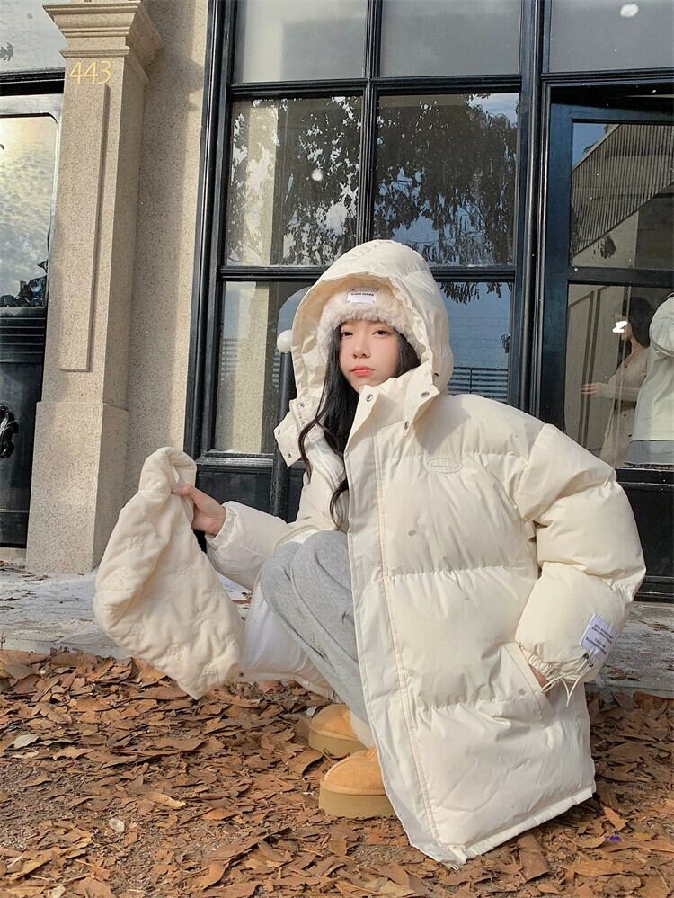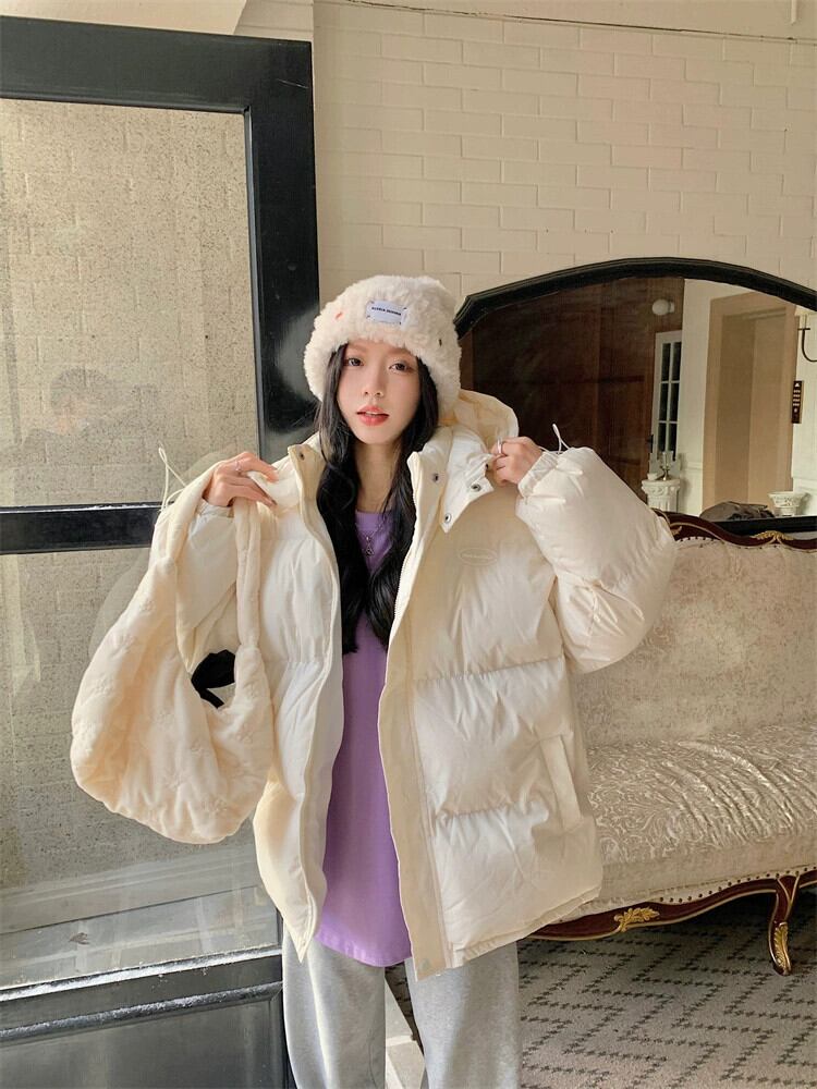 乳白フード付きコットンジャケット女性の冬の肥厚パンジャケット 2024 スタイル学生ルーズコットンジャケット ホワイト ウィンター 冬物 8571665284514662