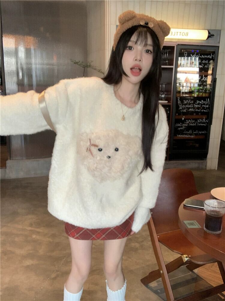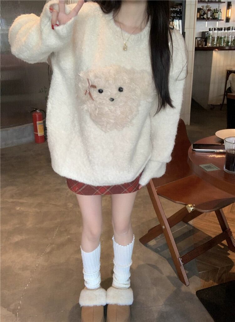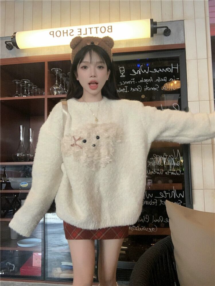 かわいい子犬のセーターの女性の秋と冬のクリスマス着用 2024 新しい甘い怠惰なスタイルのソフトワックス長袖セーター ロング 大人ガーリー スウィート キュート カジュアル オータム 秋物 ウィンター 冬物 8571662567347736