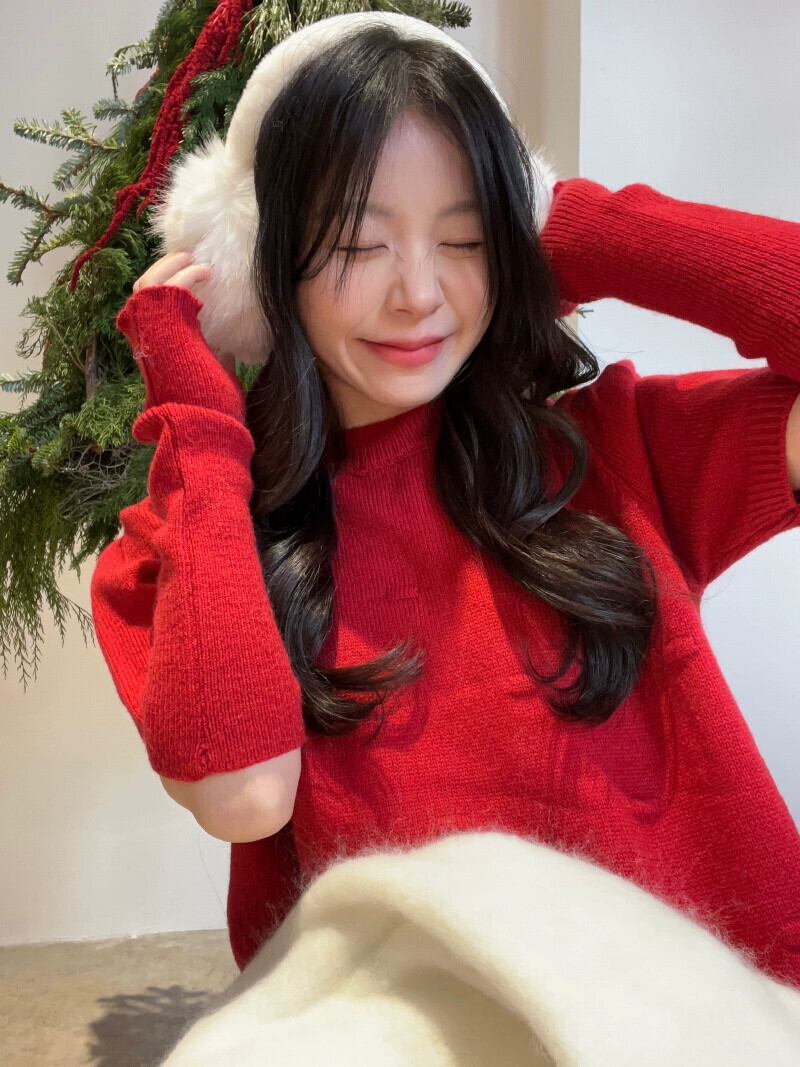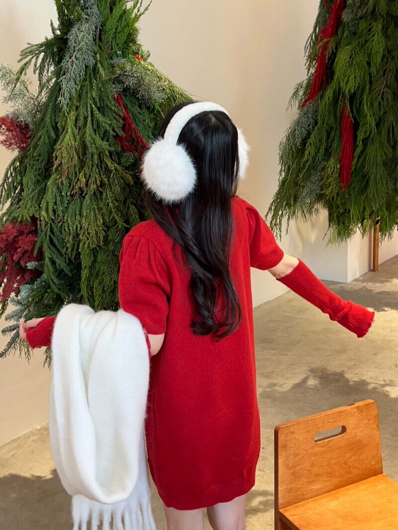 クリスマスと年レッドニットドレス女性の秋冬 2024 甘くて美しいリトルスリーブショートスカート 大人ガーリー スウィート キュート カジュアル オータム 秋物 ウィンター 冬物 8571625078465714