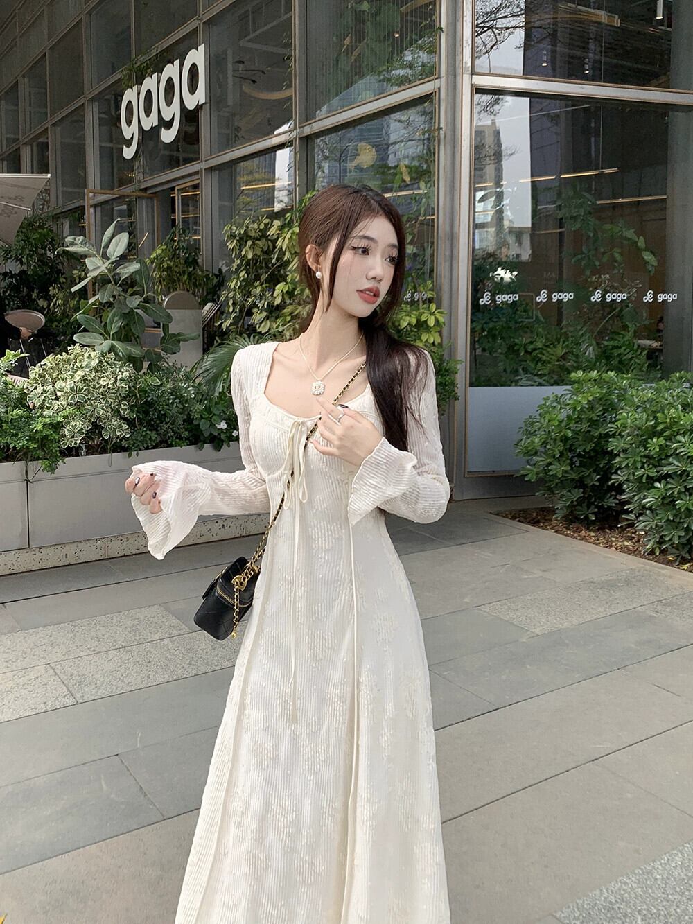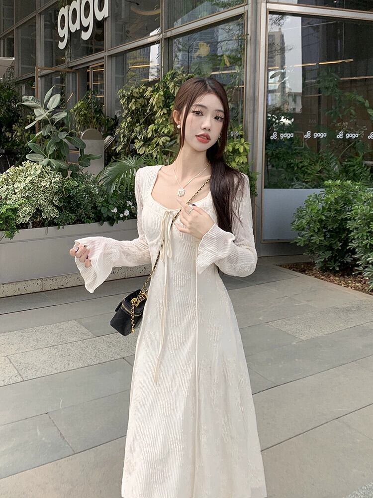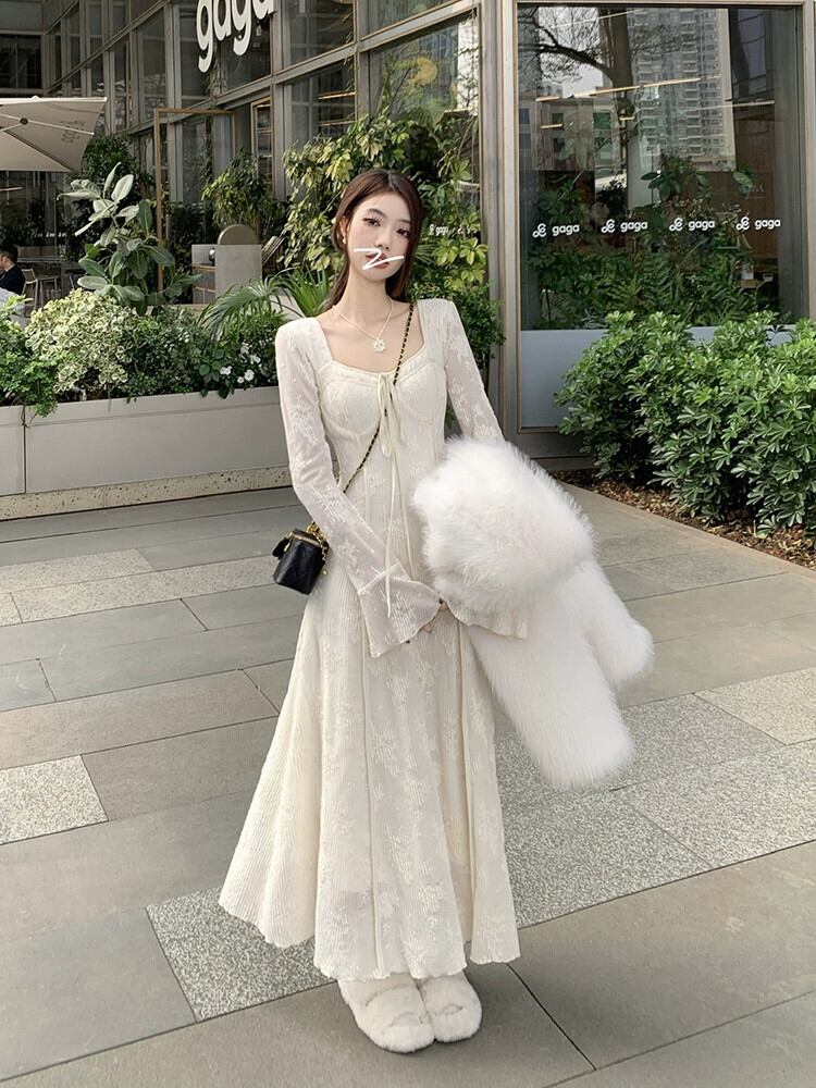 中国風の中国風のレースのドレスの女性の秋と冬のベルベット、優しくてとてもきれい、コートの下に四角い襟のロングスカートが付いています。 オータム 秋物 ウィンター 冬物 スクウェア 8571631413190215