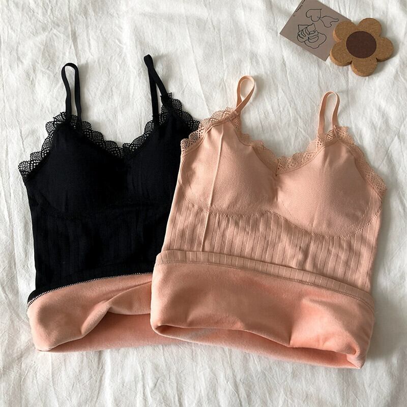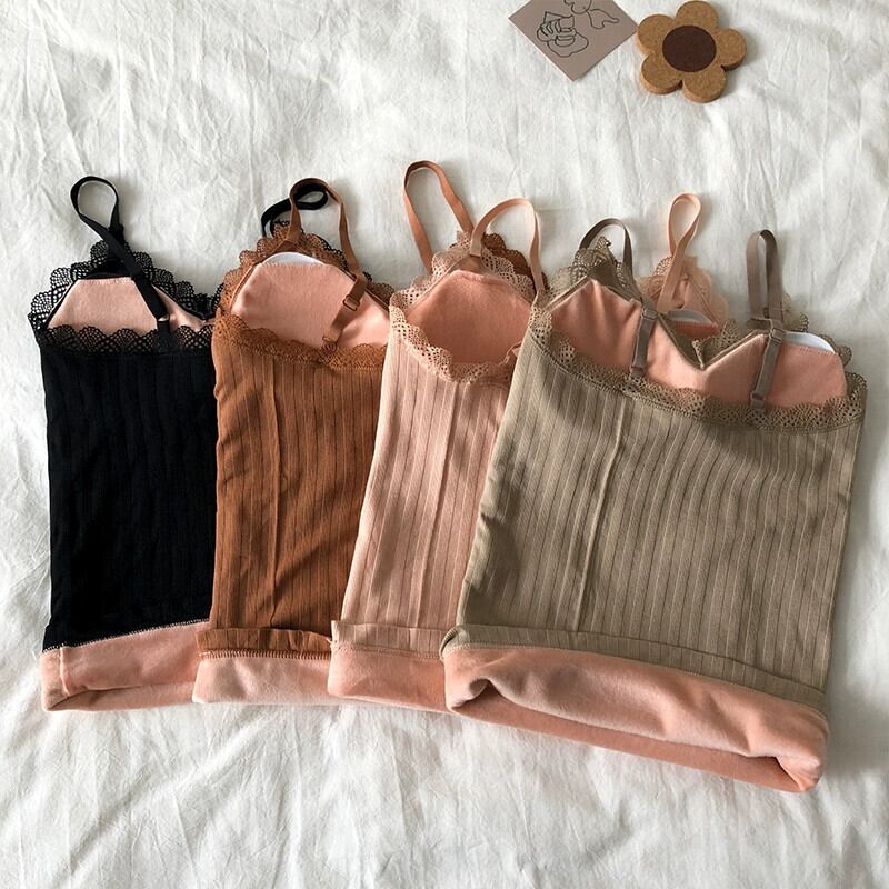 秋冬のサーマル下着女性プラスベルベットと厚みのあるインナーボトムシャツ、胸パッド付きキャミソールスリムノースリーブトップ オータム 秋物 ウィンター 冬物 8571649587280381
