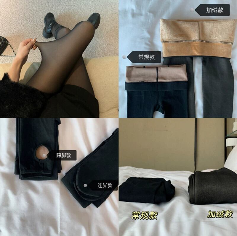 秋と冬の黒いシルケット加工の脚のアーティファクト女性、さらにベルベットと厚みのある暖かいパンスト、ヌード感、フェイクスルー、足踏みストッキング ブラック オータム 秋物 ウィンター 冬物 タイツ ソックス 857166623811693