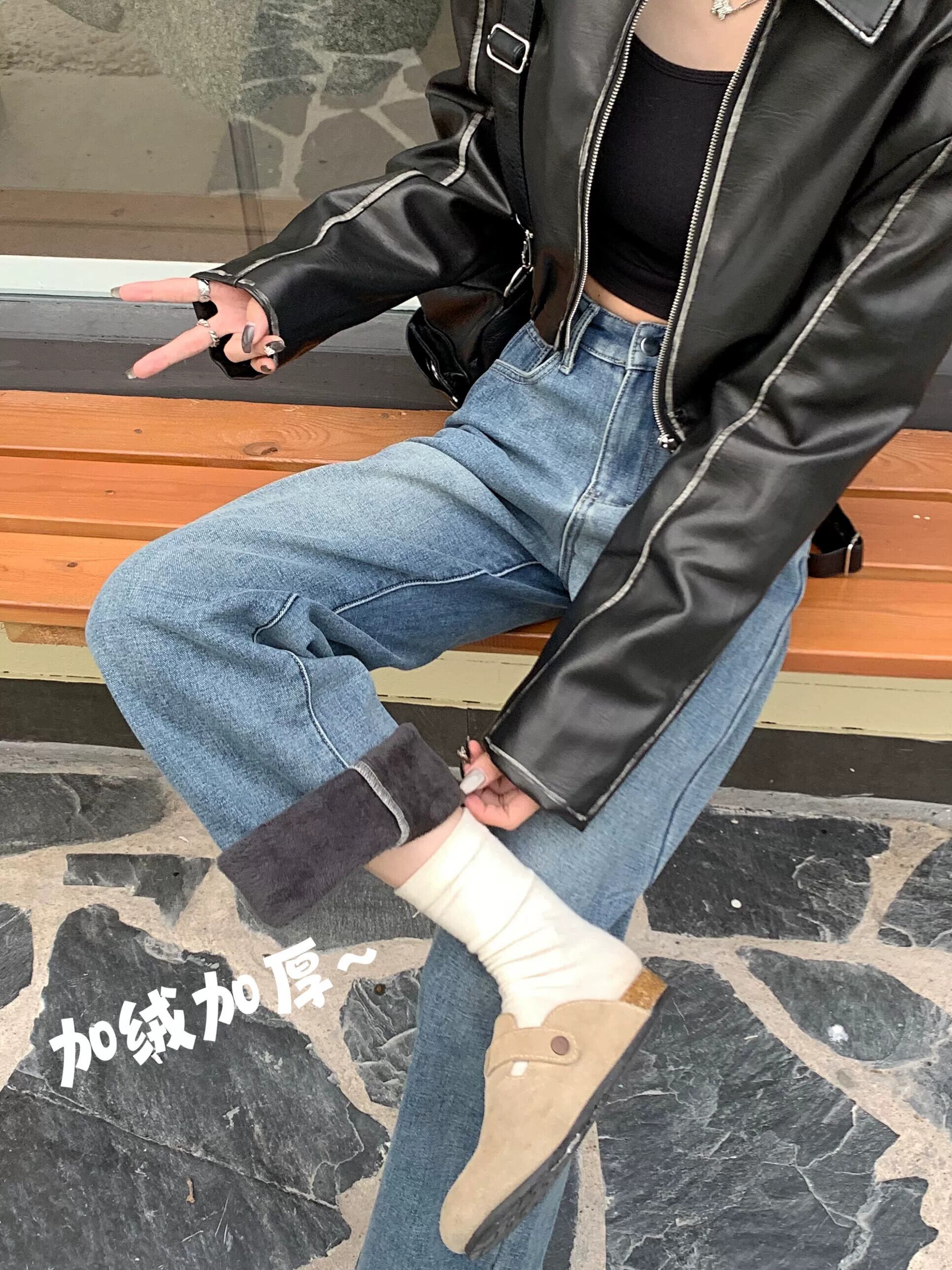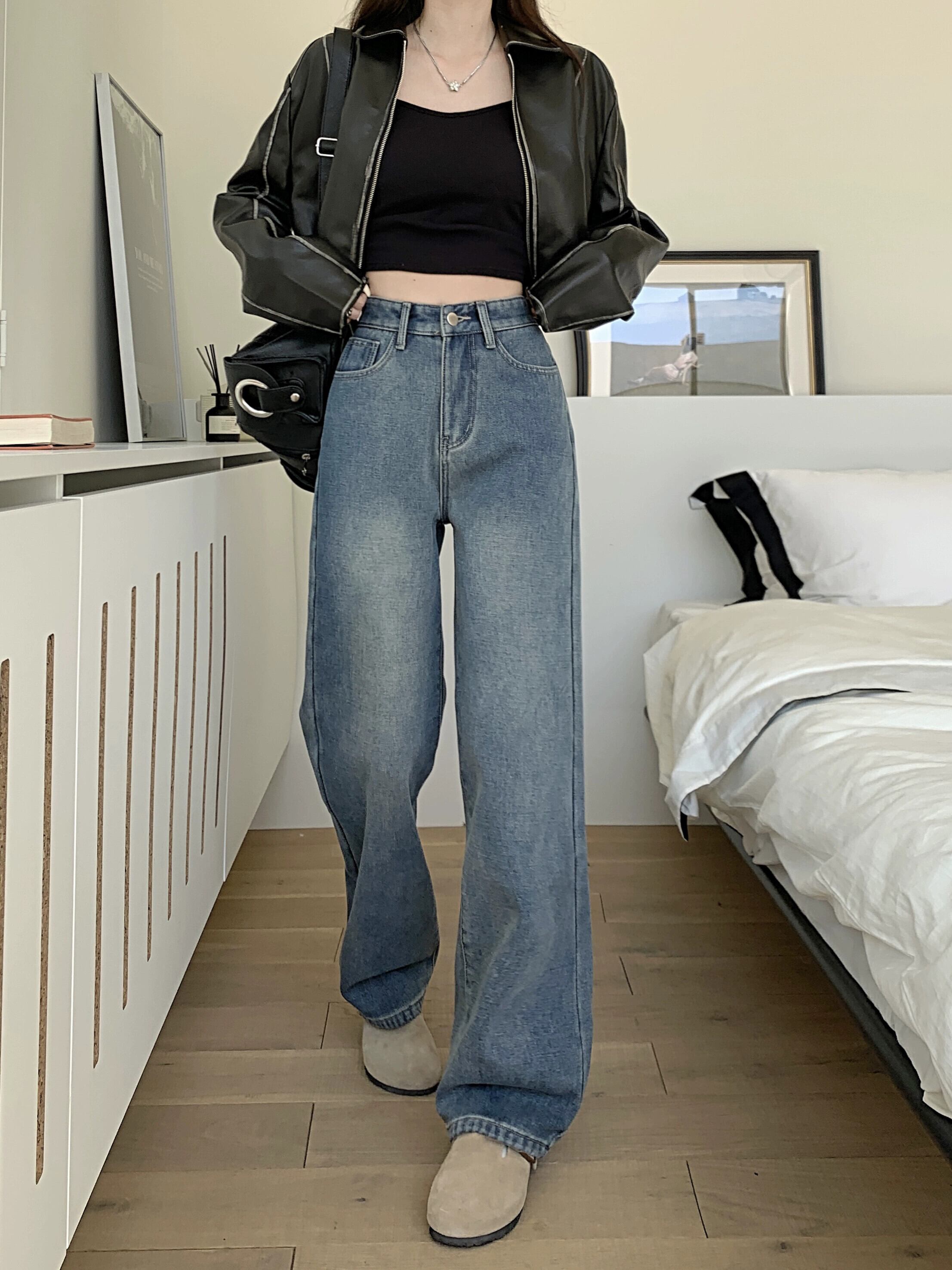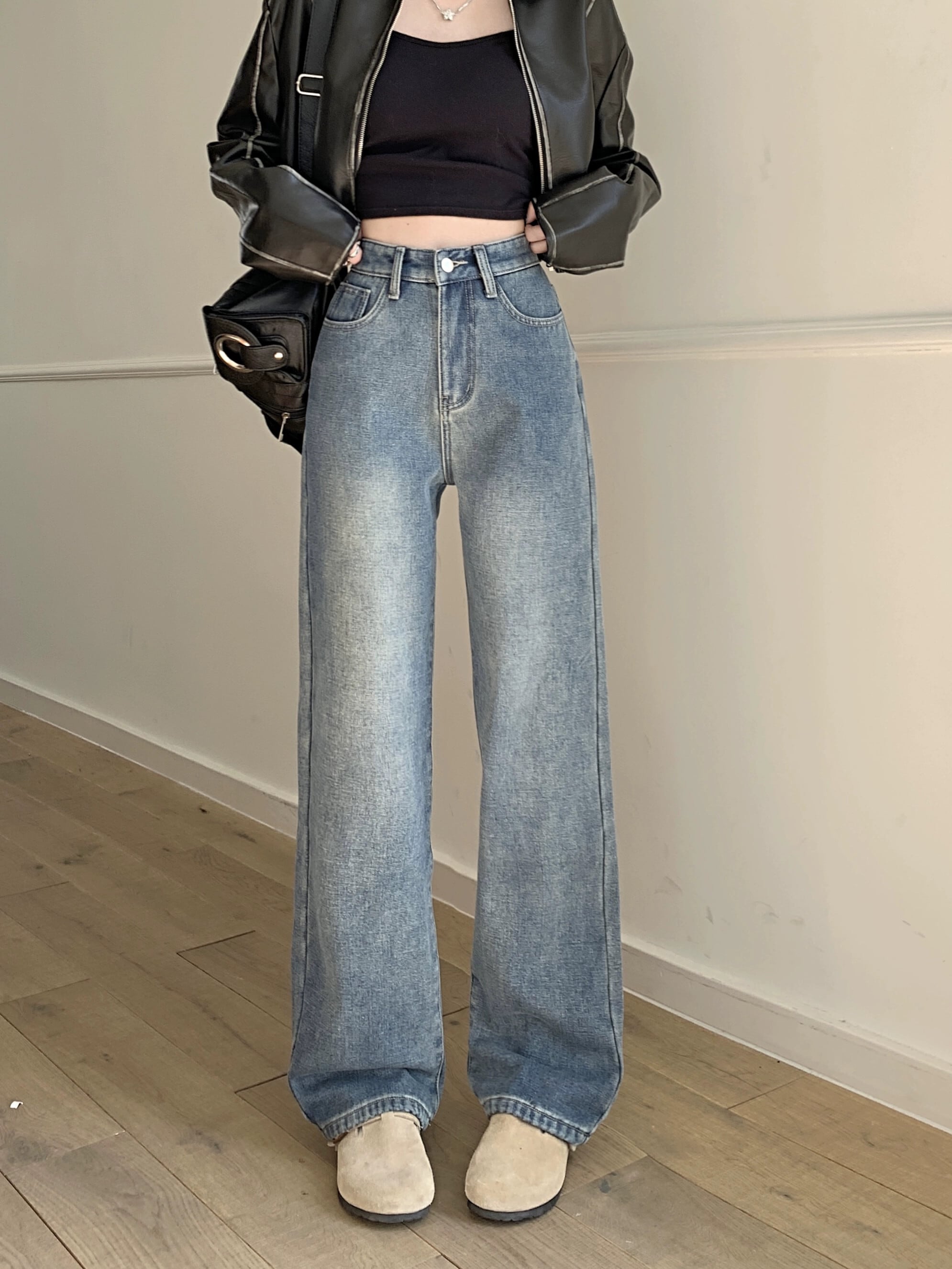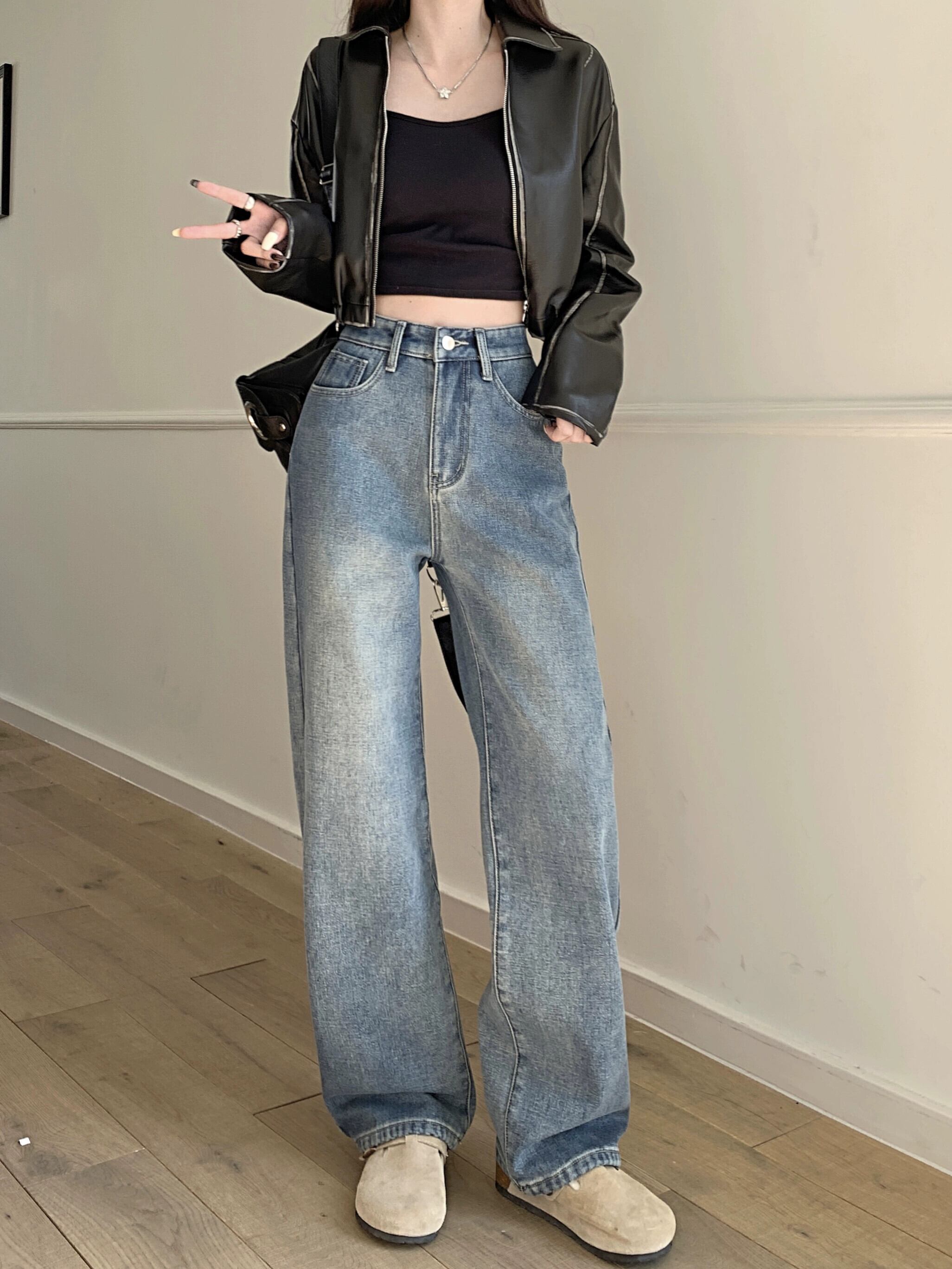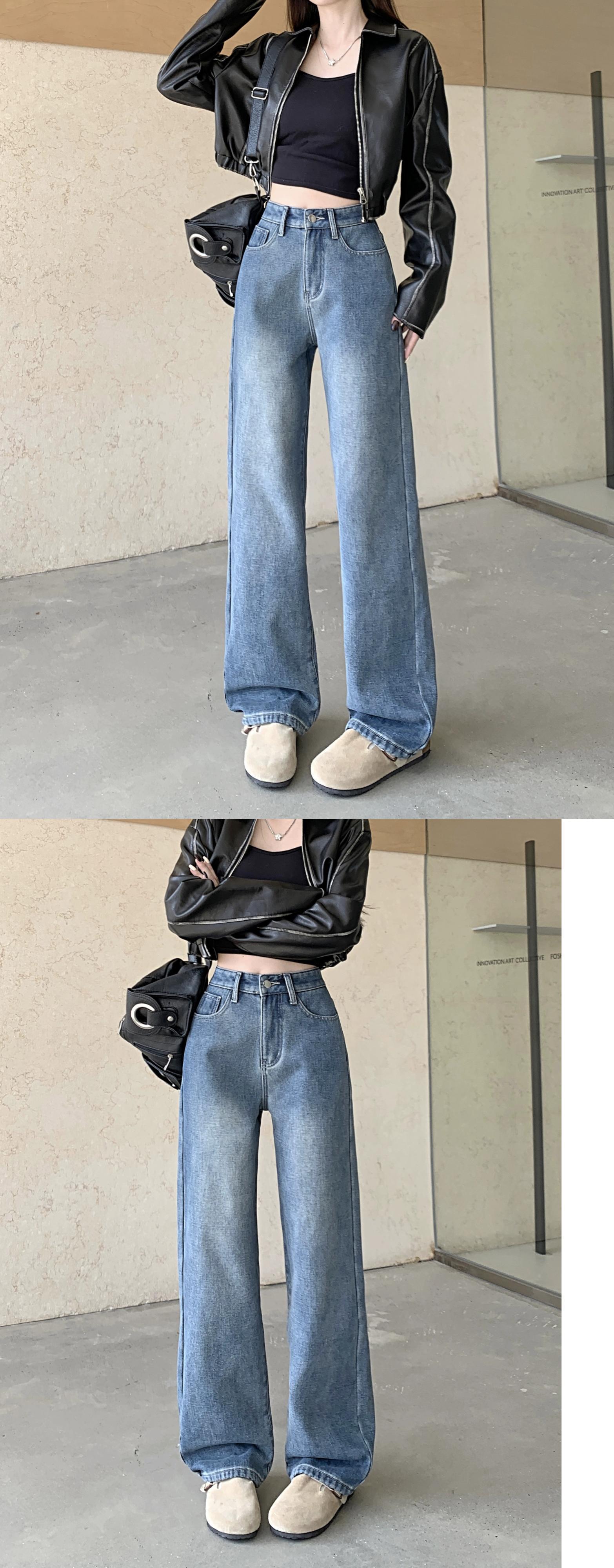 ベルベット肥厚ジーンズ女性の秋と冬のハイウエストワイドレッグパンツ 2024 新ヨーロッパ製品人気のストレートレッグフロアレングスパンツ オータム 秋物 ウィンター 冬物 ヨーロピアン 8571648336132495