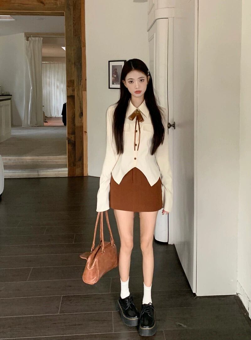 色:アプリコットトップ+蝶ネクタイ,コーヒースカート