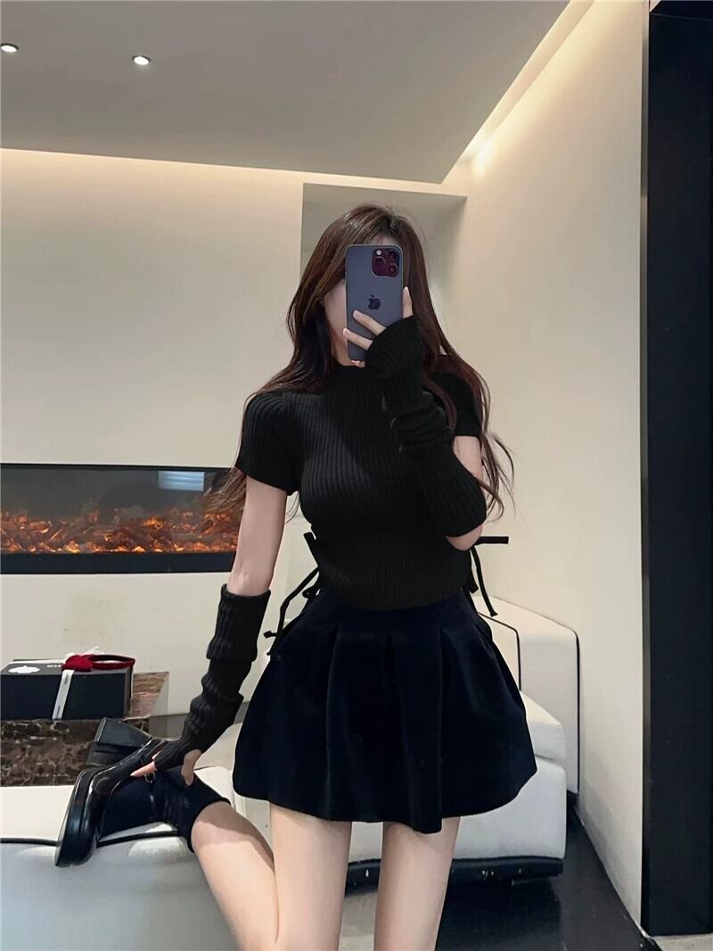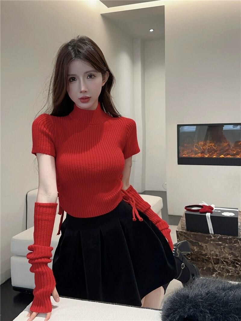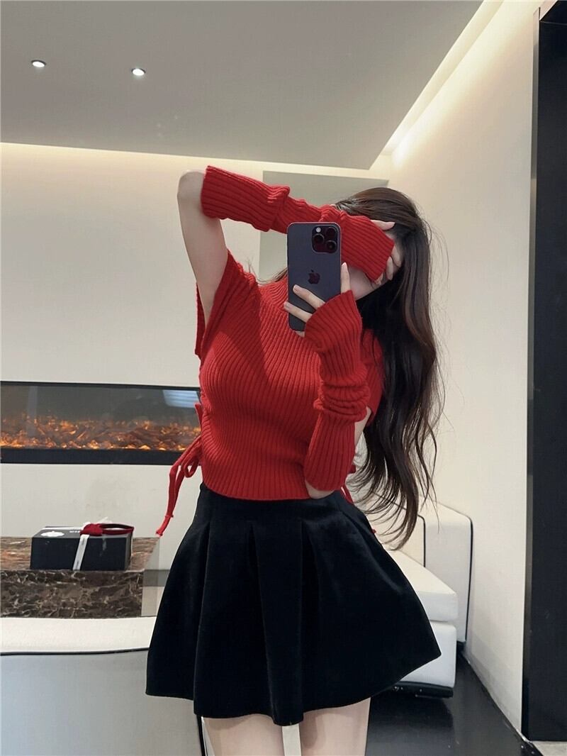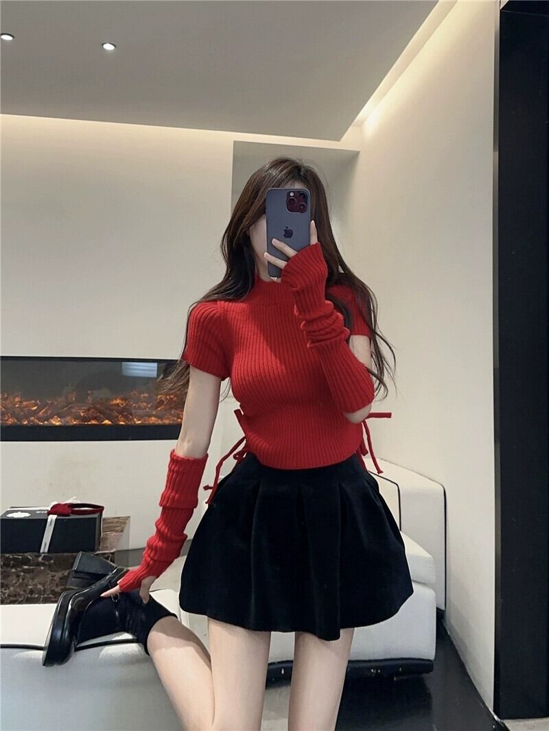 純粋な欲望の風袖取り外し可能なセーターの女性の秋と冬の 2024 年の新デザイン、スリムなハーフタートルネックトップ オータム 秋物 ウィンター 冬物 8571676699505763