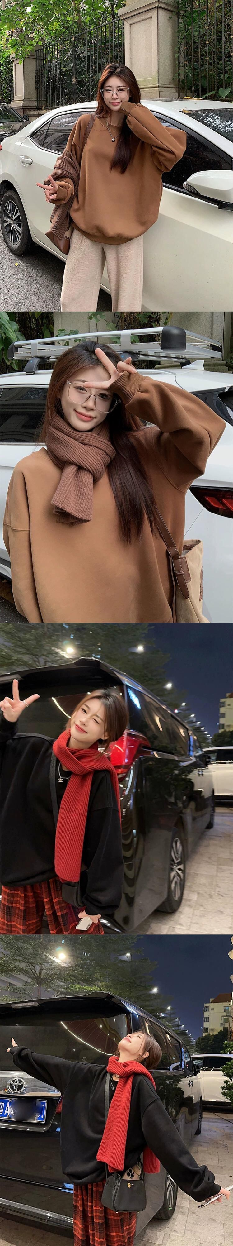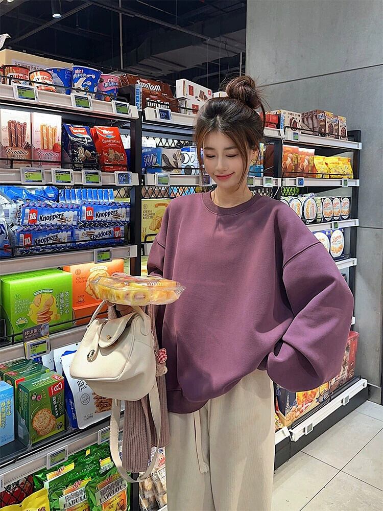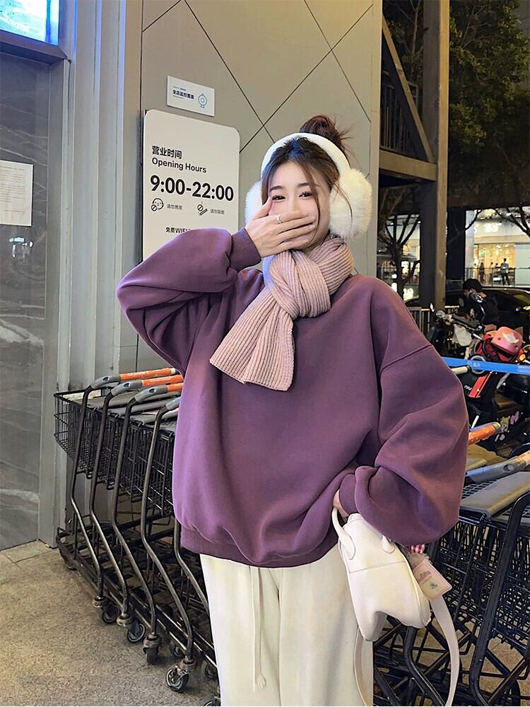 アメリカの怠惰なスタイルの紫色のラウンドネックスウェットシャツの女性の秋と冬 2024 新しいスタイルベルベット肥厚プルオーバートップ + スカーフ オータム 秋物 ウィンター 冬物 Oネック パープル 8571627586845802