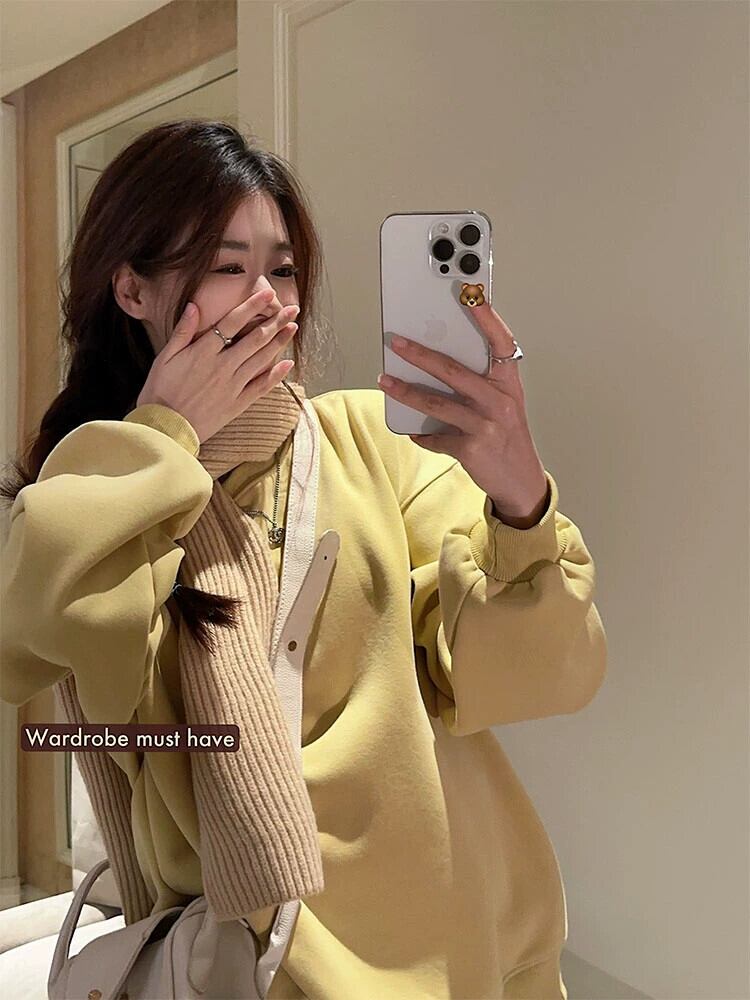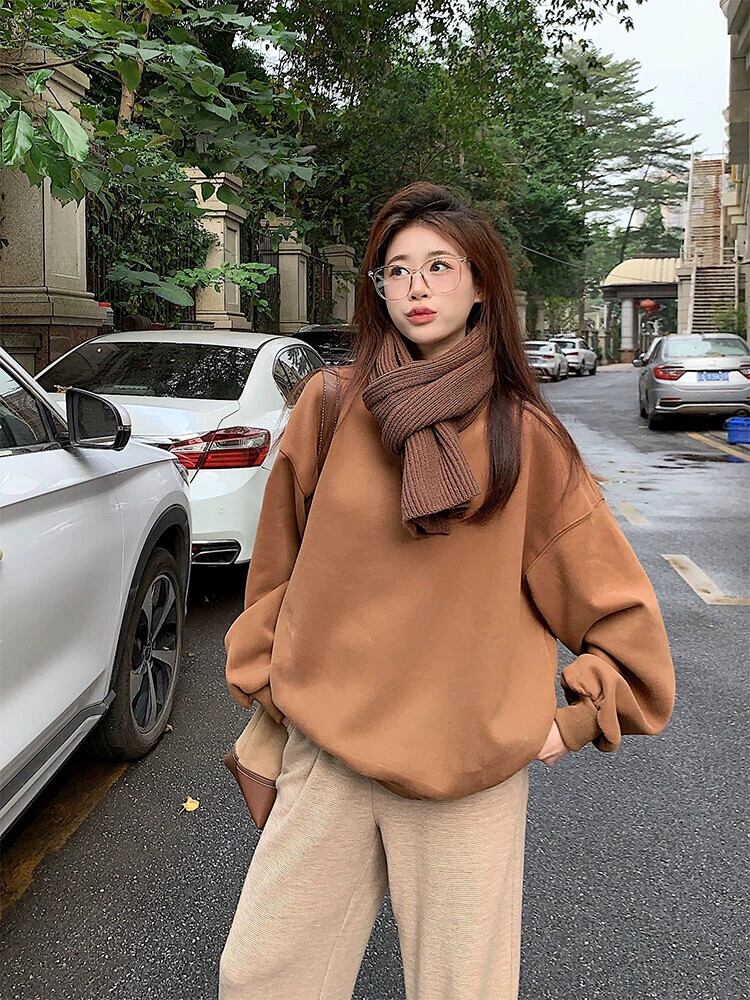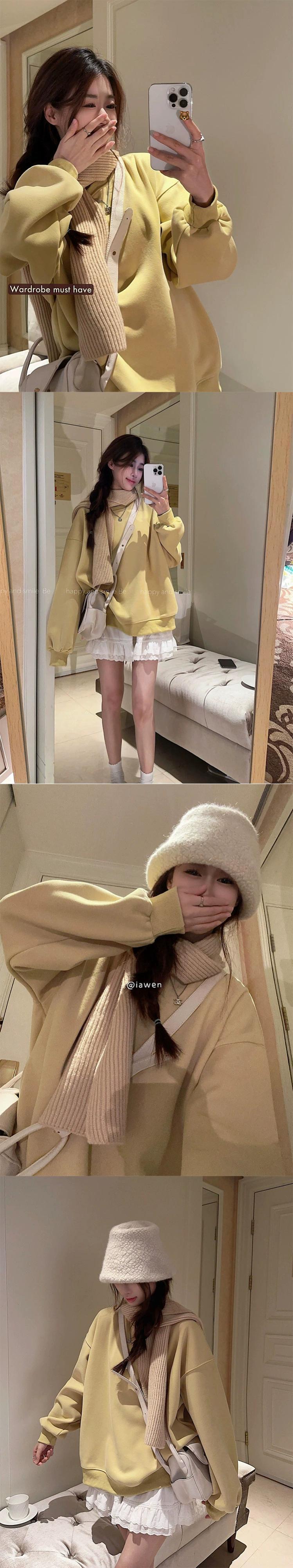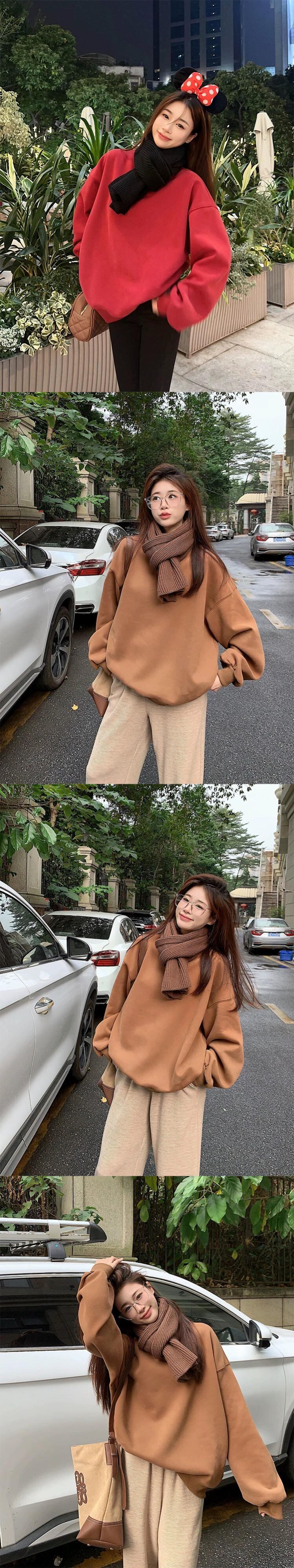 アメリカの怠惰なスタイルの紫色のラウンドネックスウェットシャツの女性の秋と冬 2024 新しいスタイルベルベット肥厚プルオーバートップ + スカーフ オータム 秋物 ウィンター 冬物 Oネック パープル 8571627586845802