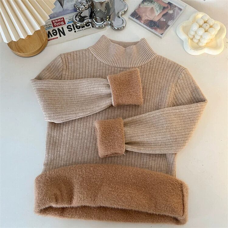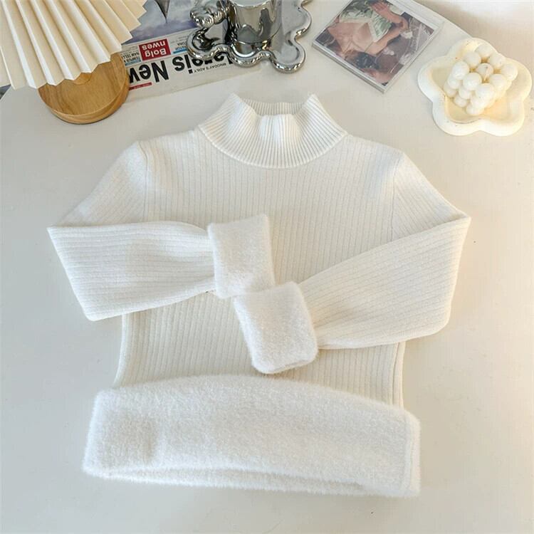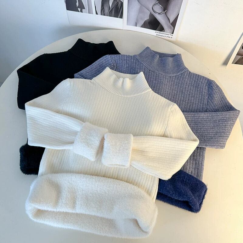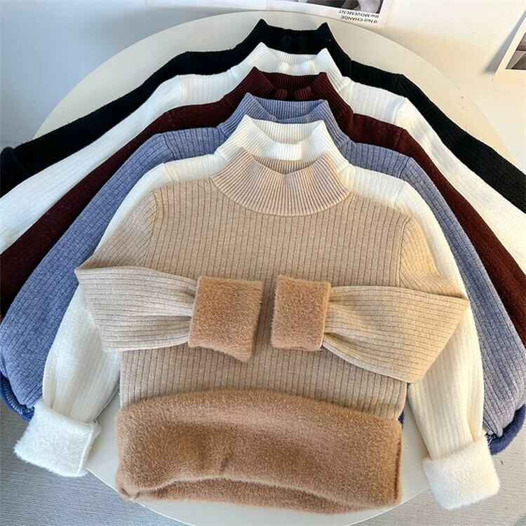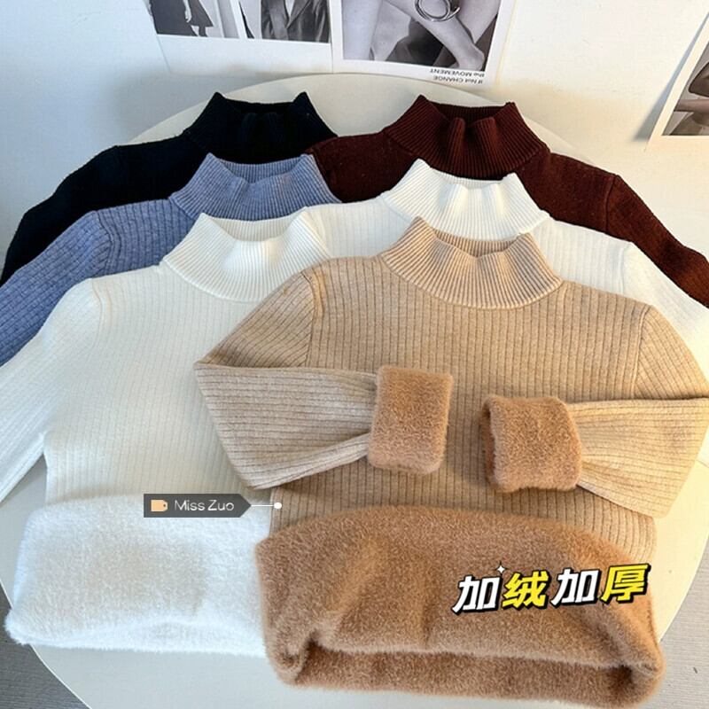 ハーフタートルネックインナー底セーター女性秋と冬 2024 新しいベルベット肥厚長袖暖かいセータートップ ロング オータム 秋物 ウィンター 冬物 857169675615517