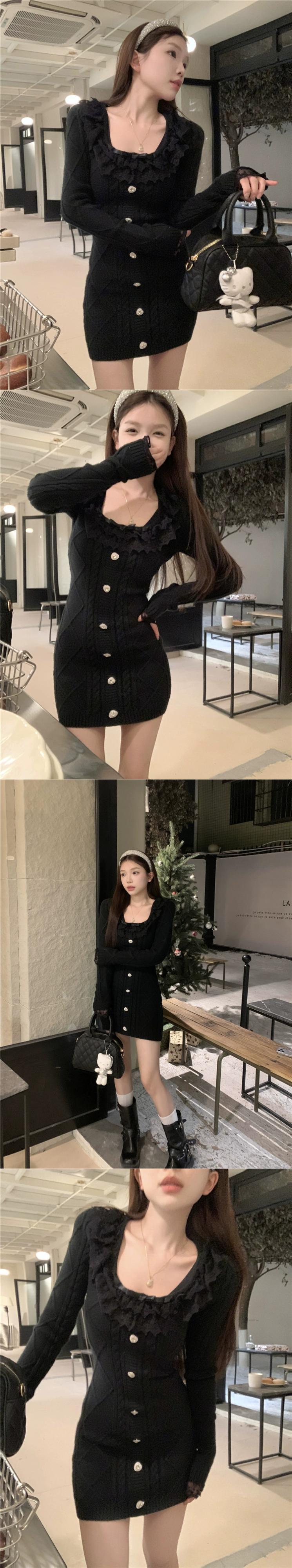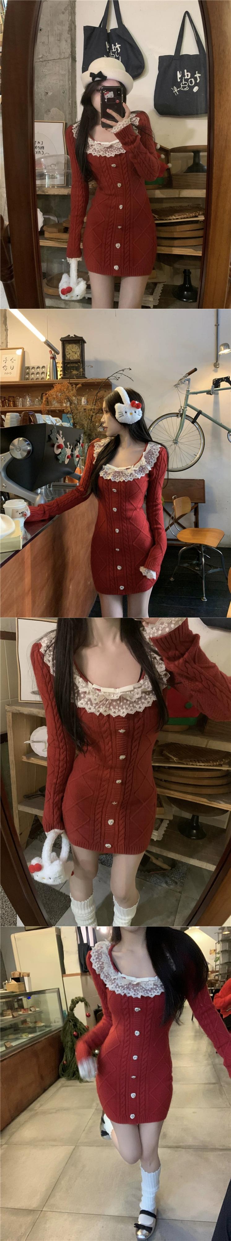 Pure Desire ドレス レディース 秋冬 2024 ニッチ レース ホットガール 長袖 ニット ショート スカート ロング オータム 秋物 ウィンター 冬物 8571690609720845