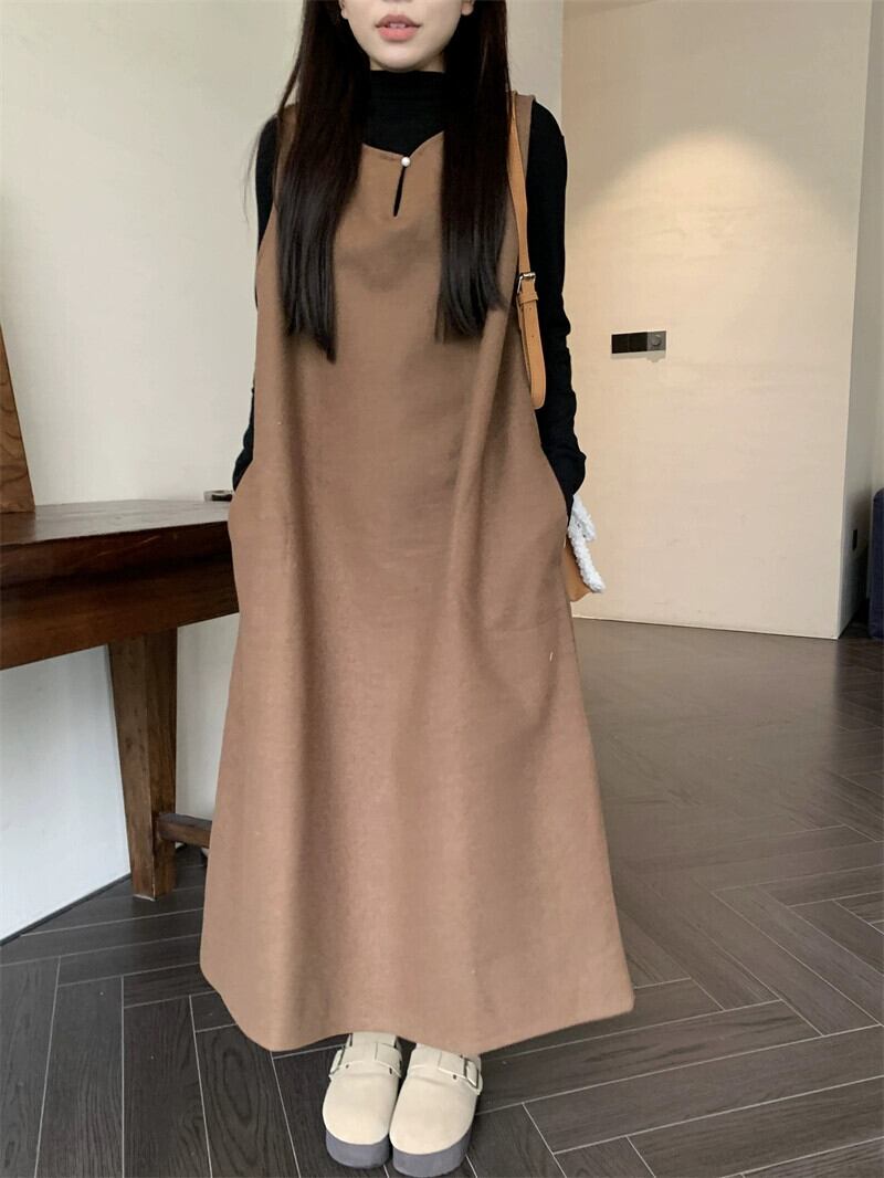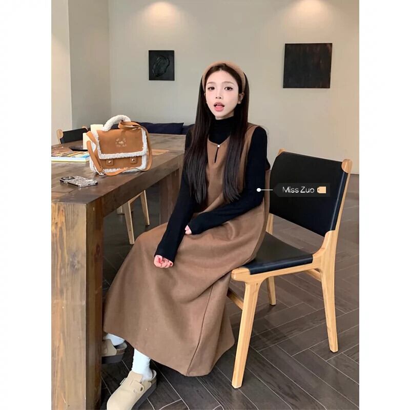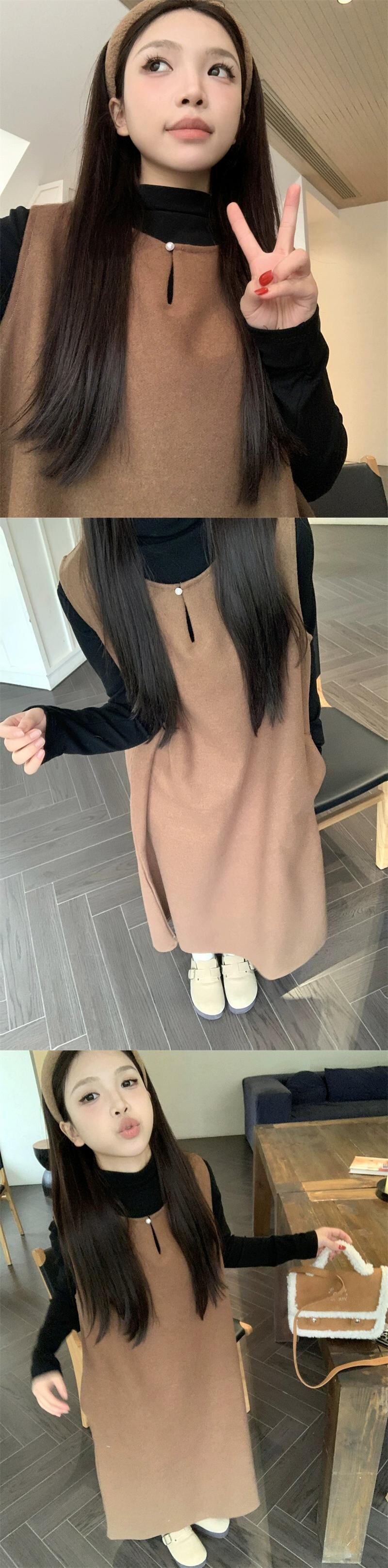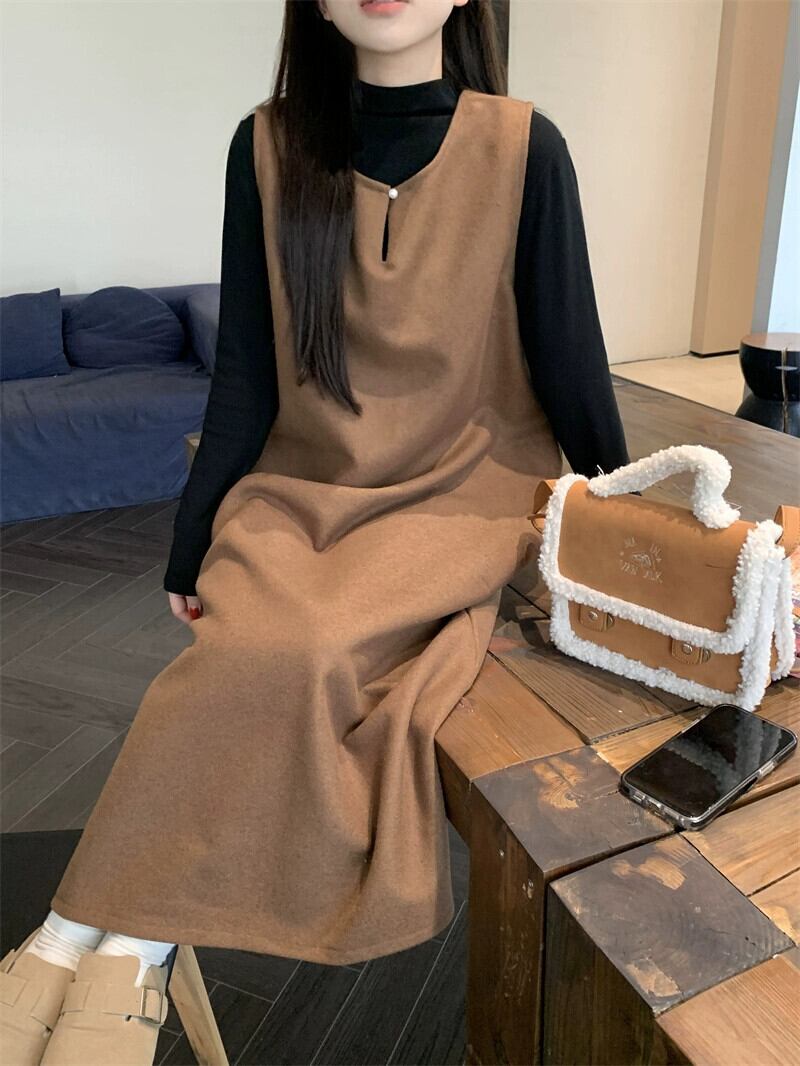 ese 両面模造ウールベストドレス女性の秋と冬の 2024 新しい 1 ボタン A ラインセータードレス オータム 秋物 ウィンター 冬物 Aライン 8571625118267336