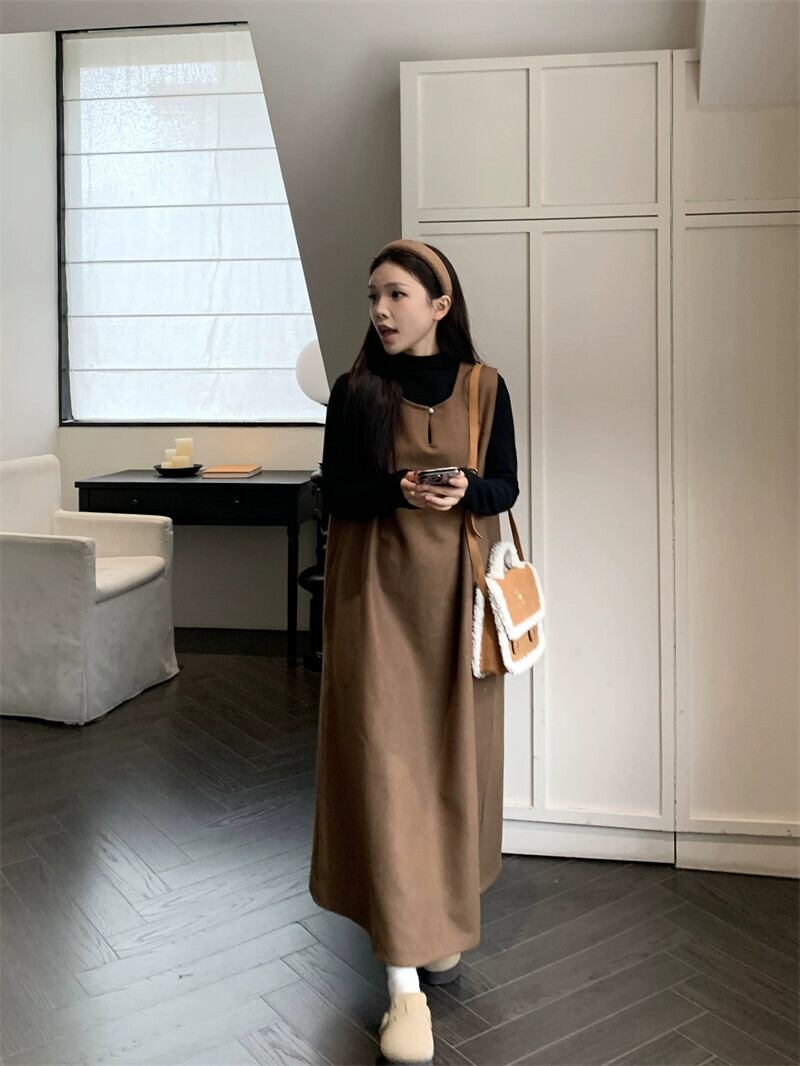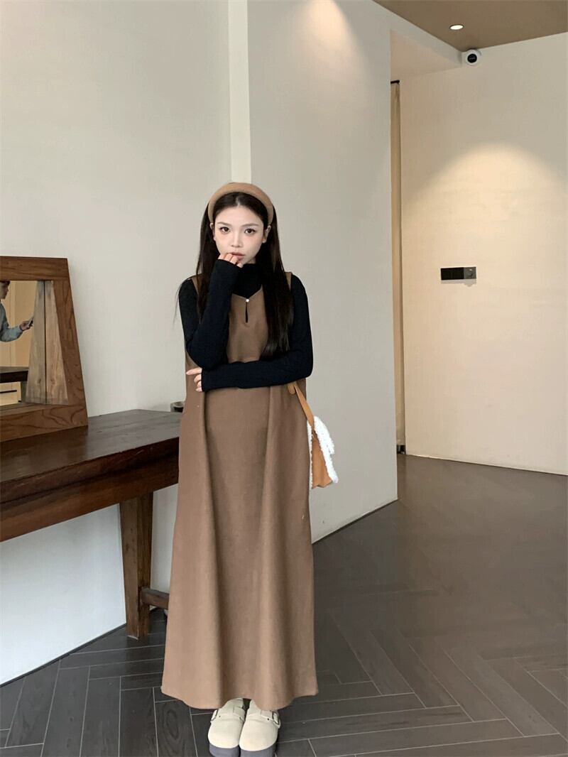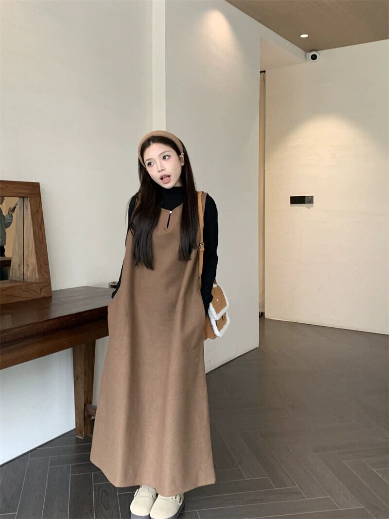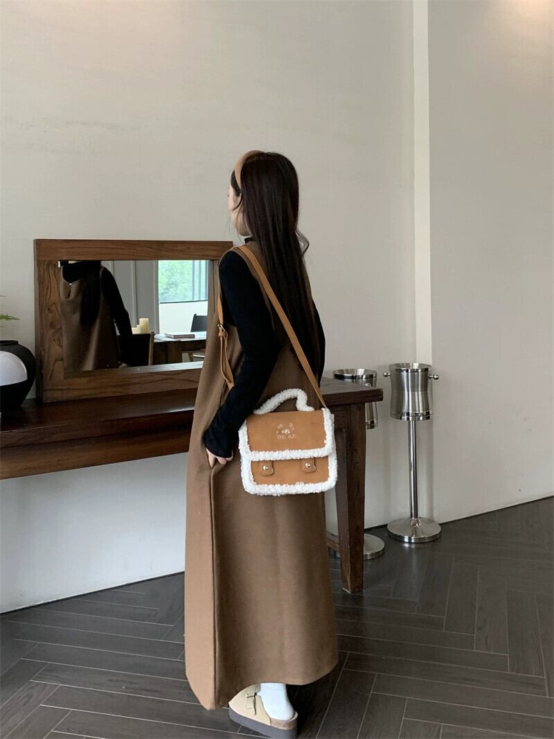 ese 両面模造ウールベストドレス女性の秋と冬の 2024 新しい 1 ボタン A ラインセータードレス オータム 秋物 ウィンター 冬物 Aライン 8571625118267336