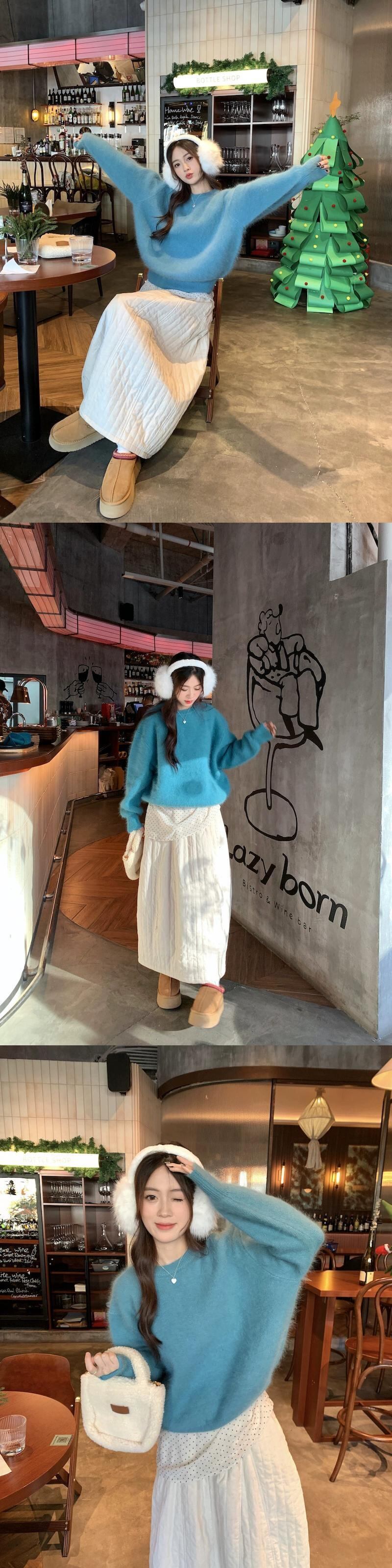ブルー厚く暖かいセーターの女性の秋と冬 2024 新しいスタイルルーズで多用途な怠惰なスタイルのニットセータートップ オータム 秋物 ウィンター 冬物 857167956566361