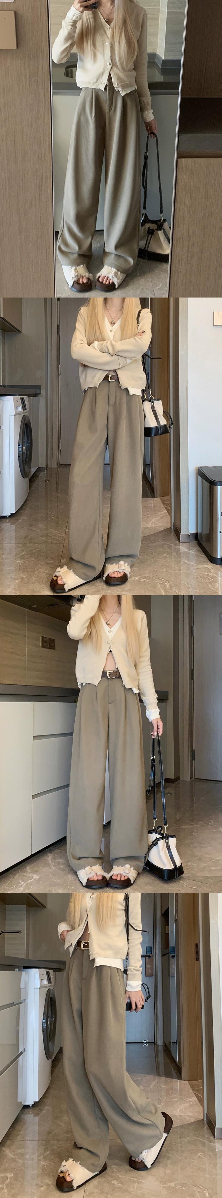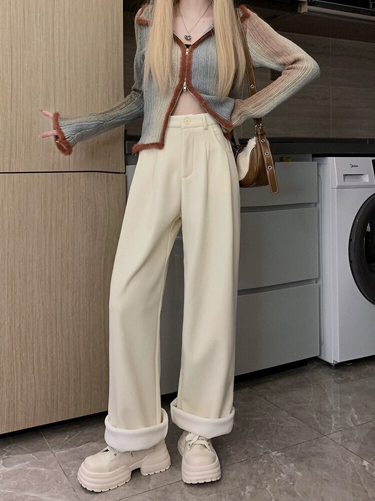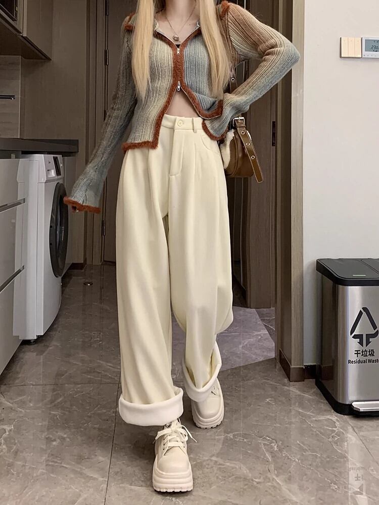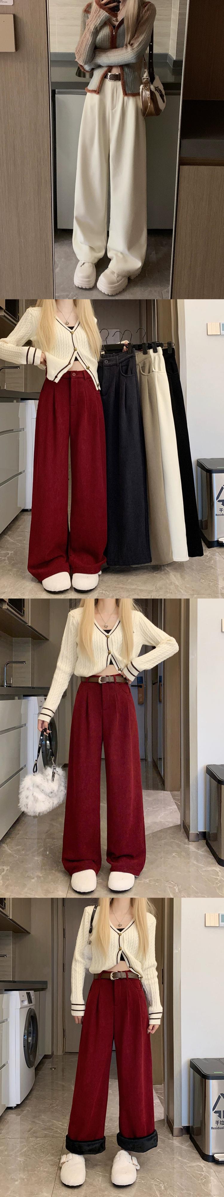 黒のワイドレッグパンツの女性の秋冬 2024 新しいスタイル怠惰なズボンルーズベルベットパンツスリムストレートカジュアルパンツ ブラック オータム 秋物 ウィンター 冬物 8571677121630267