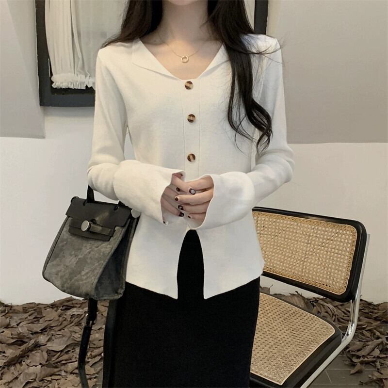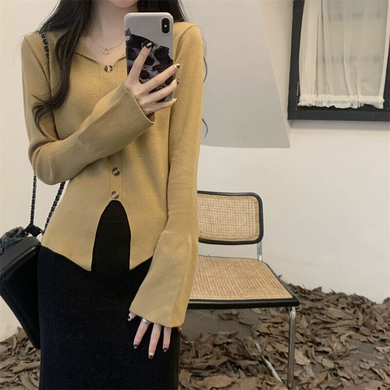小さな香りのボタン不規則な裾のセーターの女性の秋と冬 2024 新しい多用途ルーズプルオーバーセータートップ オータム 秋物 ウィンター 冬物 8571629126625855