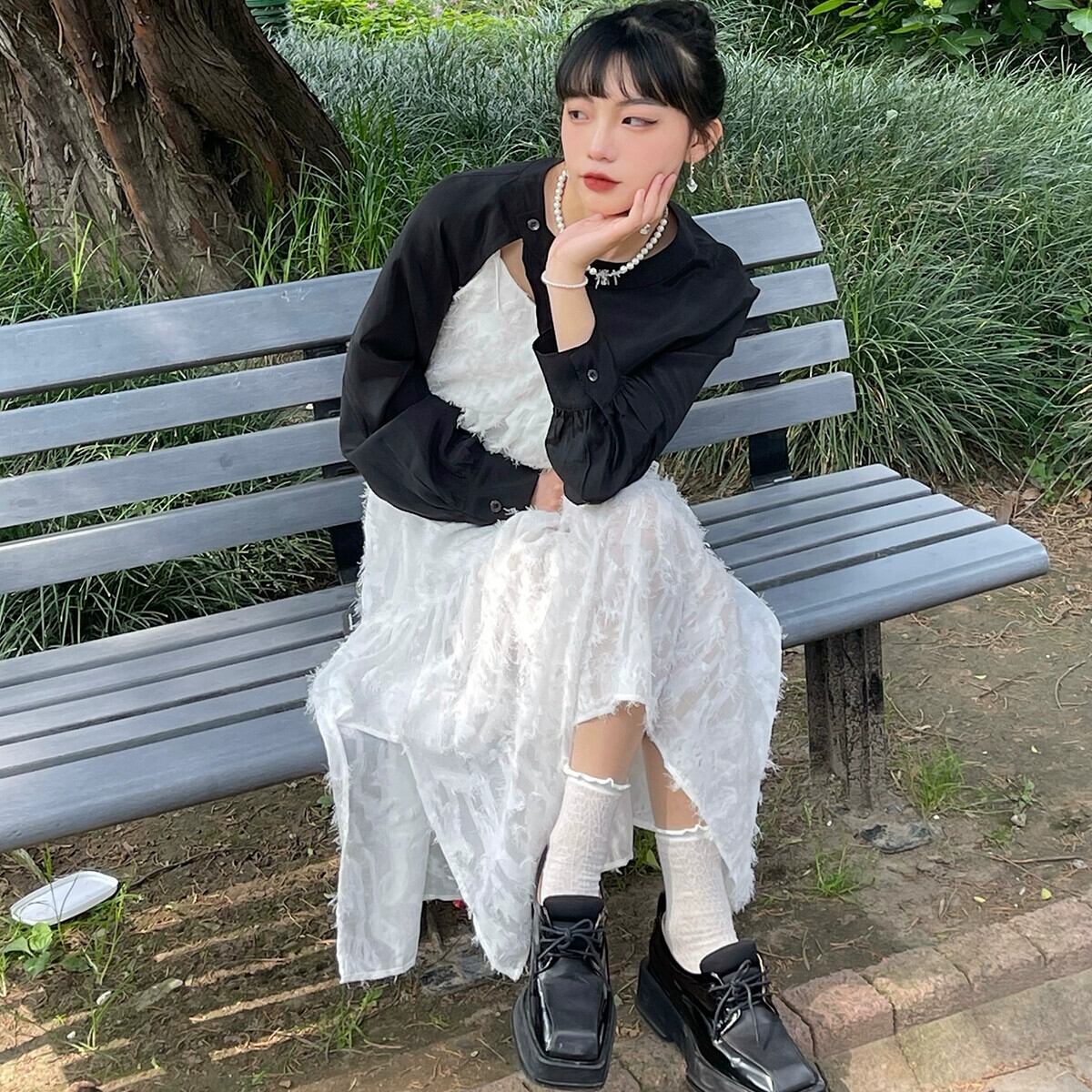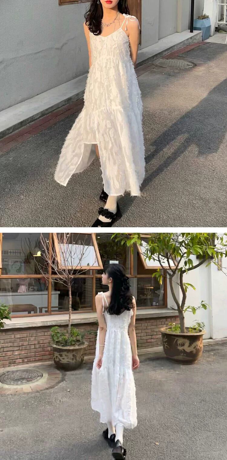 サスペンダードレスの女性の夏の 2024 新しいデザインニッチ優しいスタイルの気質甘いスーパー妖精ロングスカート 大人ガーリー スウィート キュート カジュアル サマー 夏物 8571658566218435