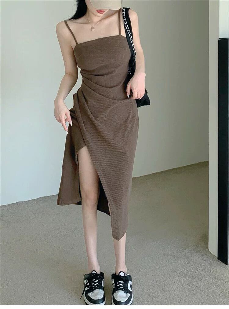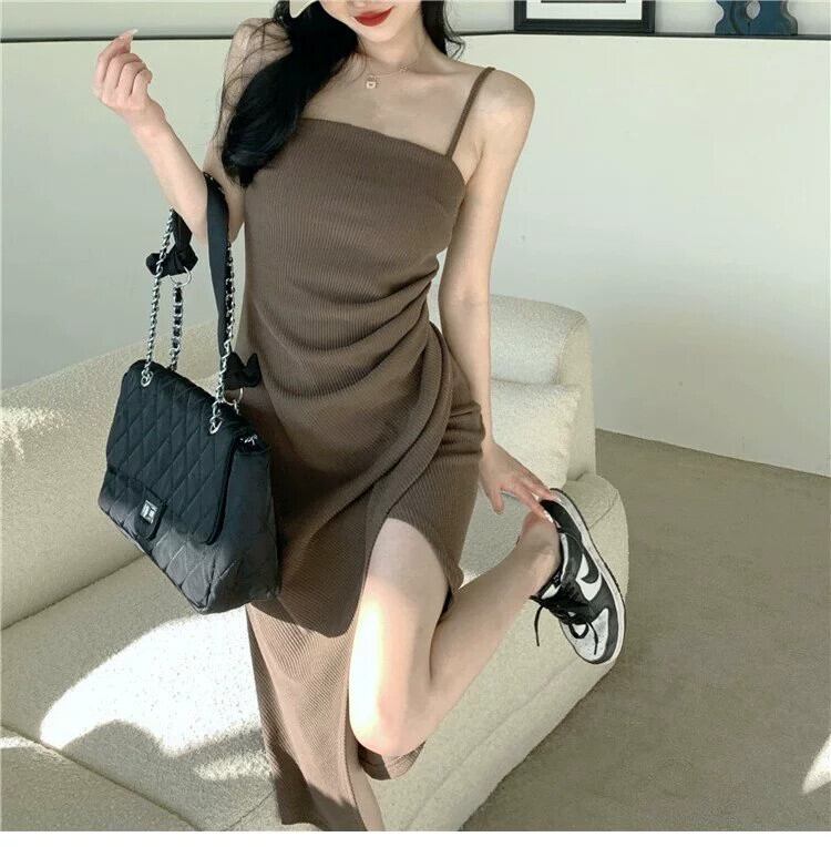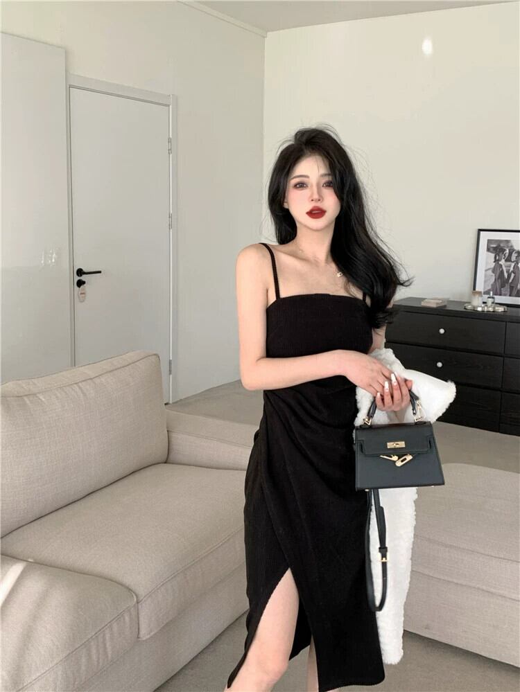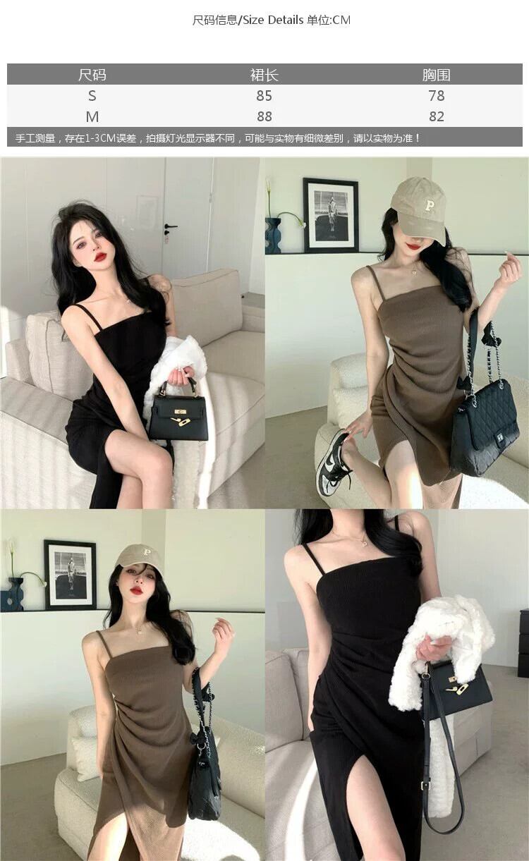 ホットブラックサスペンダードレス女性の夏2024新しいスタイル小さなスリム純粋な欲望セクシーなスリットロングスカート サマー 夏物 ピュア 8571651547339466