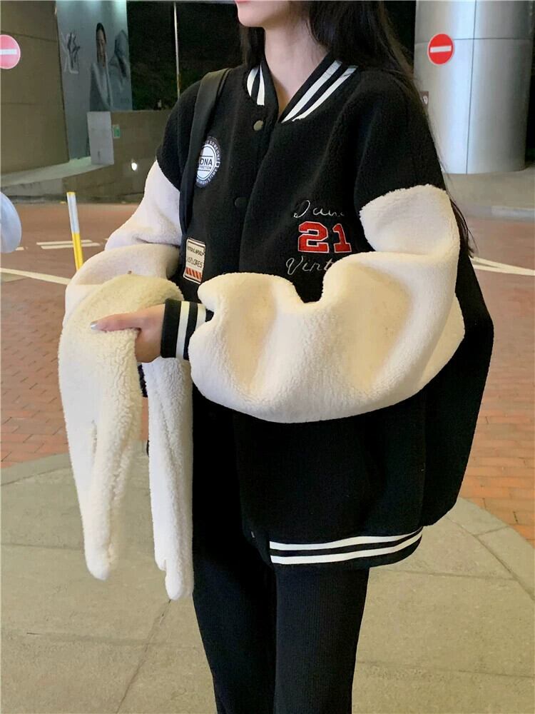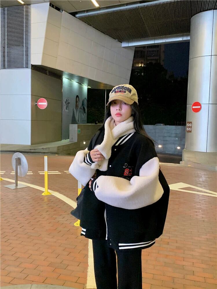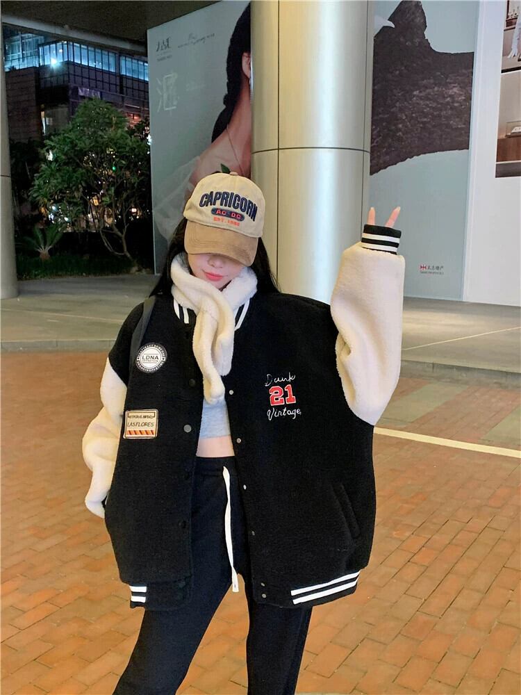 ラムウール肥厚コート女性秋冬 2024 新しいスタイルカレッジスタイルルーズ多目的英数字ジャケット オータム 秋物 ウィンター 冬物 8571619146217018