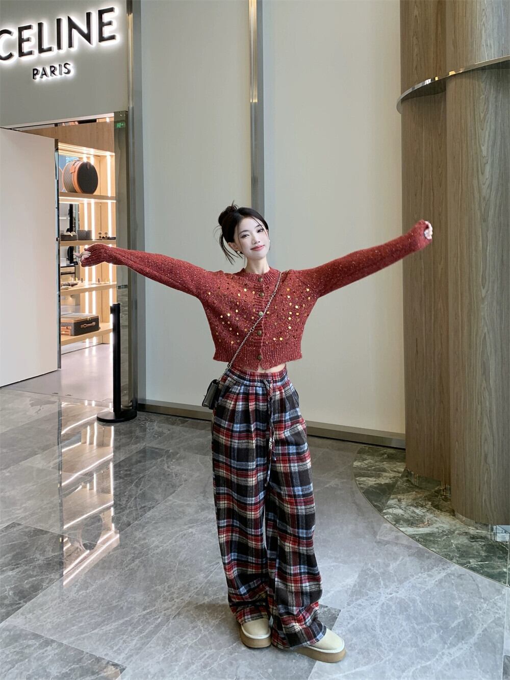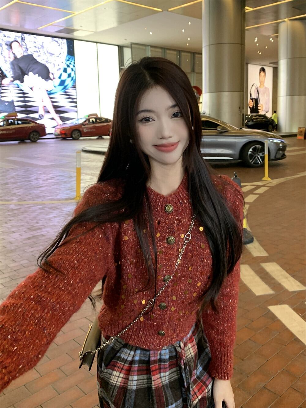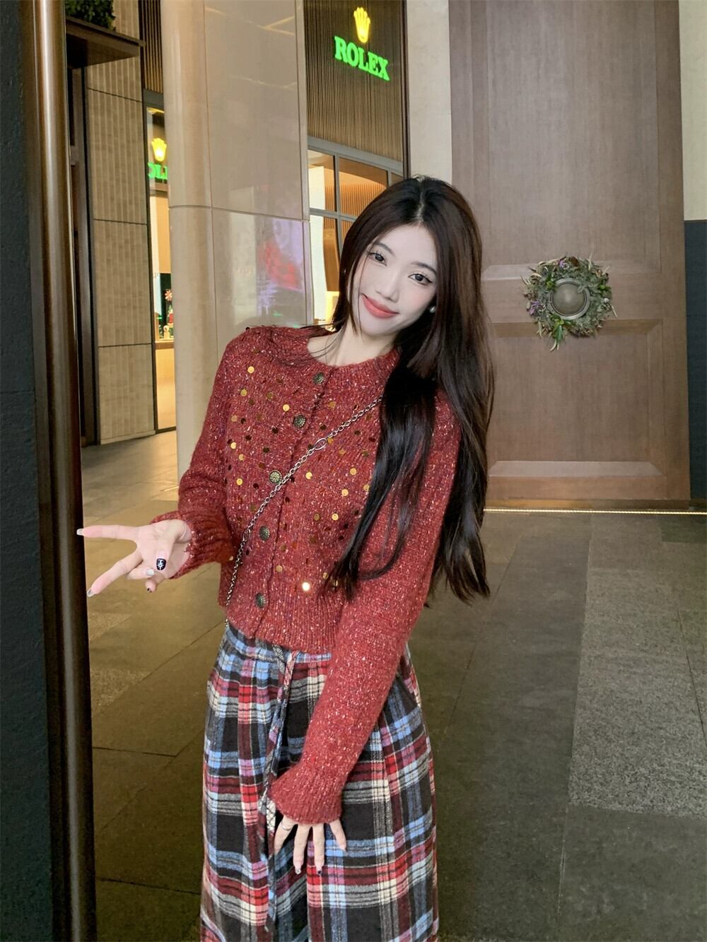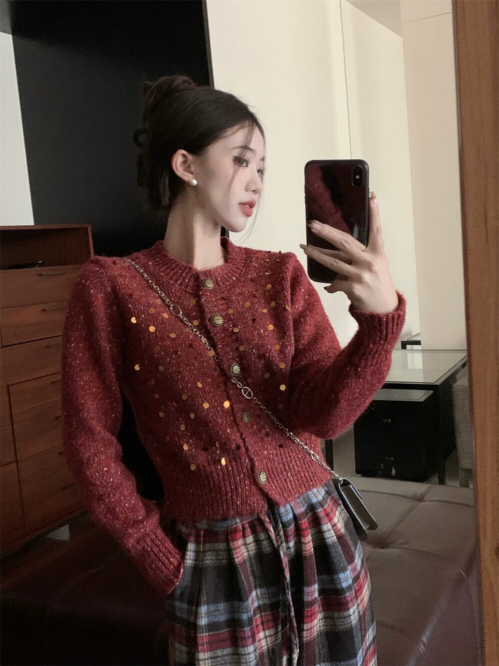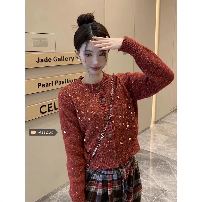 重工業スパンコールニットカーディガン女性 2024 秋と冬の新しい気質小さな香りスタイルのハイエンドセーターシングルブレストジャケット オータム 秋物 ウィンター 冬物 8571621756291230