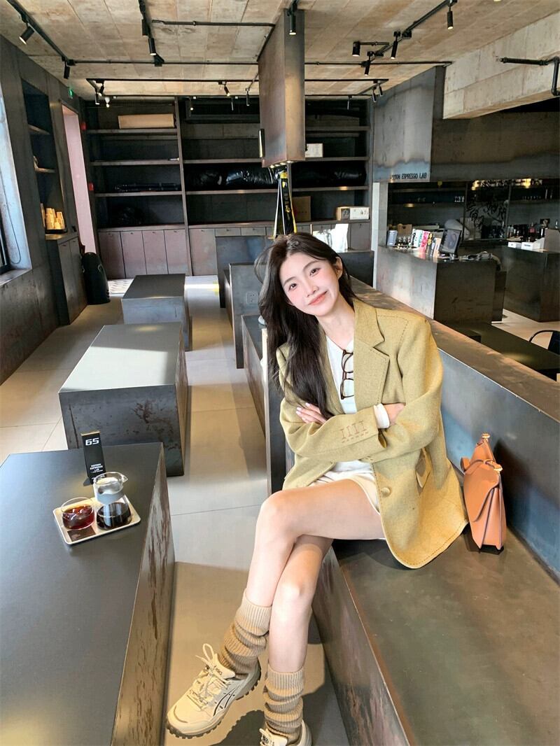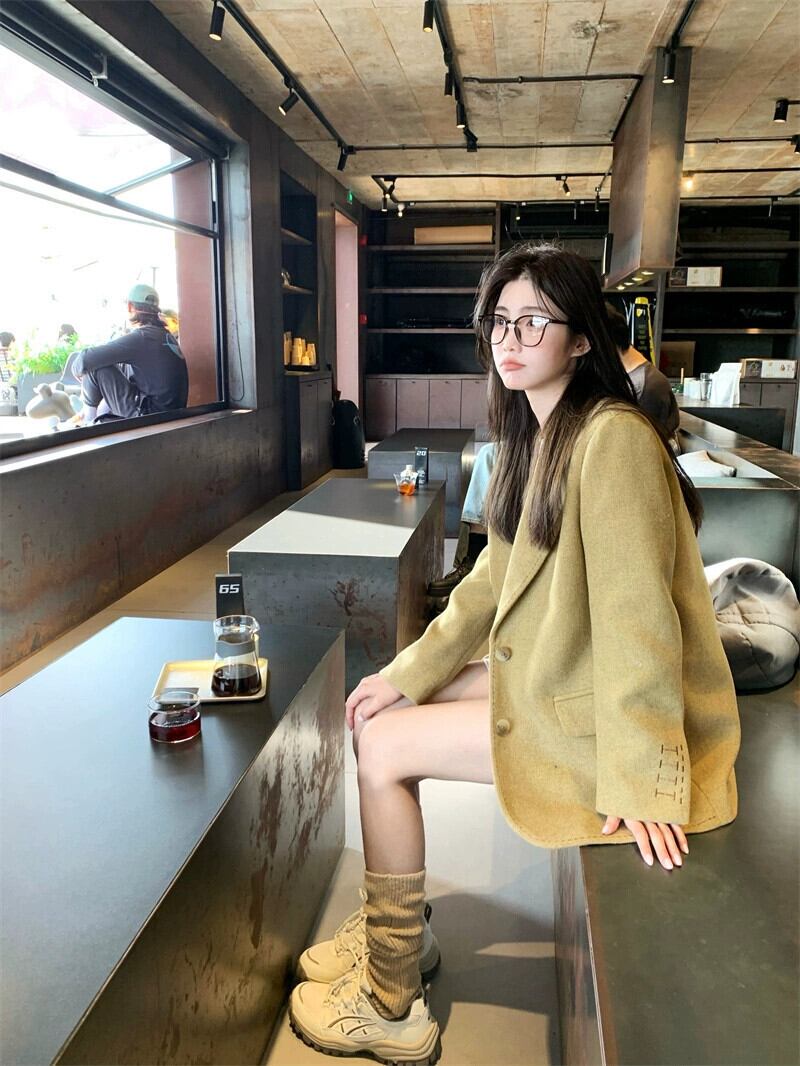 無地長袖スーツジャケットの女性の秋冬 2024 新しいスタイルのハイエンドスタイルの小さなミッドレングスのスーツ ロング オータム 秋物 ウィンター 冬物 ソリッドカラー 8571643307837733