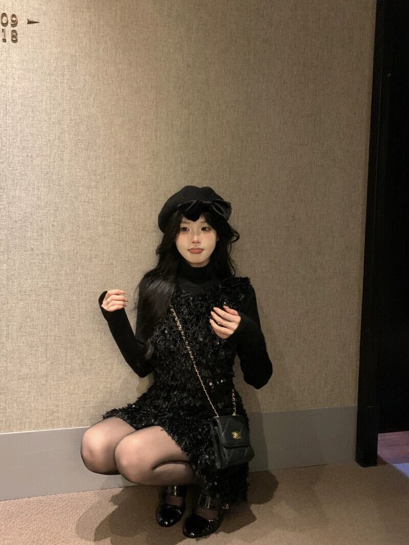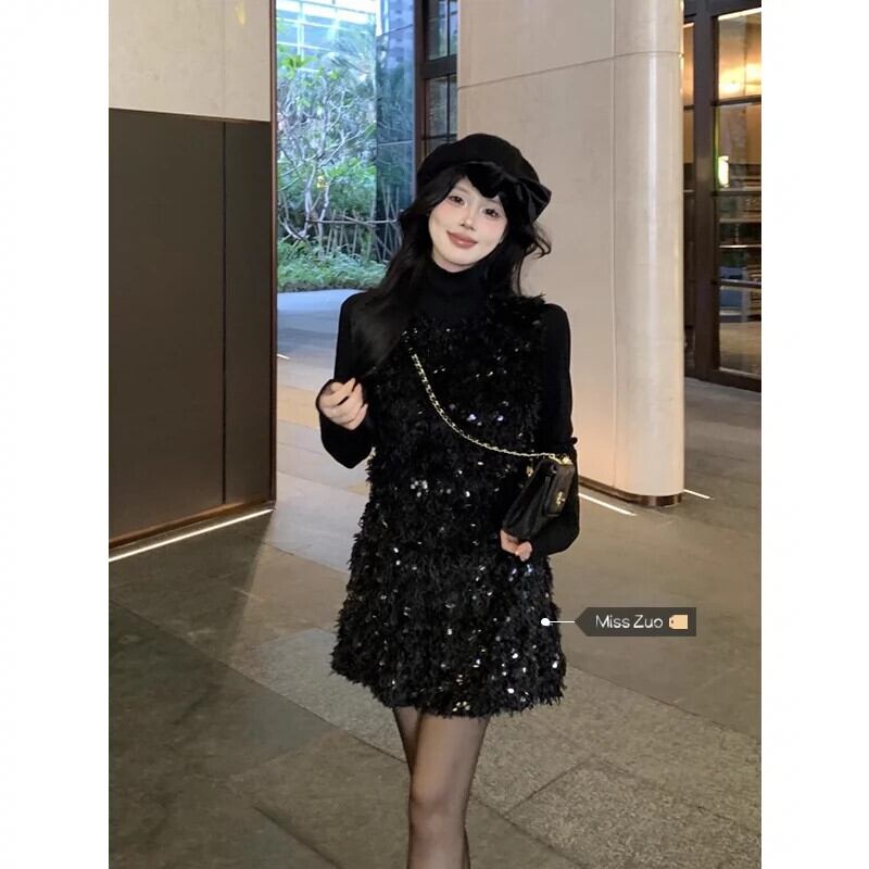 重工業スパンコールグリッターサスペンダードレス女性の冬のハイエンドブラック少し香りの良い女性の気質ベストスカート ウィンター 冬物 8571614311700350