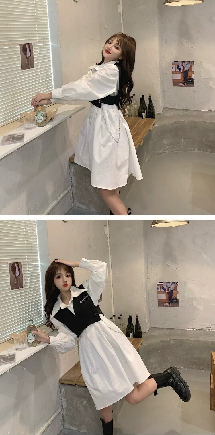 色:白いシャツスカート,ブラウンのシャツドレス,黒のベスト