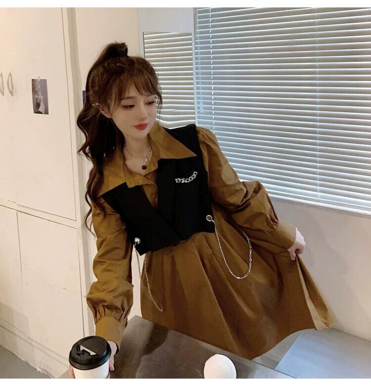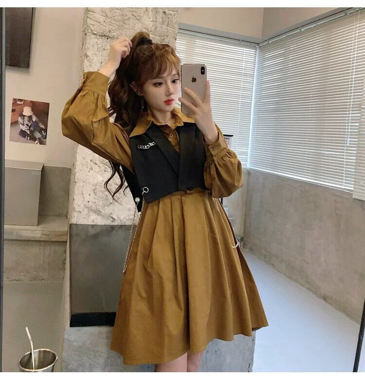 長袖シャツドレスレディース秋ツーピースセット2024新しいデザインの小さなシックなウエストスカート ロング オータム 秋物 8571680318242183