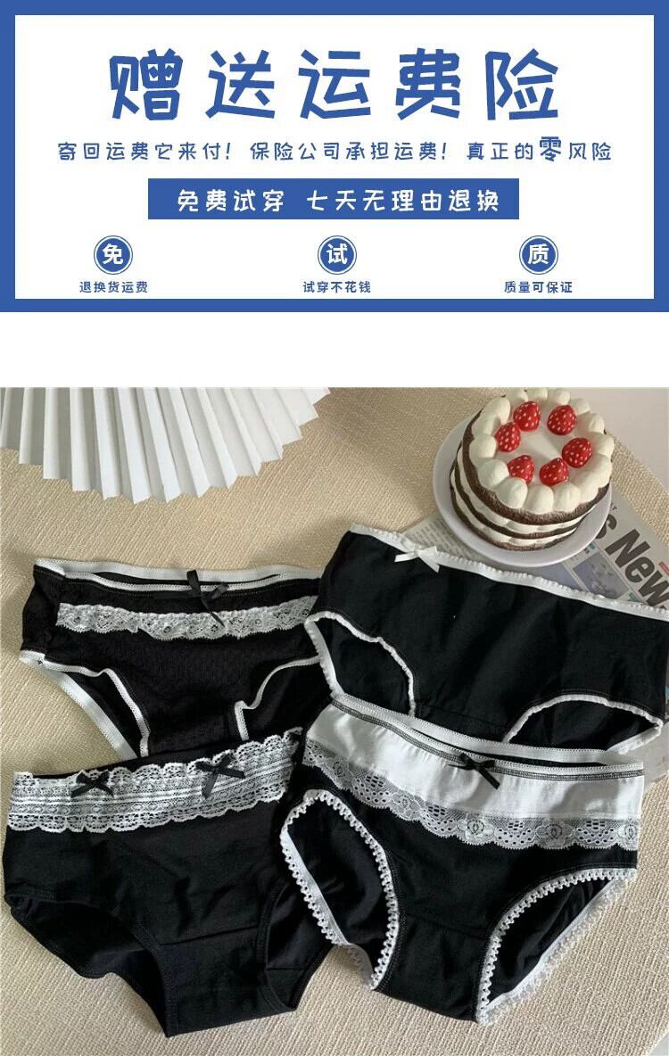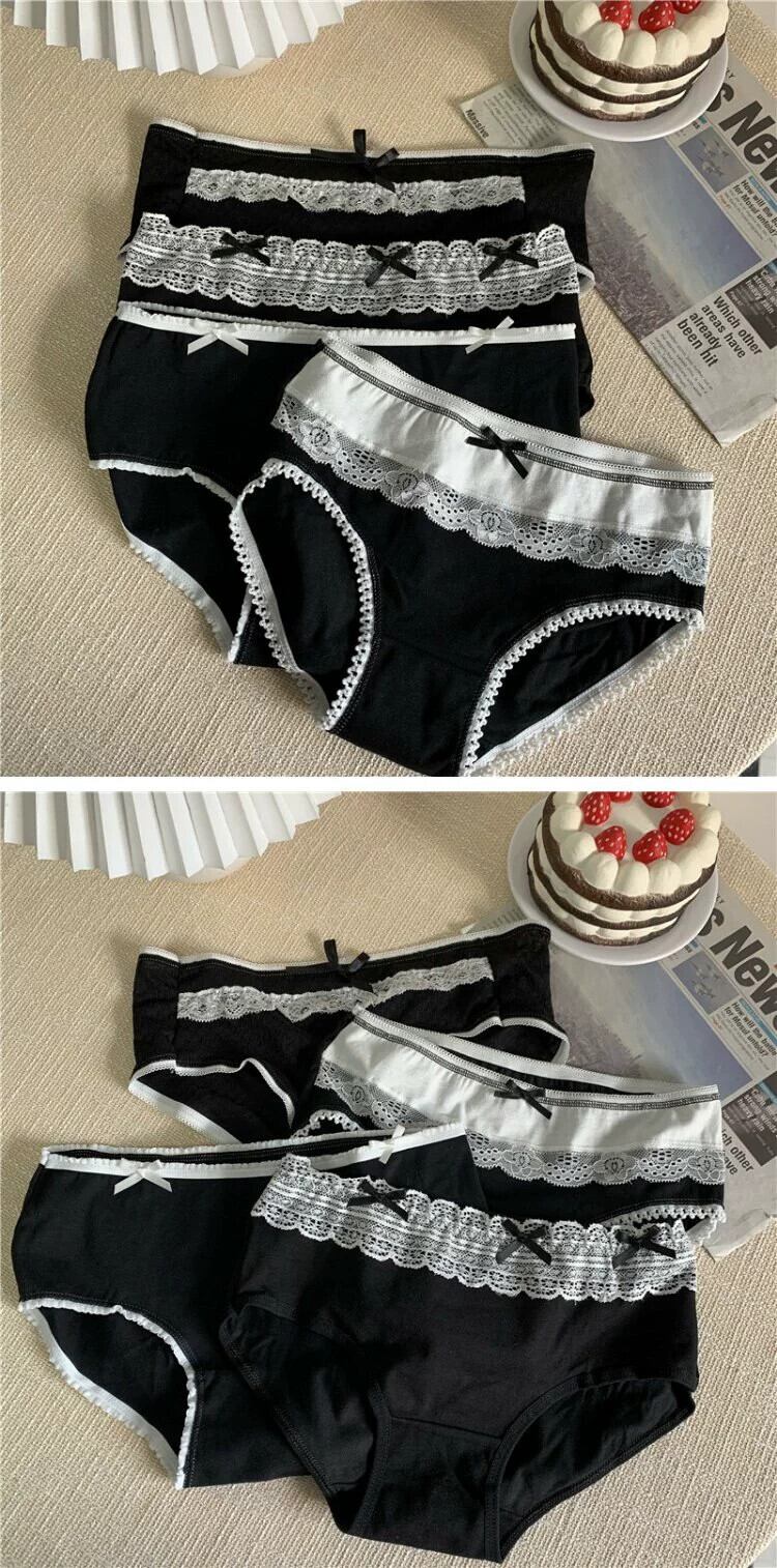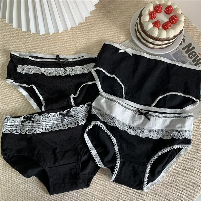 夏スタイルの甘い y 黒のリボンのミッドウエストの純粋な綿痩身学生ブリーフの下着の女性の 4 組 ブラック コットン 大人ガーリー スウィート キュート カジュアル サマー 夏物 ピュア 8571620930618796