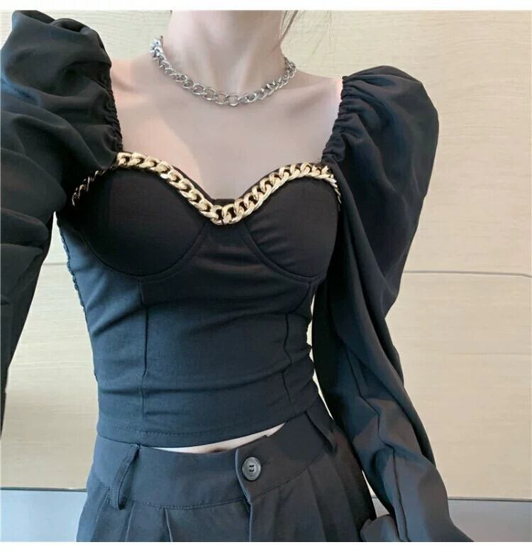 甘いスクエアカラーショートトップレディースデザインニッチ2024春と秋の新しい純粋な欲望のハイエンドシックなシャツ 大人ガーリー スウィート キュート カジュアル スプリング 春物 オータム 秋物 ピュア スクウェア 8571639489167635