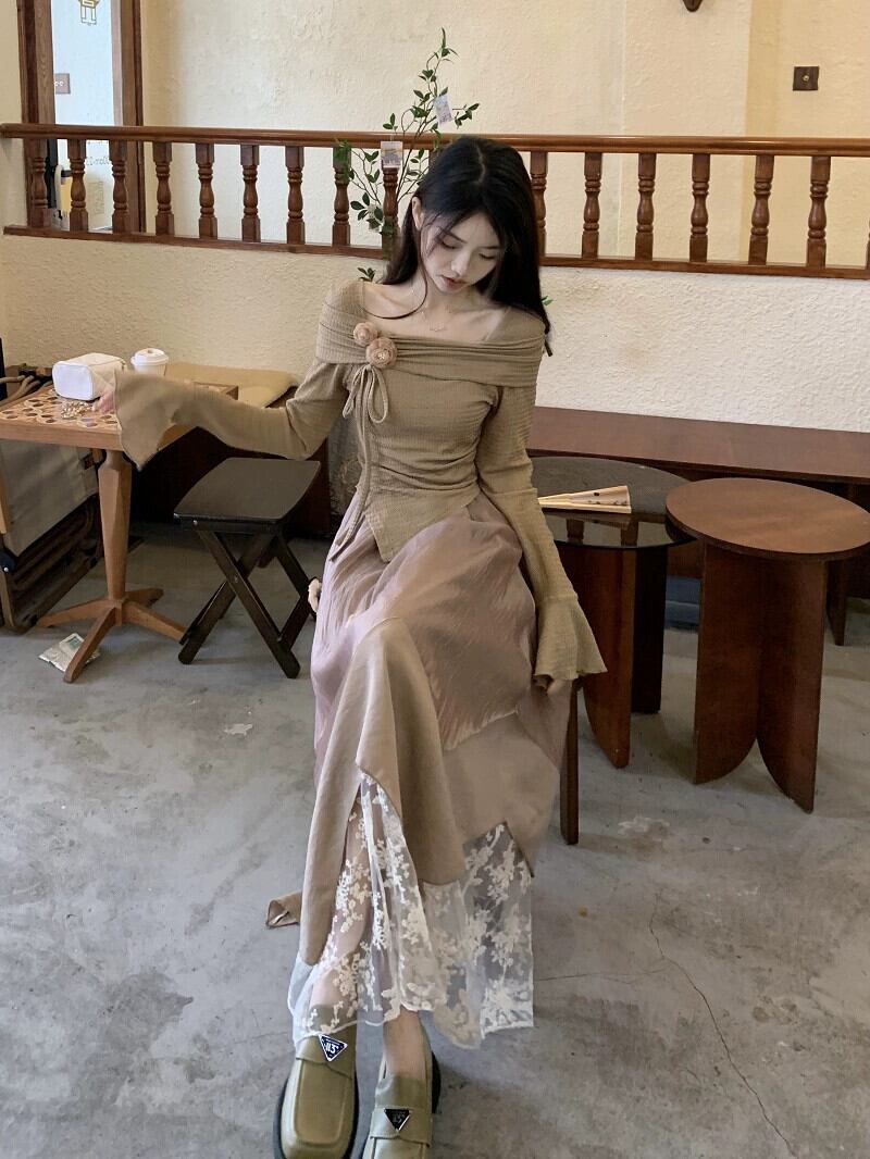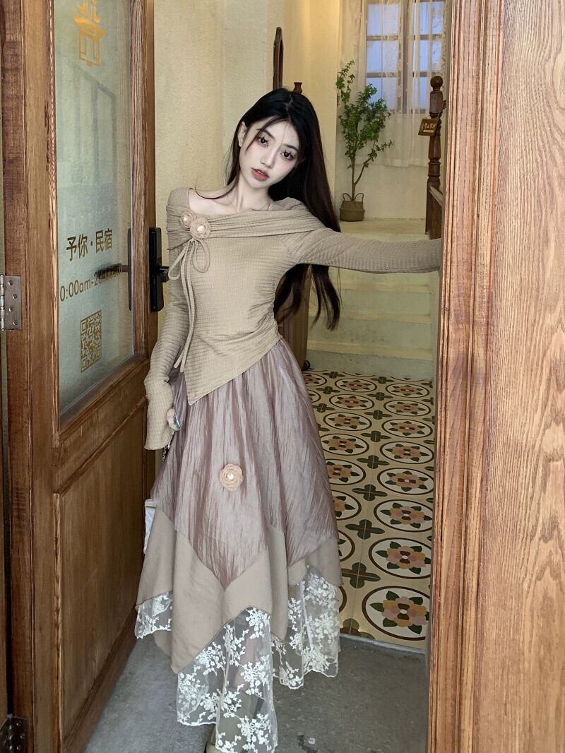 不規則なショートトップスの女性、ニッチなデザイン、2024年秋の新しいスタイル、非常に見栄えの良い、スリムフィットの長袖Tシャツ ロング オータム 秋物 8571636781141794