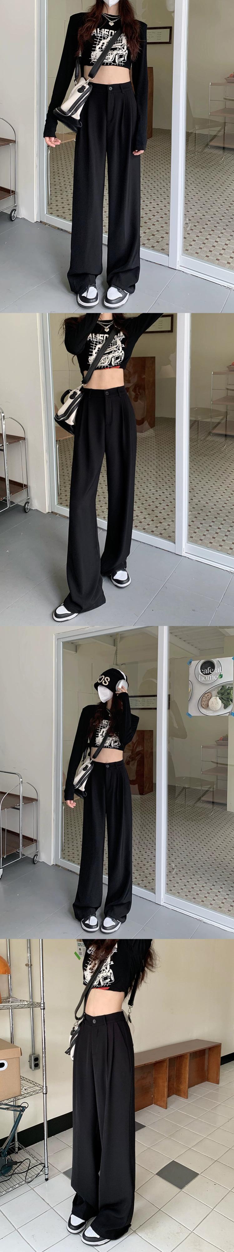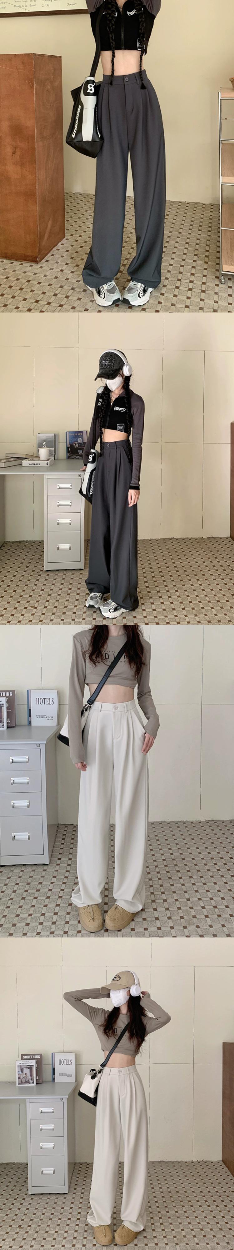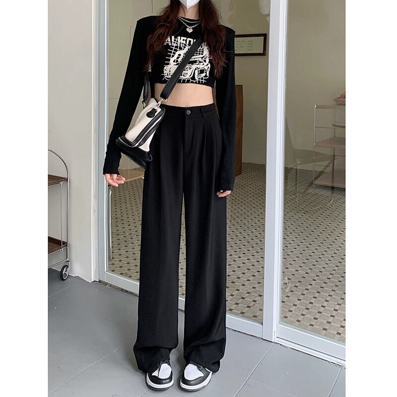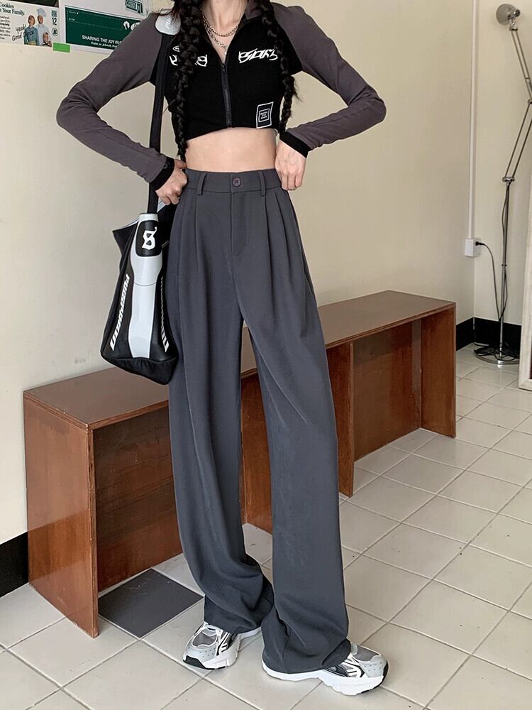 グレースーツパンツ女性ハイウエストフロアレングスワイドレッグパンツ 2024 秋と冬の新しいハイエンドストレートカジュアルパンツ オータム 秋物 ウィンター 冬物 857166134263049