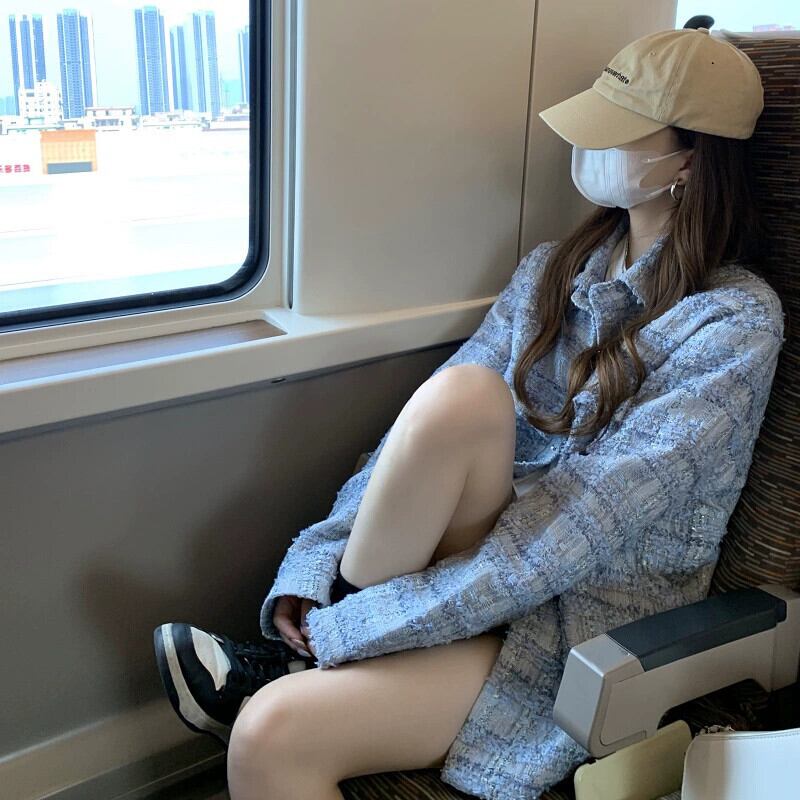 2024年秋の新しい人気のデザインの青い小さな香りのよいジャケットの女性のニッチスタイルのハイエンドストリートトップ ブルー オータム 秋物 8571661648960131