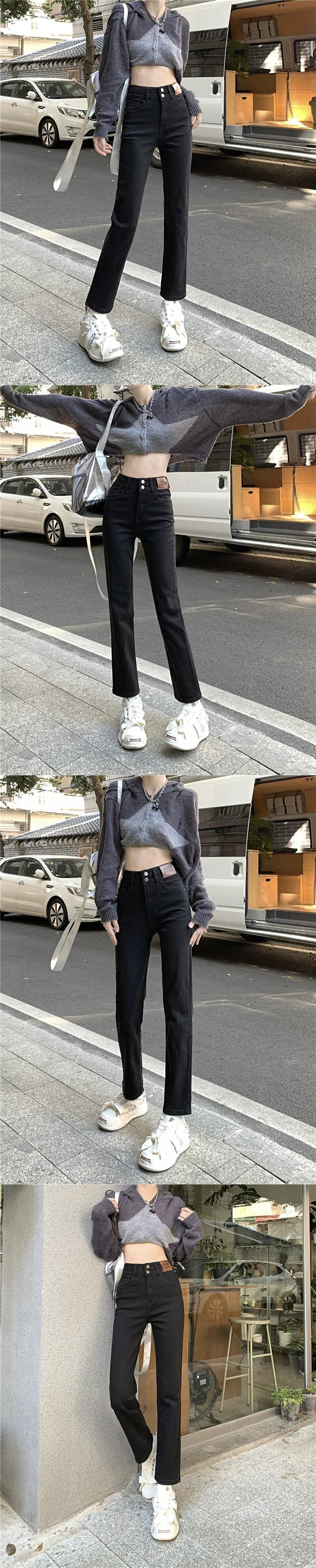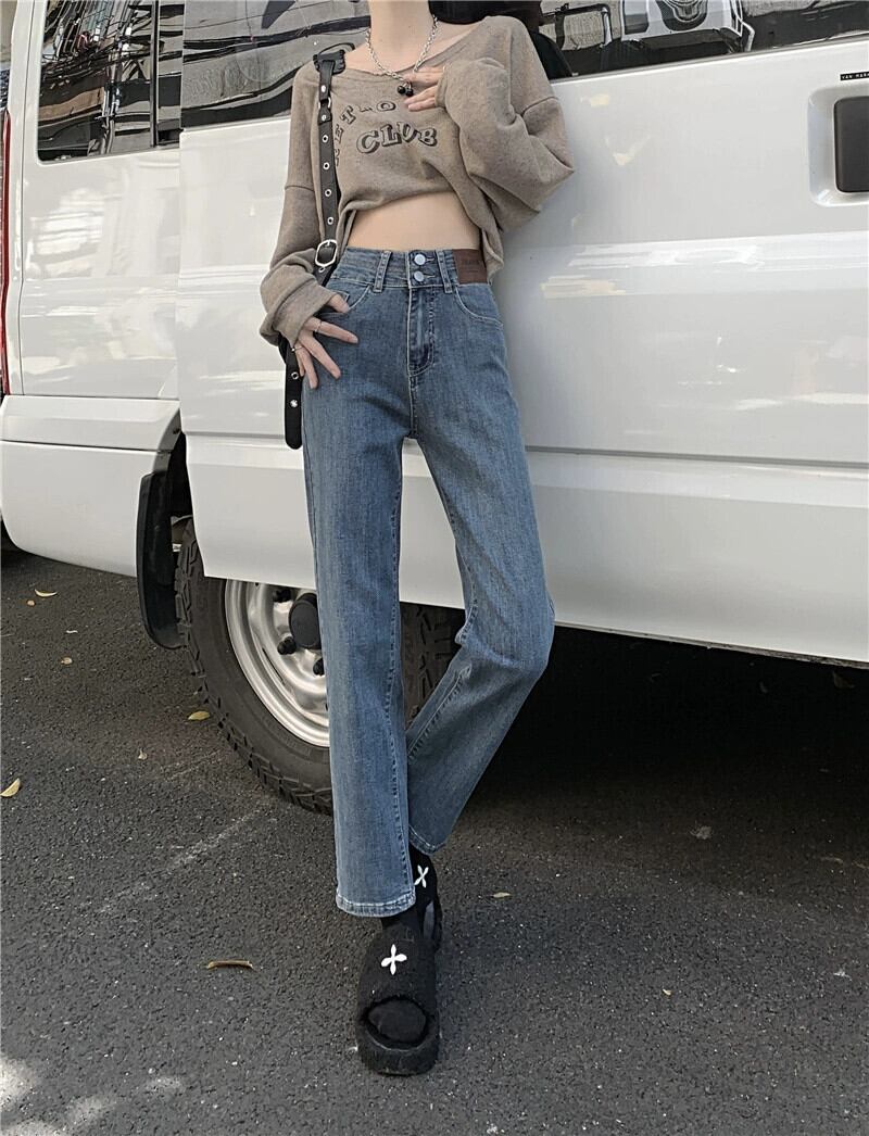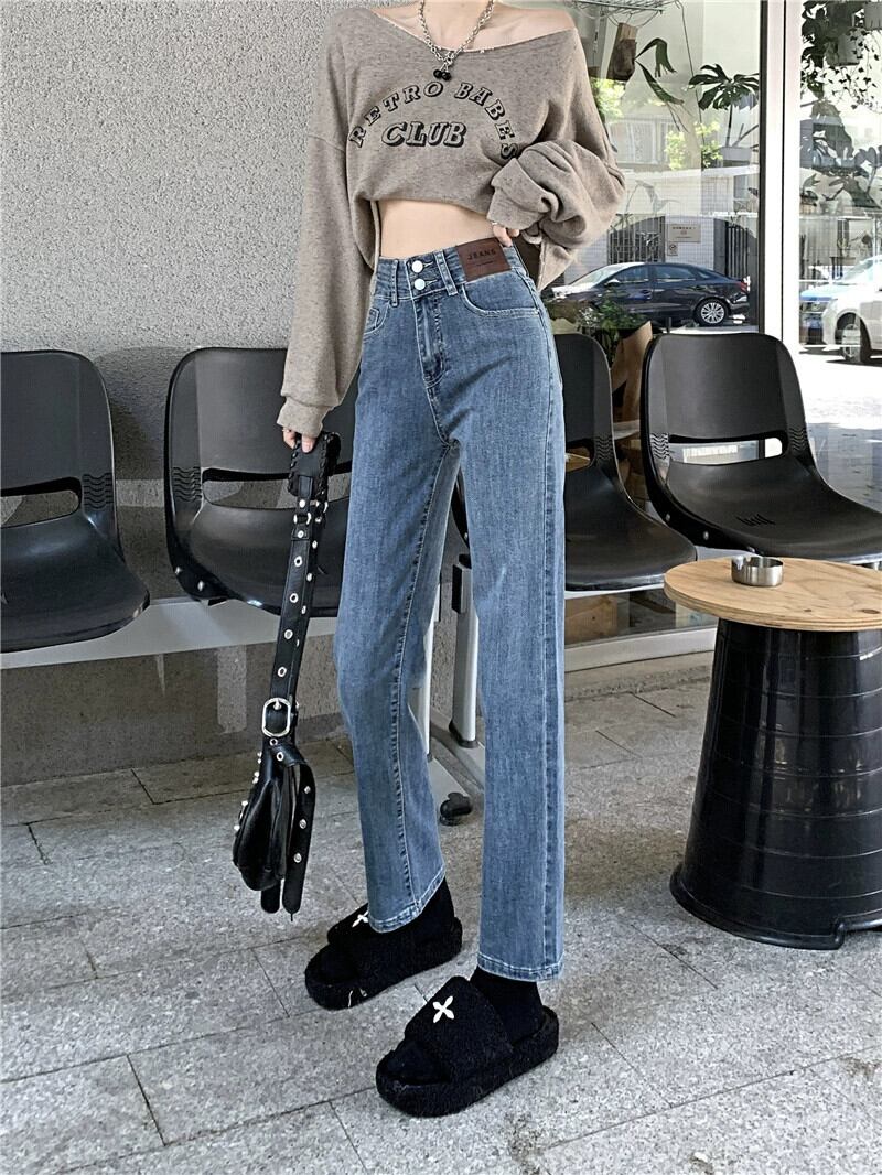 ブラックジーンズレディースハイウエストスリム2024春秋新作洋梨体型ストレートパイプパンツ小柄な人 スプリング 春物 オータム 秋物 8571622970631137