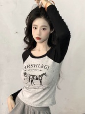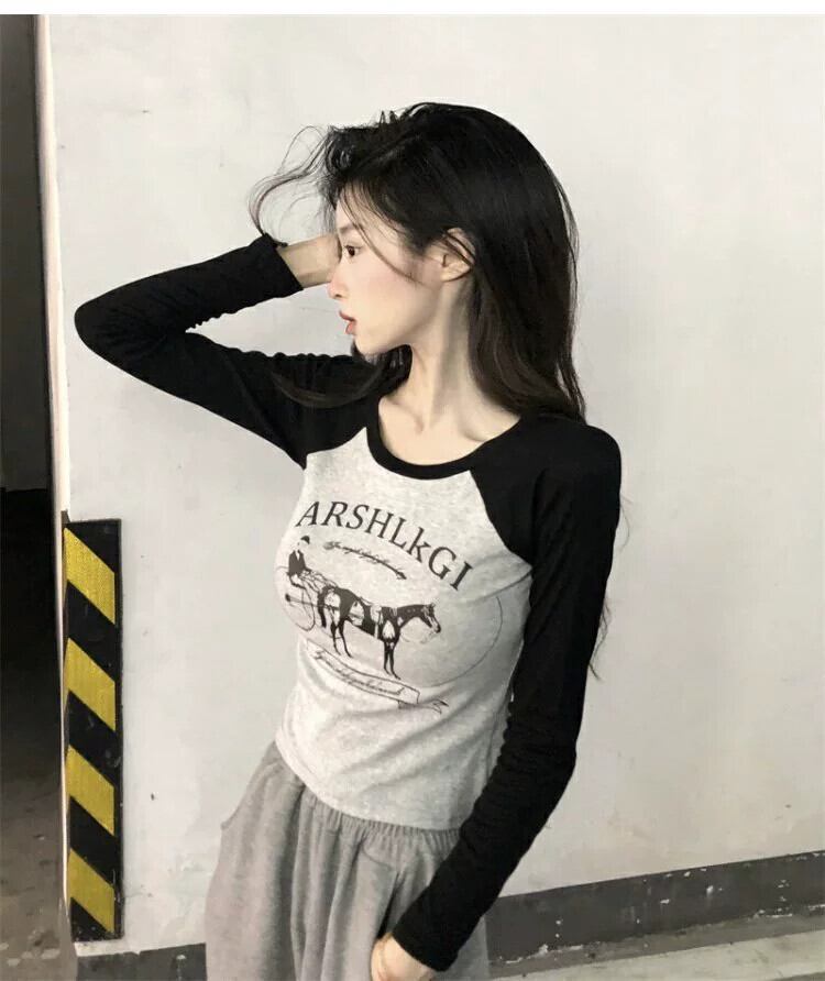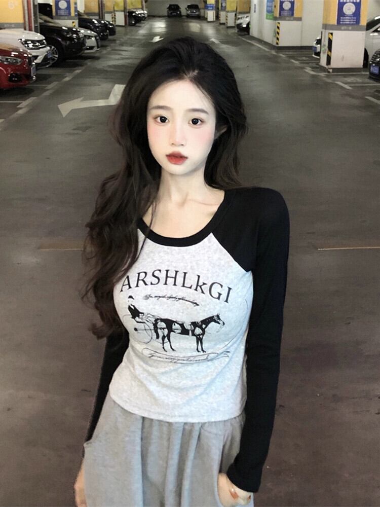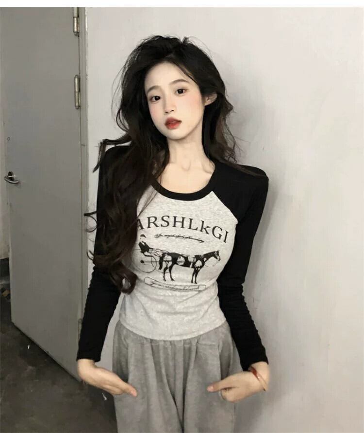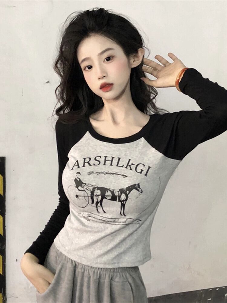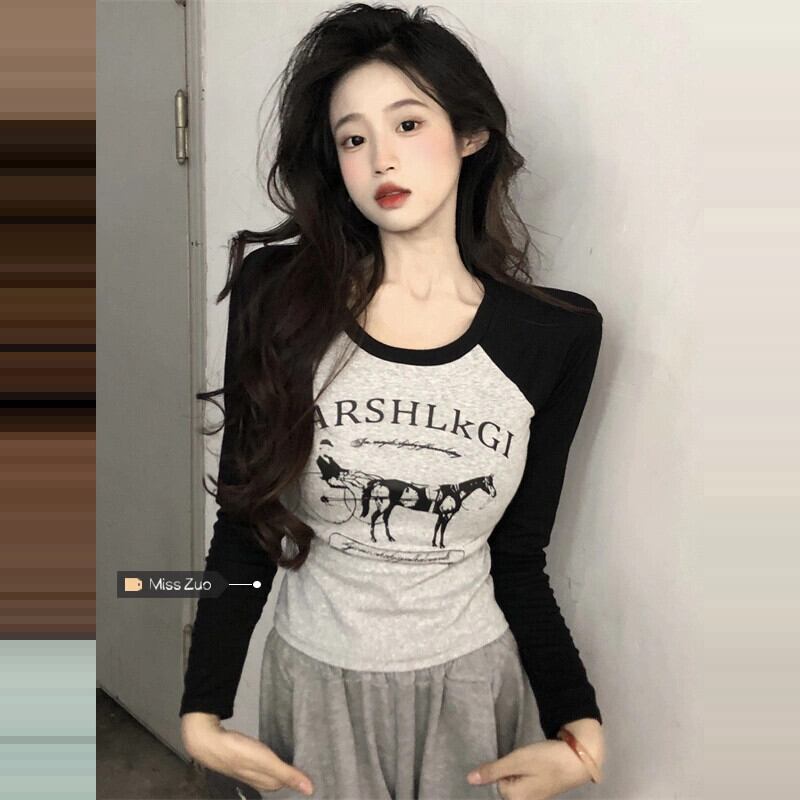甘いショートトップレディース秋デザインニッチアメリカンレトロシックインナー重ね着長袖Tシャツ ロング 大人ガーリー スウィート キュート カジュアル オータム 秋物 8571643748110579