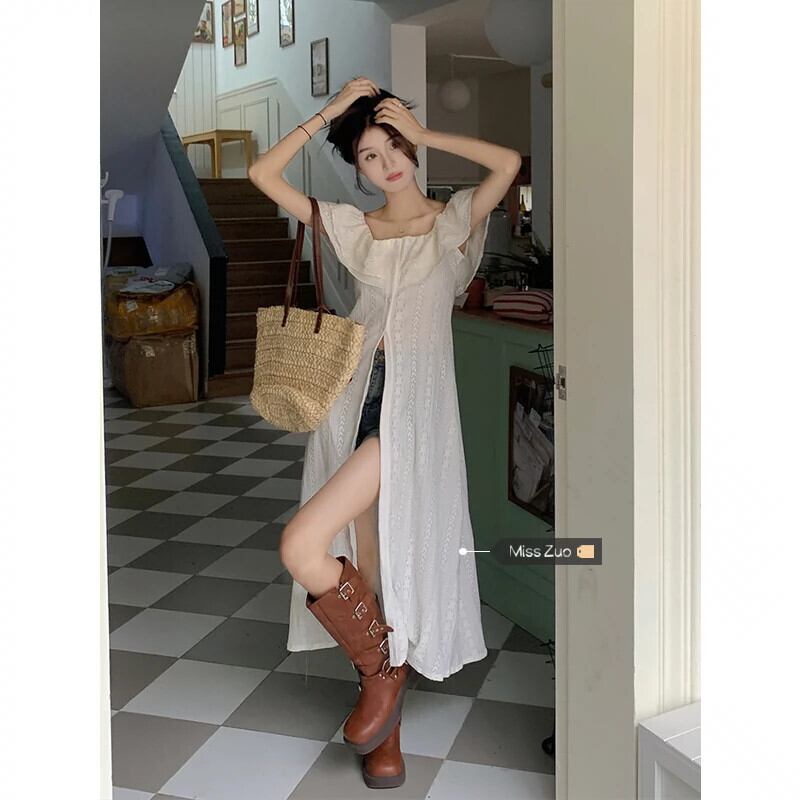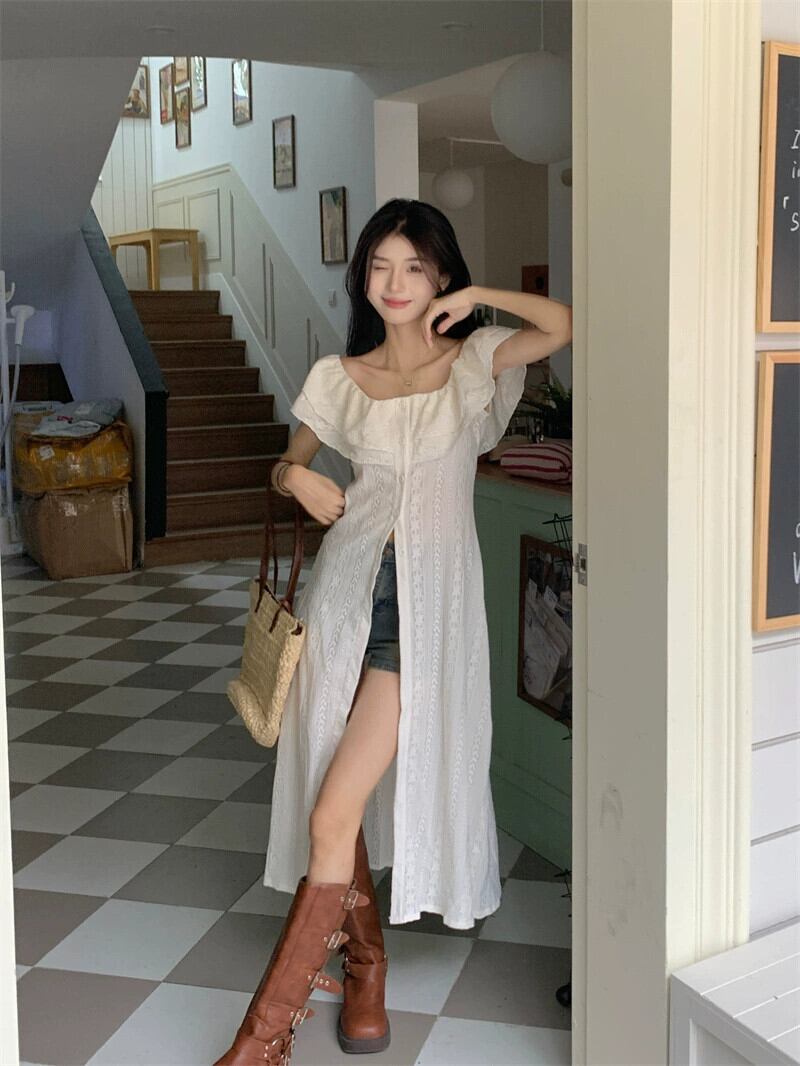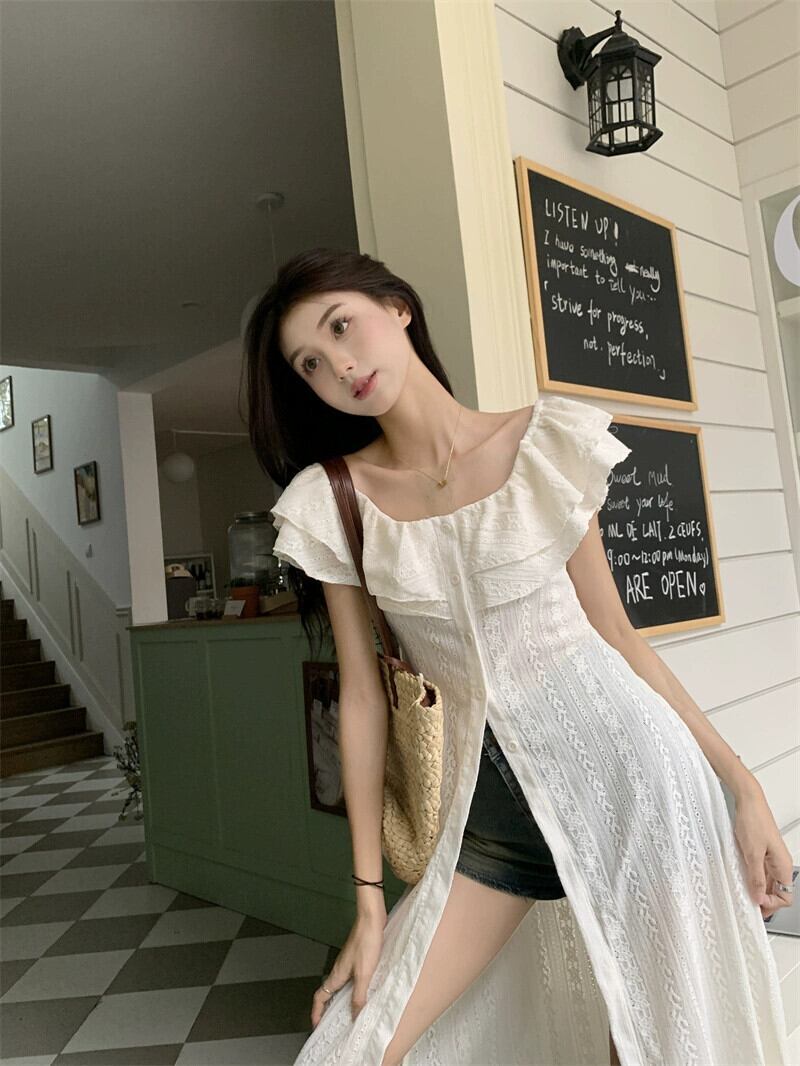フリルレースドレス女性夏 2024 新しいニッチデザインインターネットセレブスタイル優しいスタイルロングスカート サマー 夏物 8571645203706537
