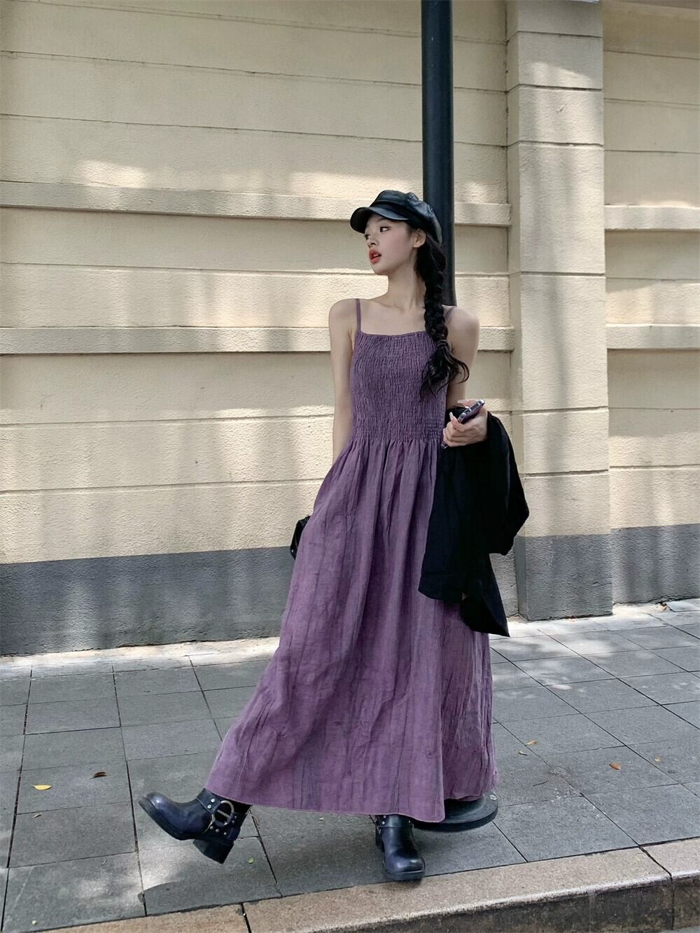 色:黒のブレザー,パープルホルタードレス,ブロガー募集オーダー(服装ではありません)