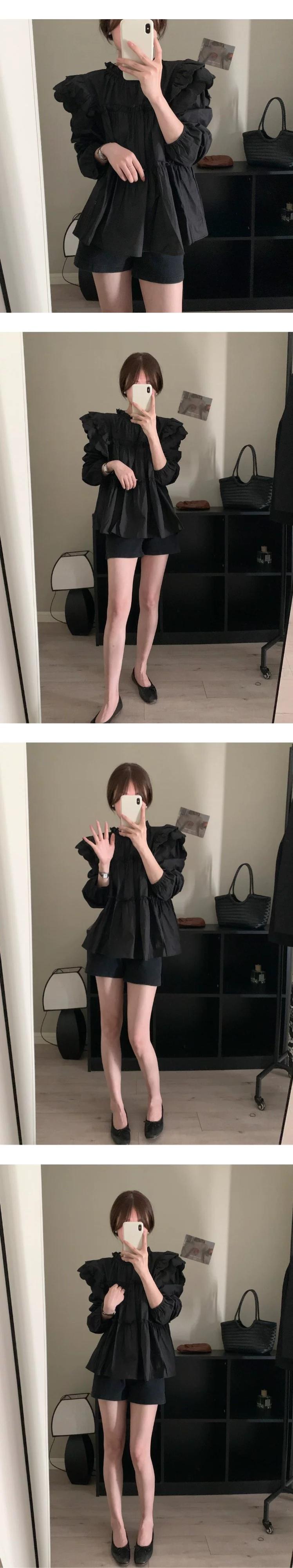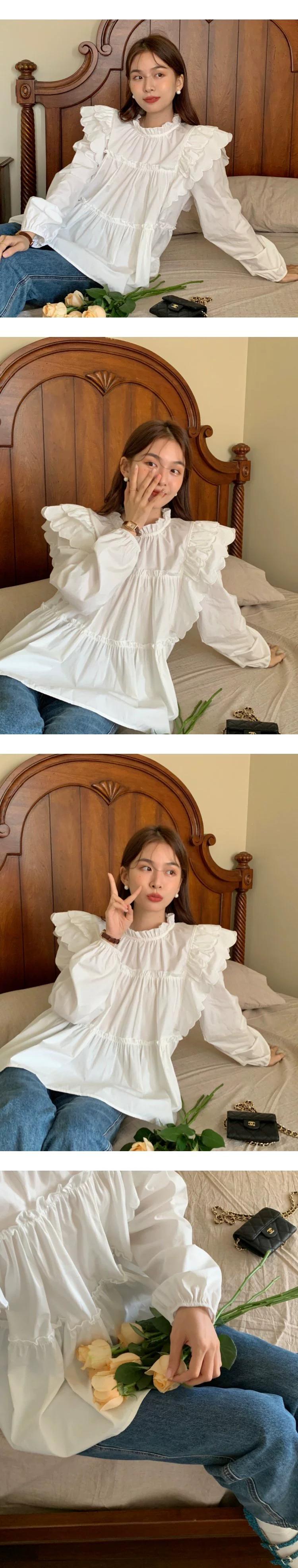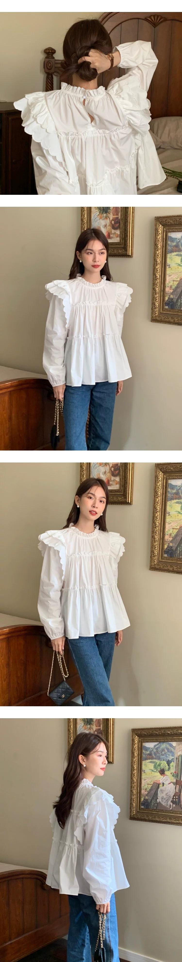ベビードールフリルトップ女性初秋デザイン白ルーズシャツフランスの甘い気質長袖シャツ ロング ホワイト 大人ガーリー スウィート キュート カジュアル オータム 秋物 8571619527101657